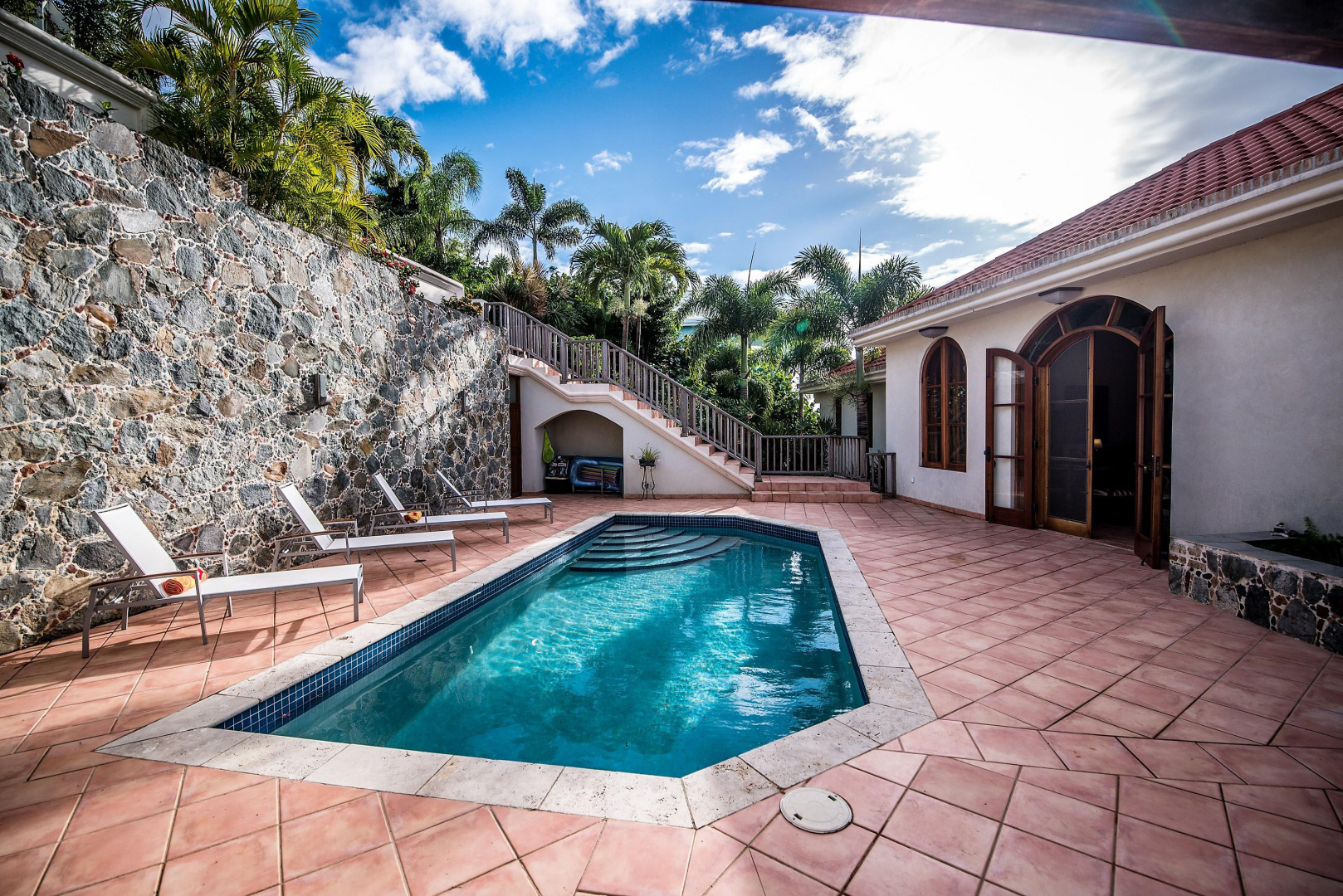 More About 11-b-1 Glucksberg, St. John, USVI, 00830Solid masonry two story pool villa with panoramic ocean and island sunset views. High quality construction with custom mahogany doors, windows and cabinetry throughout. Four very private master suites on two levels accessed by interior staircase, face the views. Spacious covered porches on both levels, hot tub and sun deck face west. Covered, breezy dining pergola, pool and pool patio on upper level offer a respite from the afternoon sun. Paved roadways and underground utilities, added building sites on either side of present homesite for privacy, expansion or future development of additional residences are included in the sale. This is a very unique opportunity and represents a significant value compared with other homes at this price point.