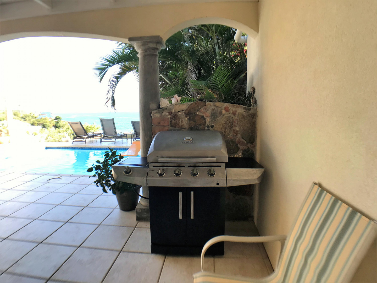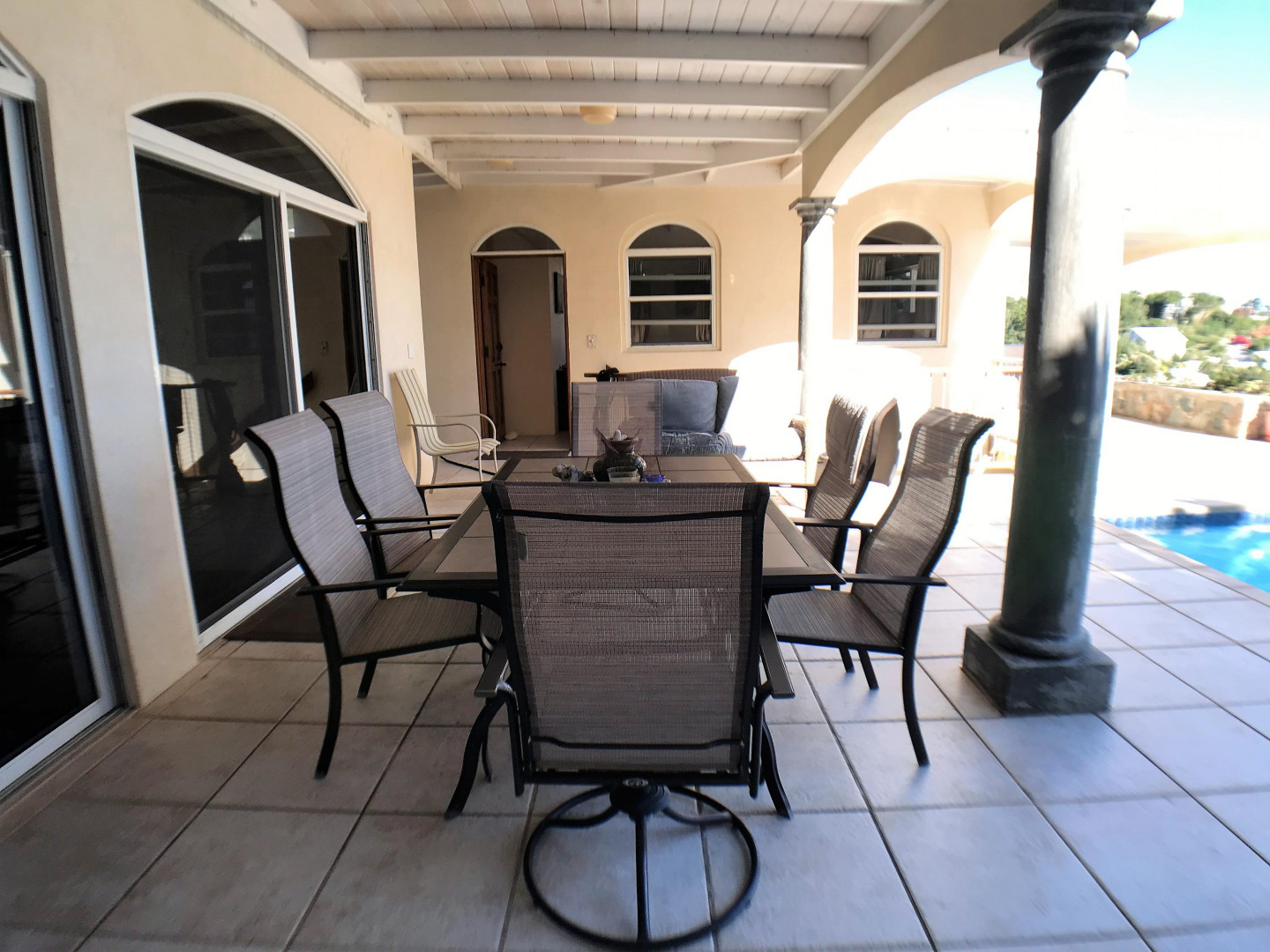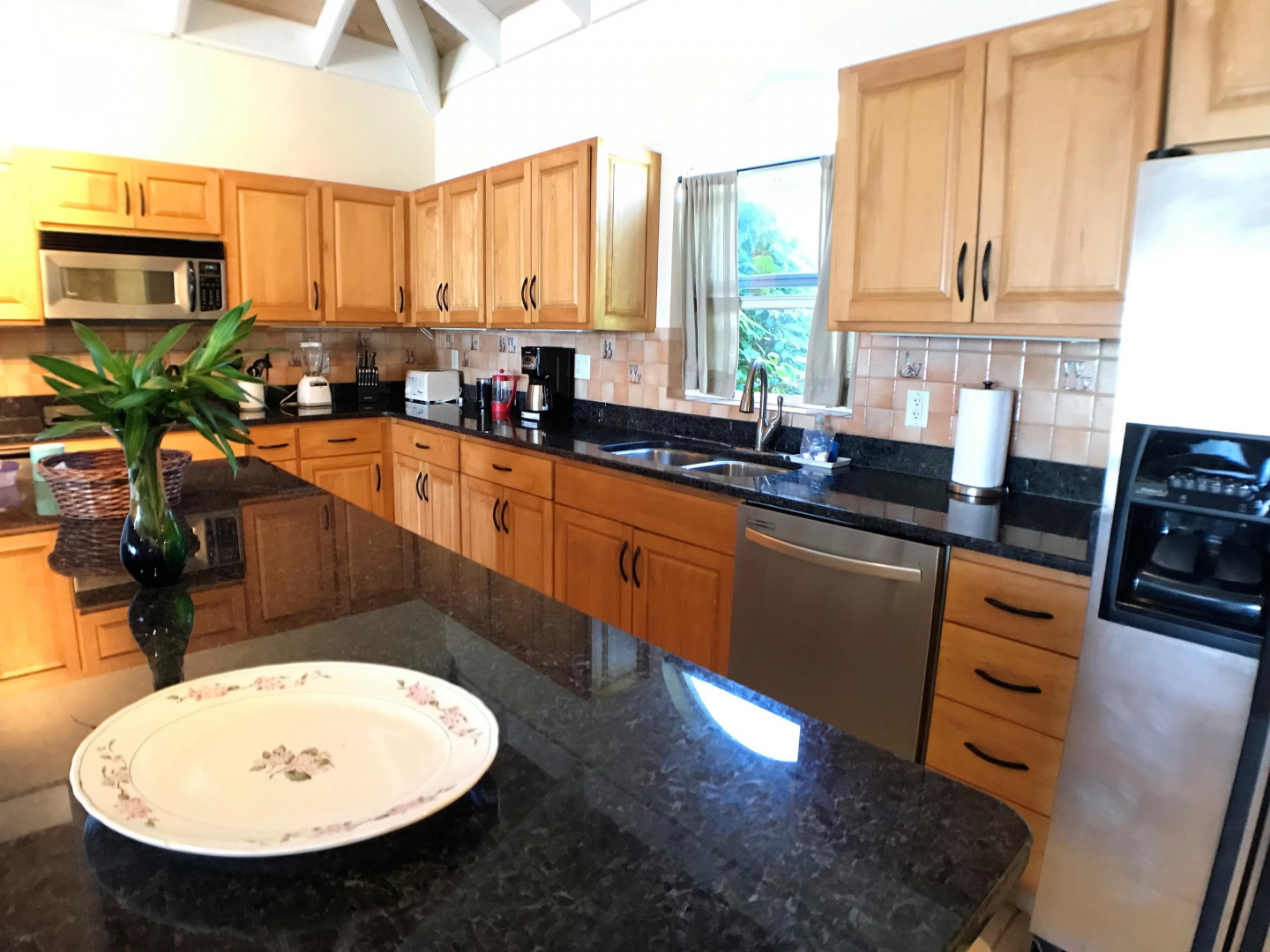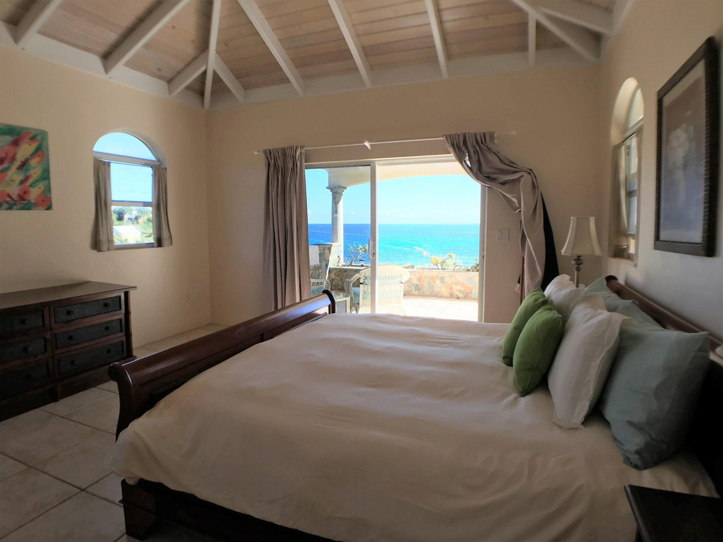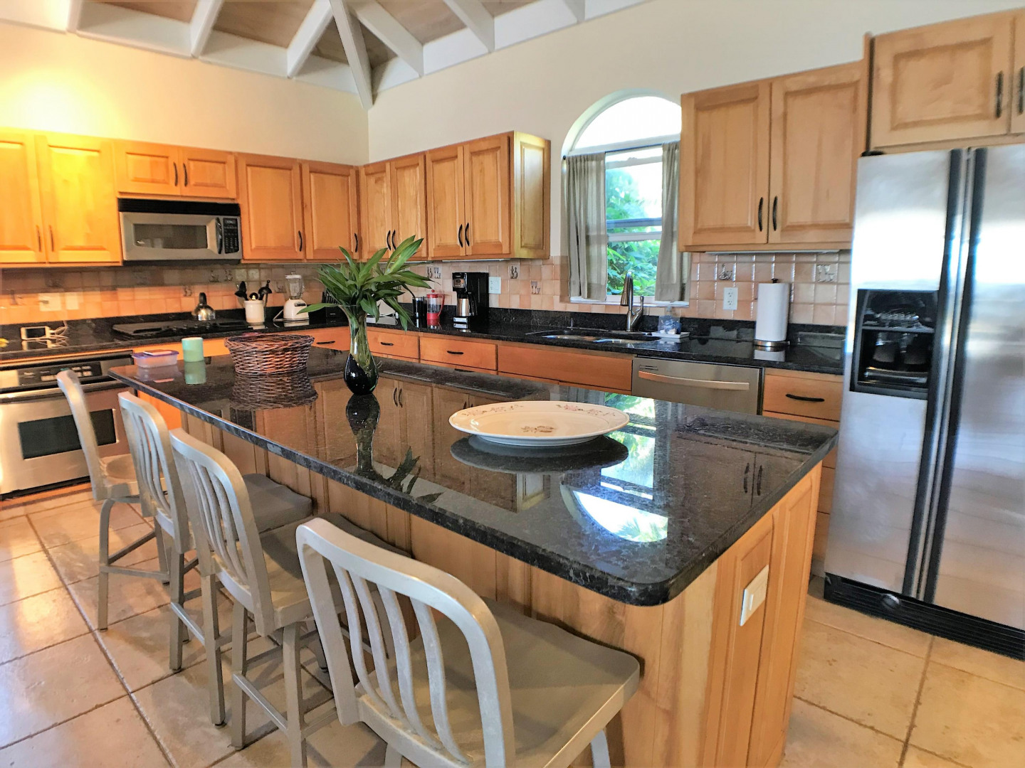 Sea Waves is an all masonry home which features a glazed barrel tile roof and stunning water views. The property boasts mature landscaping and plenty of space to provide the utmost in privacy for guests and family. Inside find soaring exposed beam ceiling reaching at least nine feet tall and ceramic tiled floors. The open plan chef's kitchen has stainless steel appliances, granite counter tops, maple cabinetry and a lovely breakfast bar for casual dining. The kitchen leads directly into the spacious great room which features both a cozy living room area and a large dining space. The great room opens right to the pool and large deck, bringing light and air into the space. The 4 bedrooms are located on either side of the great room, each with a private covered porch to enjoy the ocean views. -