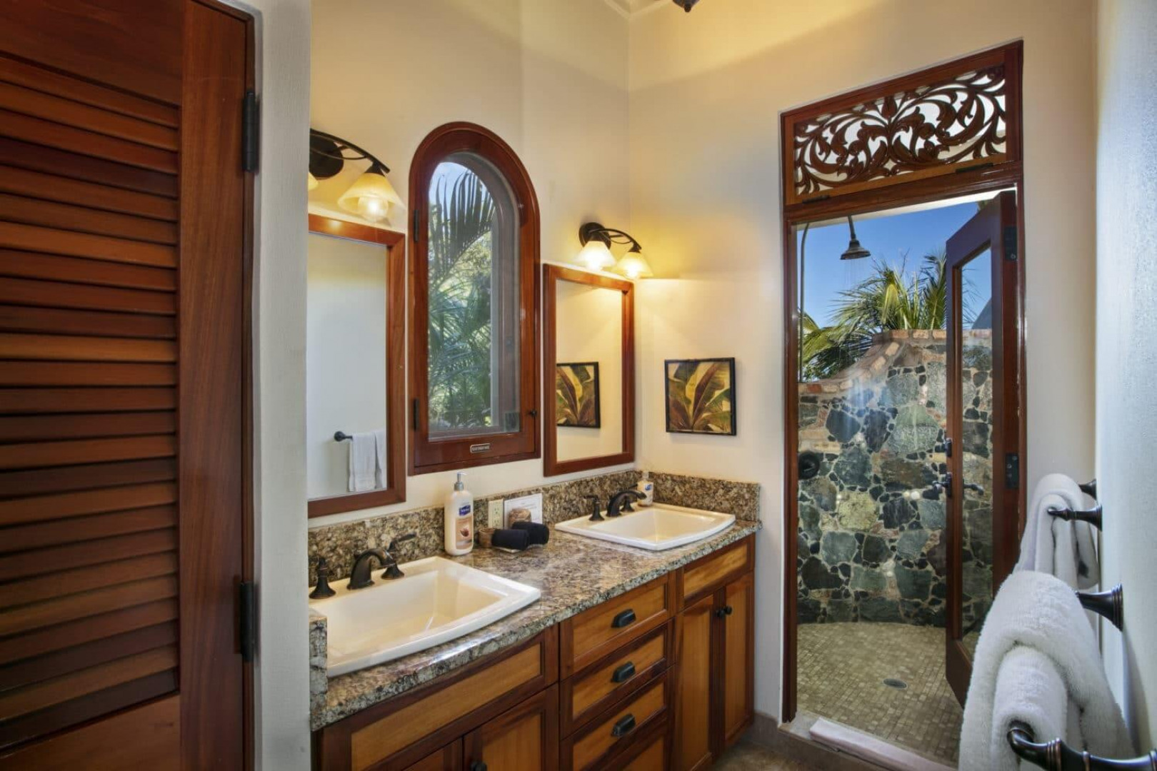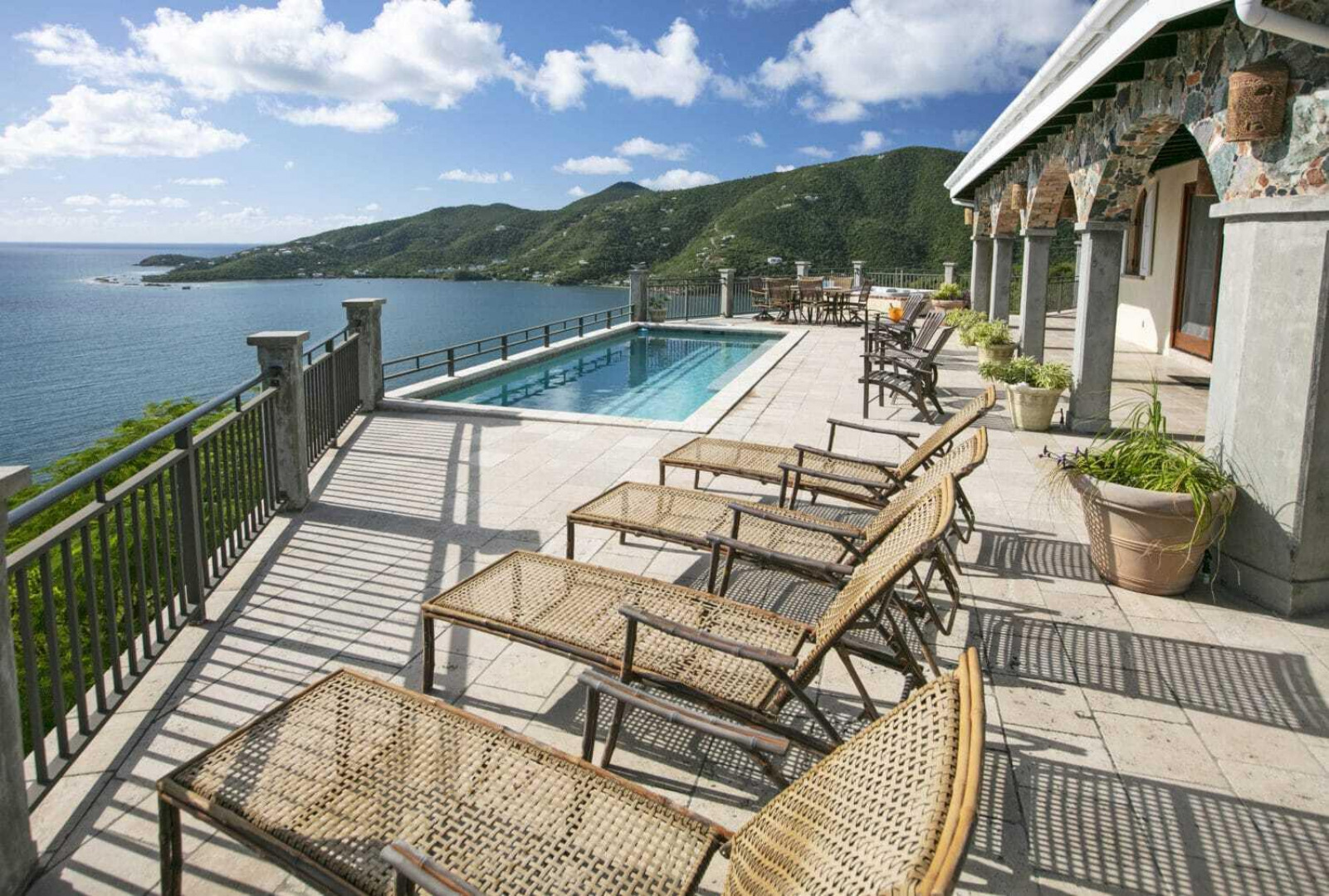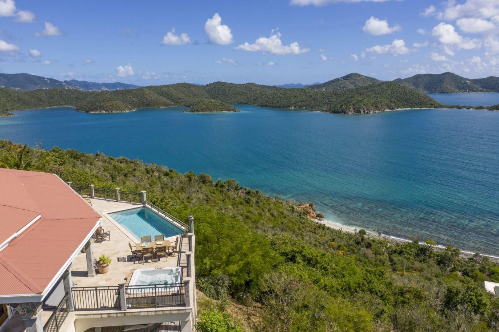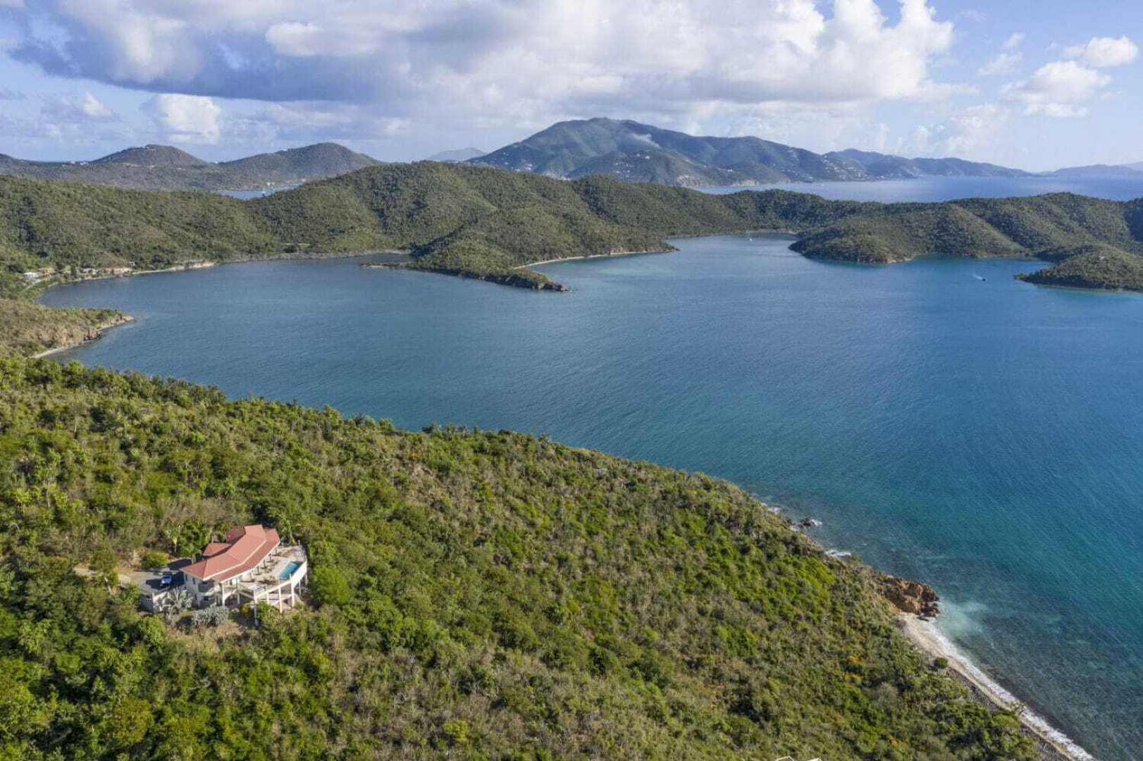 Estate Fortsberg is situated in a very special and private location on a promontory of land within the National Park boundaries, overlooking Hurricane Hole and Coral Bay, at an elevation of 260 feet on historic Fortsberg Mountain. Constructed of traditional masonry and island stone, with tile flooring throughout and mahogany cabinetry and trim; the home ageless and built to withstand the elements over time. Four very private master bedrooms, two on each level, have baths en-suite. The spacious open great room serves as the main entertainment area and opens onto the expansive pool and spa deck. This elegantly furnished home is well suited as a second home, or as currently operated; a highly successful rental villa with strong repeat client base.