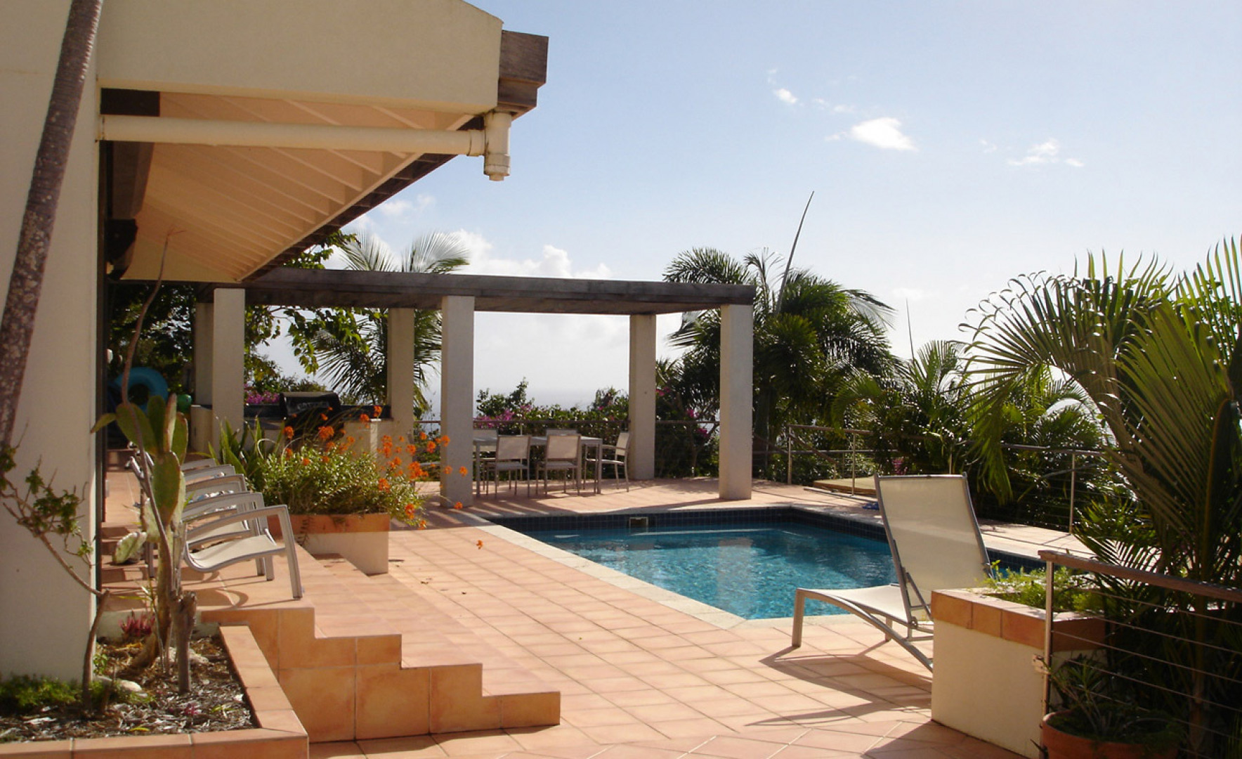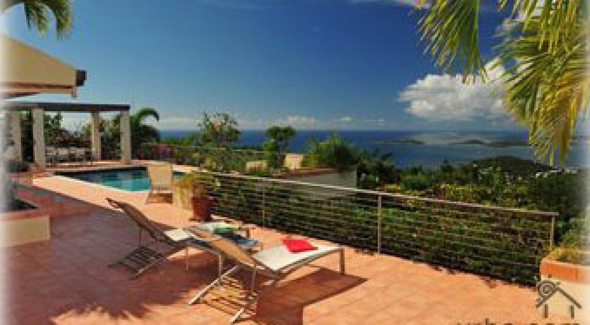'Skyway'-Just reduced - Fantastic views to St Thomas and beyond to Vieques as well as the Caribbean as far as the eye can see. Almost flat lot with lush tropical landscaping, easy paved access, 13' by 24' pool with salt chlorine generator system and spa. Solar heater for water and pool. Fully furnished with interesting Indonesian pieces. Owner has recently completed a complete remodeling and is installing a 10kw solar system. Seller will consider some owner financing. -