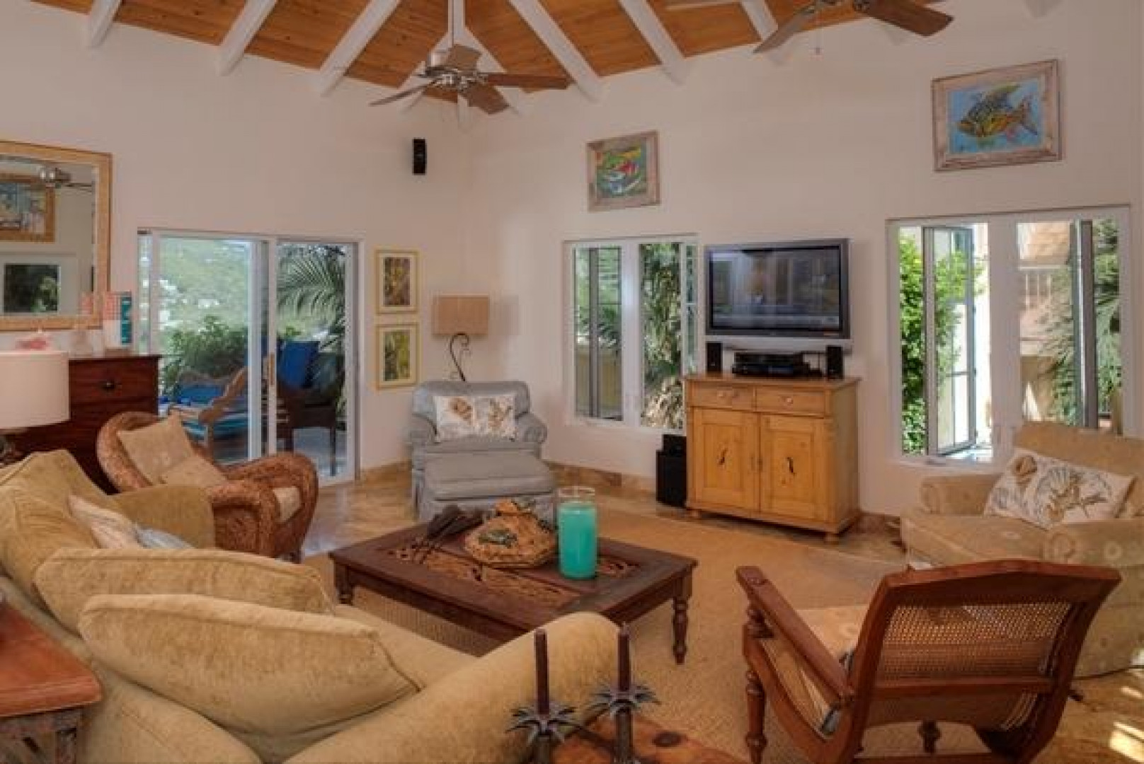 Villa Indigo is a four bedroom gated estate home located just outside town near the Westin Resort in Great Cruz Bay with easy access to the nearby dinghy landing facility and floating dock. As you enter the fully air conditioned great room building with its vaulted ceilings you are struck by the sweeping views from the enclosed living, dining areas and kitchen. Sliding patio doors open onto an L shaped covered gallery for lounging or dining al fresco. An inviting heated pool with water feature and surrounding open sun deck is situated at southwest side of the covered gallery, along with a convenient fifth bathroom and laundry facility. Below the gallery, there are two private air conditioned bedroom suites that open onto garden patios. A separate building provides two air conditioned...equal master bedroom suites with large walk-in closets. Climb the exterior stairway to the top of the master suite building and you discover a rooftop patio that offers stunning 270 degree views ranging from St Thomas and the north shore cays to Great Cruz Bay Harbor, Chocolate Hole Bay and down the southeast shoreline of St John to Ram's Head. Bonus features include high efficiency A/C units and a solar system with reverse metering. The current owners have had no power bills in 18 months. Boat enthusiasts will enjoy the ability to have a boat moored in Great Cruz Bay with a floating dock, dinghy rack and parking. -
