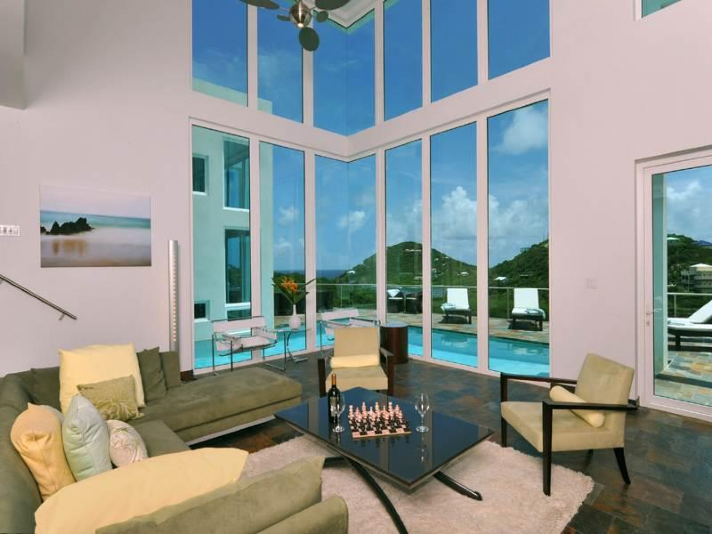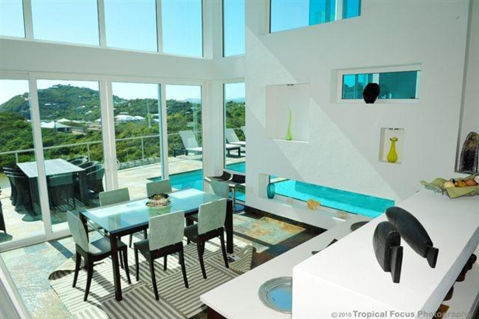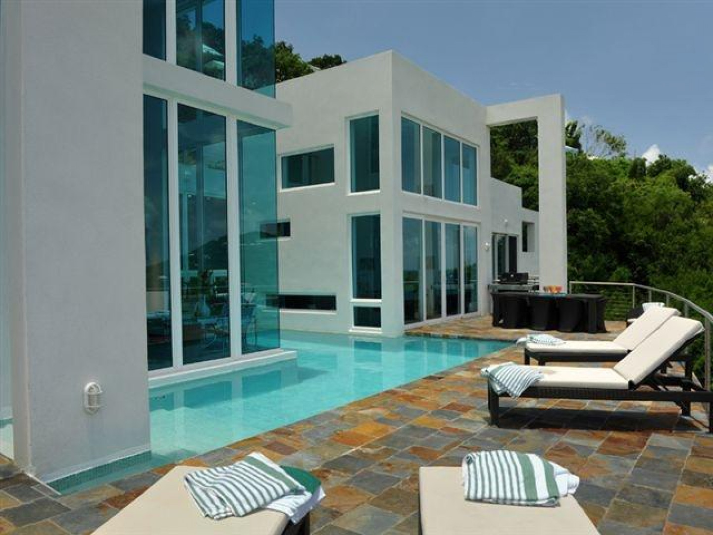 CASA MARE is an exciting contemporary home in Chocolate Hole. The sweeping expanse of glass frames the views to Pillsbury Sound and St Thomas while the modern decor contrasts beautifully with the clean white interior. Fully air conditioned with plenty of sunny outdoor decks, the pool rests against the glass and invites you in with the indoor/outdoor split level view. Truly a ''spa-like'' setting. -