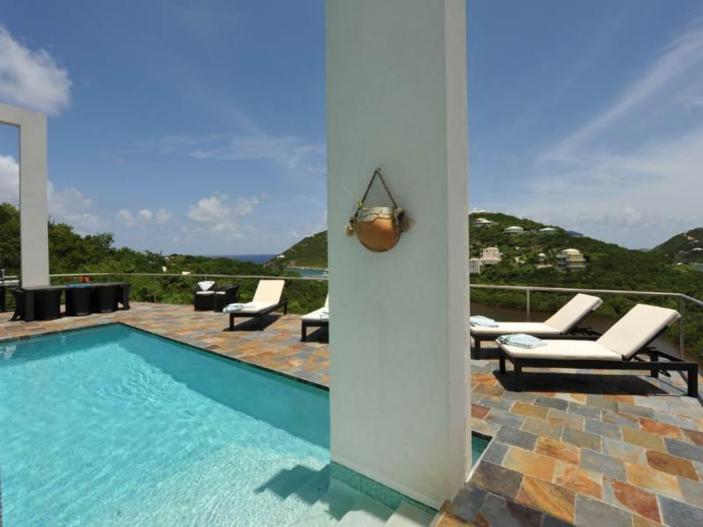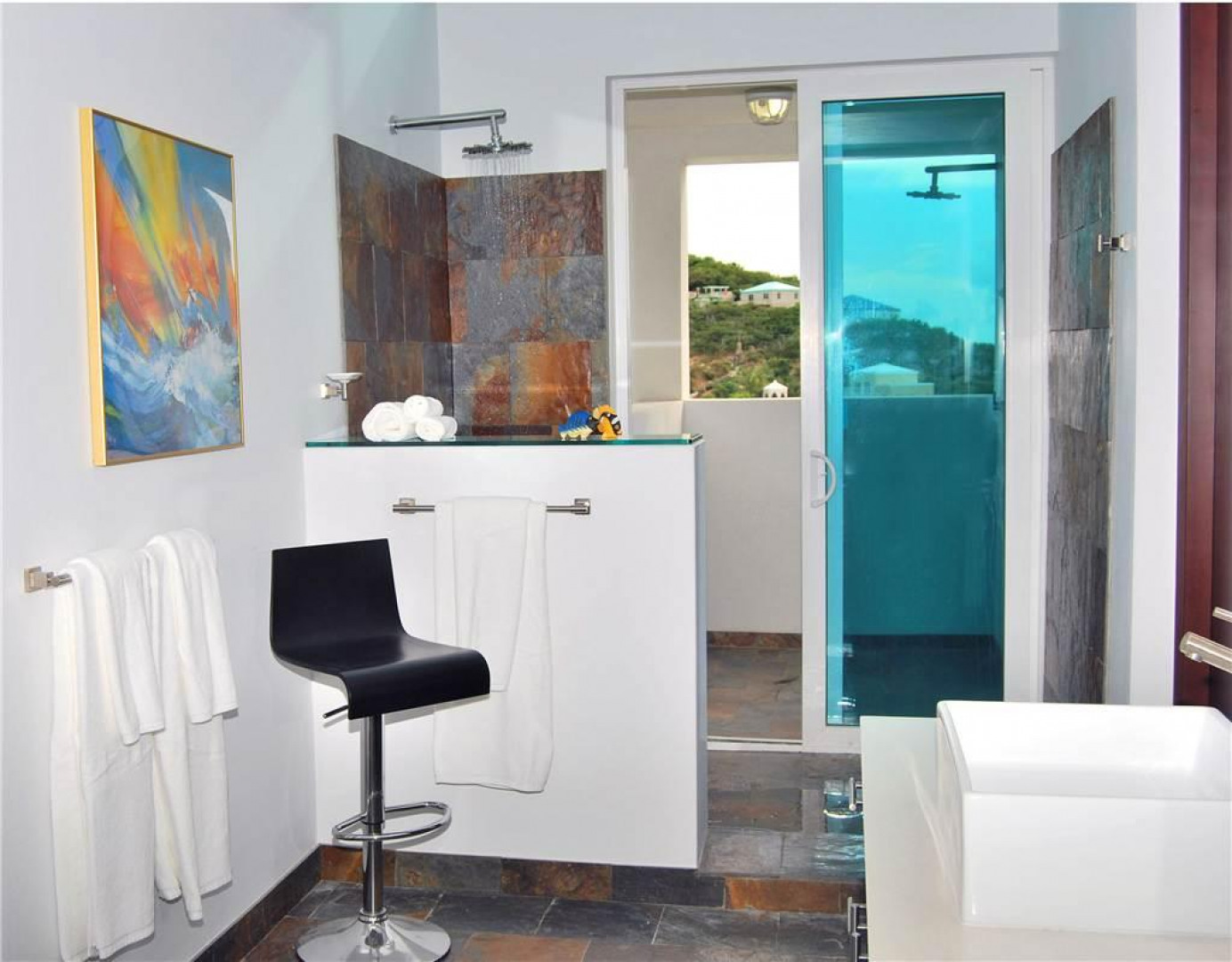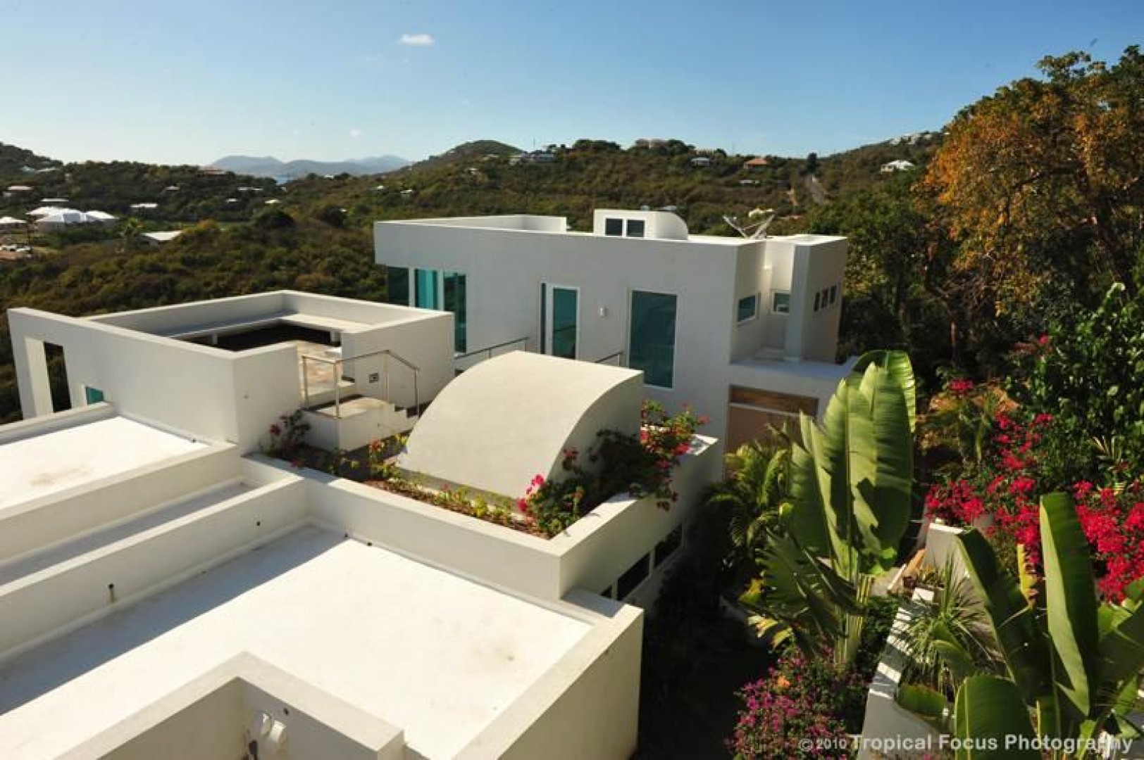CASA MARE is an exciting contemporary home in Chocolate Hole. The sweeping expanse of glass frames the views to Pillsbury Sound and St Thomas while the modern decor contrasts beautifully with the clean white interior. Fully air conditioned with plenty of sunny outdoor decks, the pool rests against the glass and invites you in with the indoor/outdoor split level view. Truly a ''spa-like'' setting. -