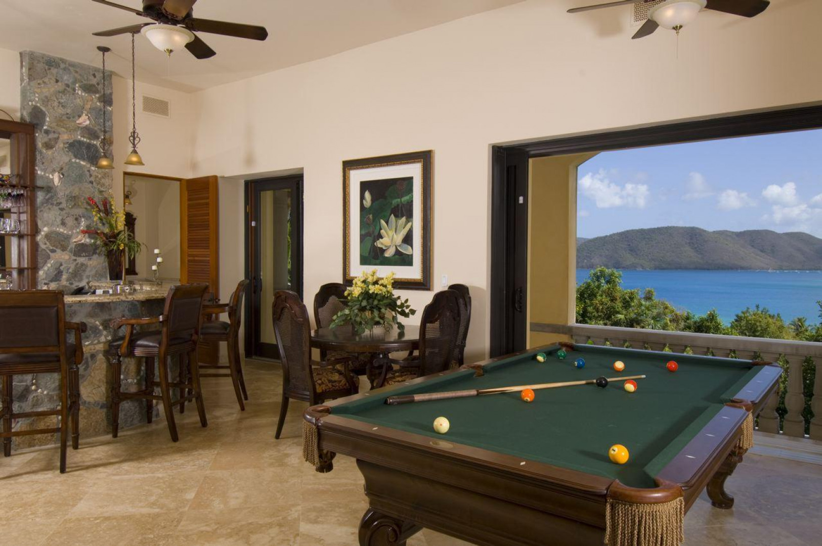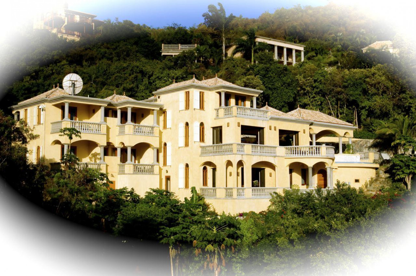Each of the five bedroom bath en suites has private balconies. The main living area is fabulous, entry via coral stone courtyard to covered balcony overlooking infinity edge pool to view surrounded by private courtyards replete with wet bar, grill, powder room, hot tub, palm trees hammocks and leeward outdoor dining.Please see document for more details. -