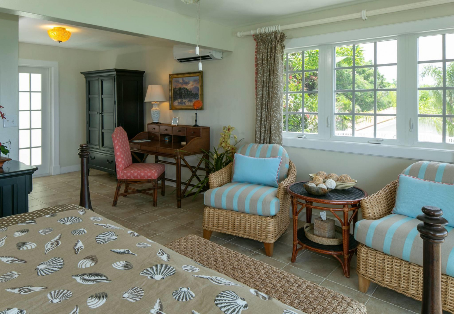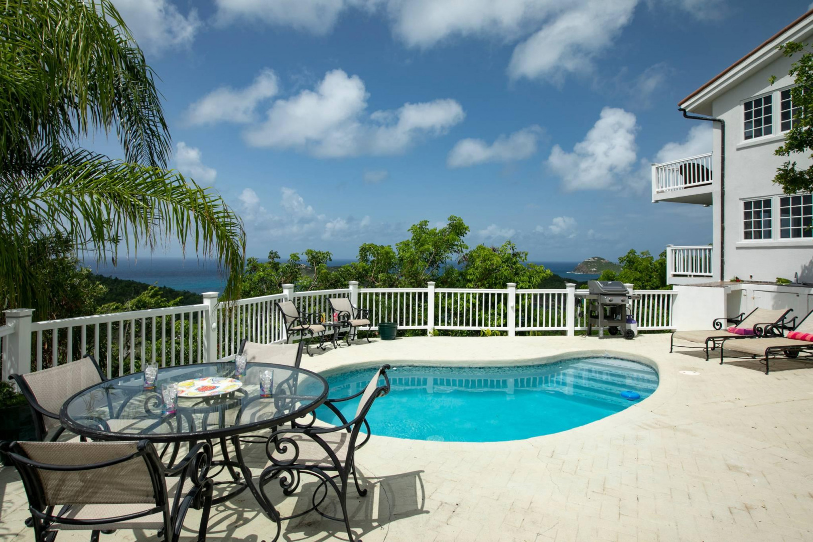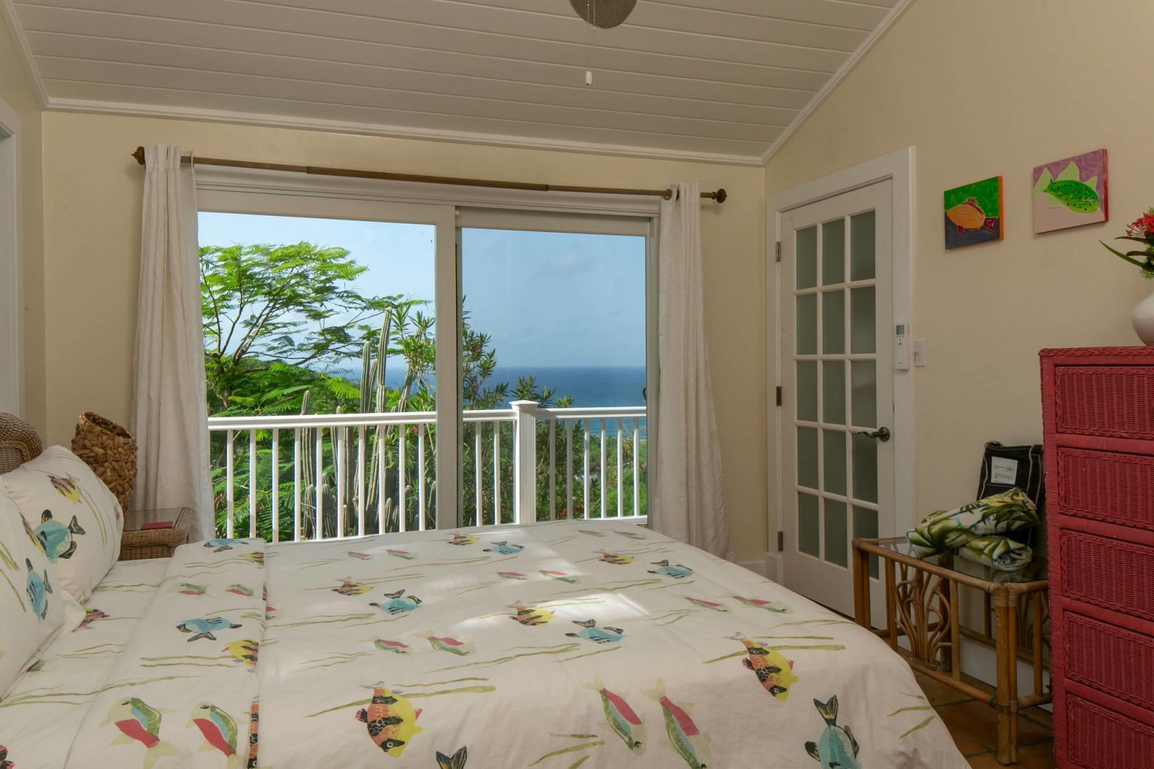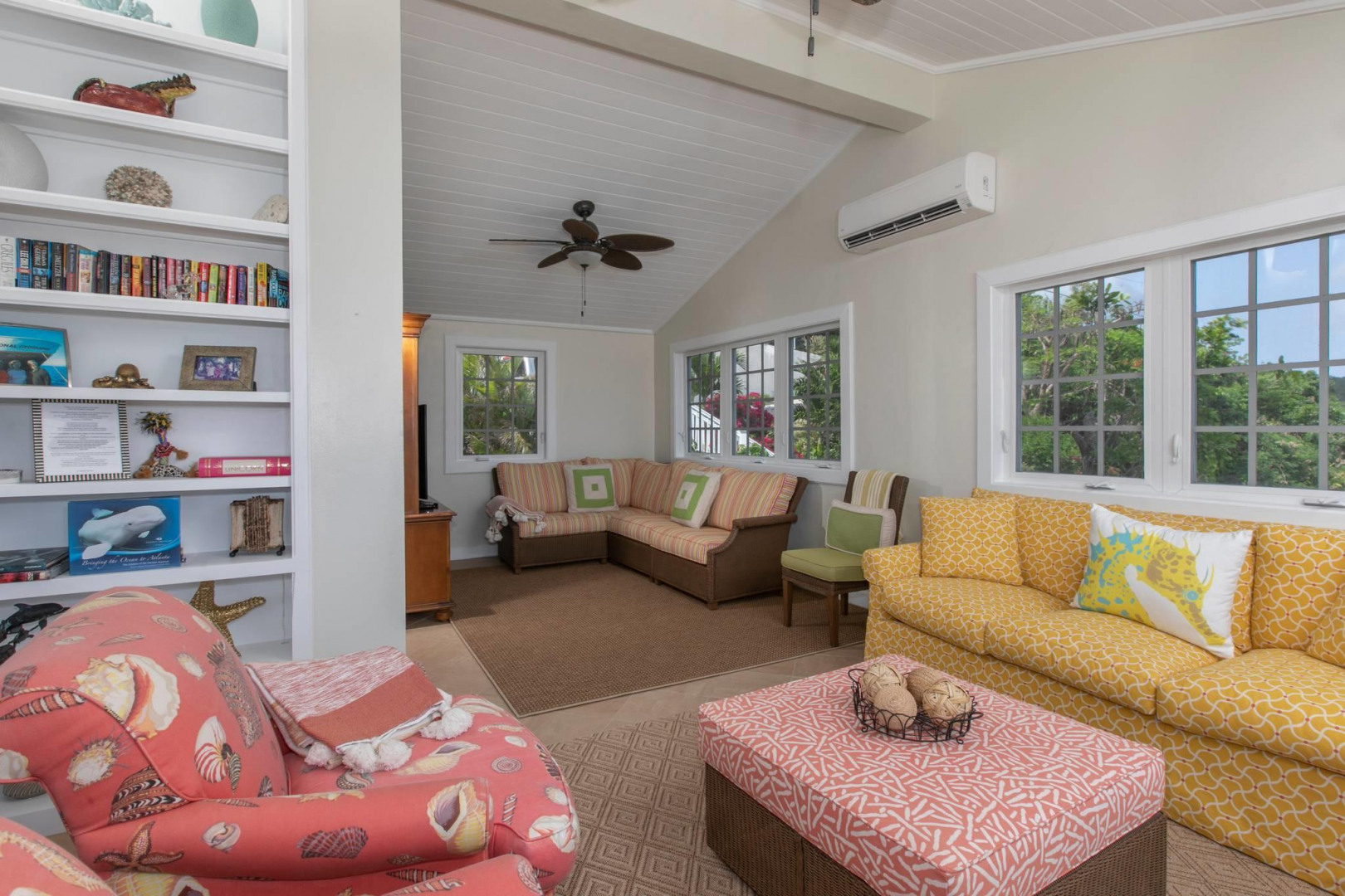 More About 63 Fish Bay, St. John, USVI, 00830Colorful 2 story Caribbean style home with one bedroom guest house separated by a lushly landscaped central pool patio. Spacious great room on upper level with bright white kitchen and comfortable living and dining areas and half bath. Below are two large bedroom suites with a large covered porch. The separate one bedroom cottage with its private entrance is tucked behind the pool patio. Private location, spectacular Fish Bay views and decorator touches throughout make this a must see.