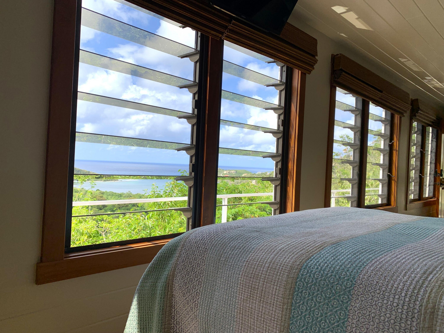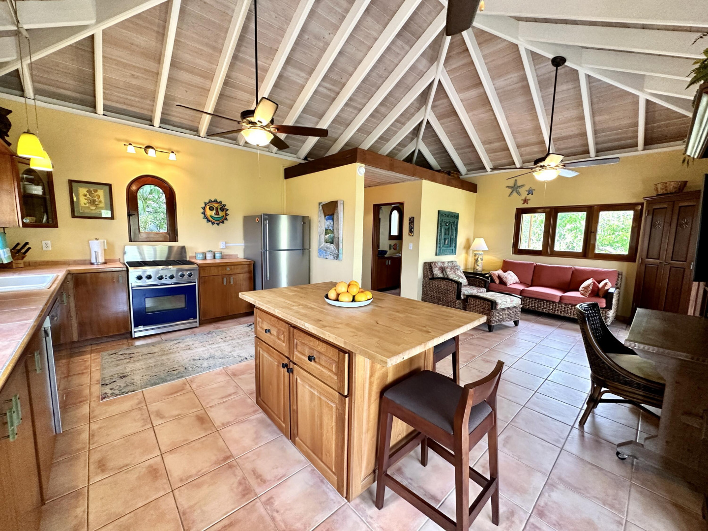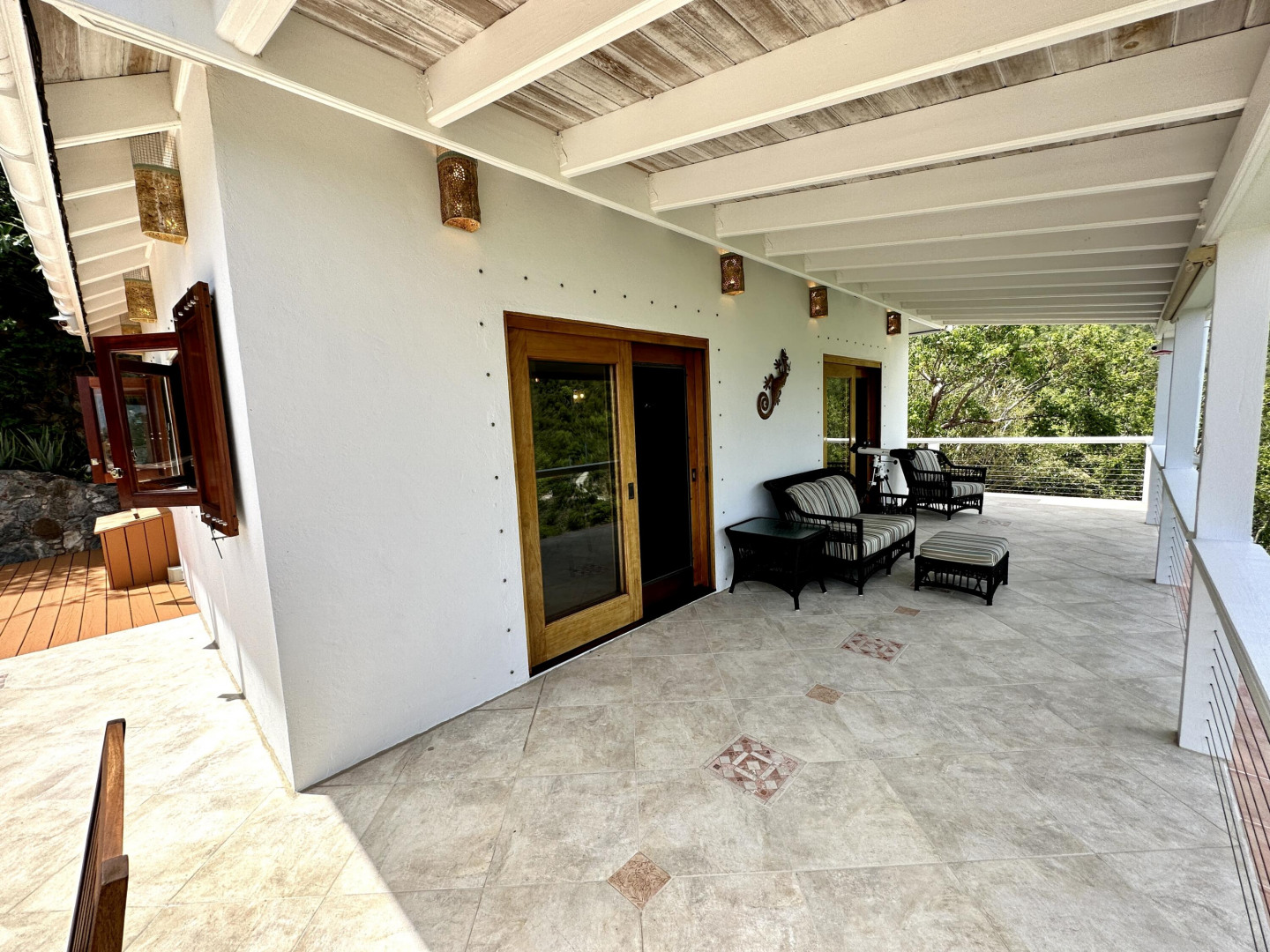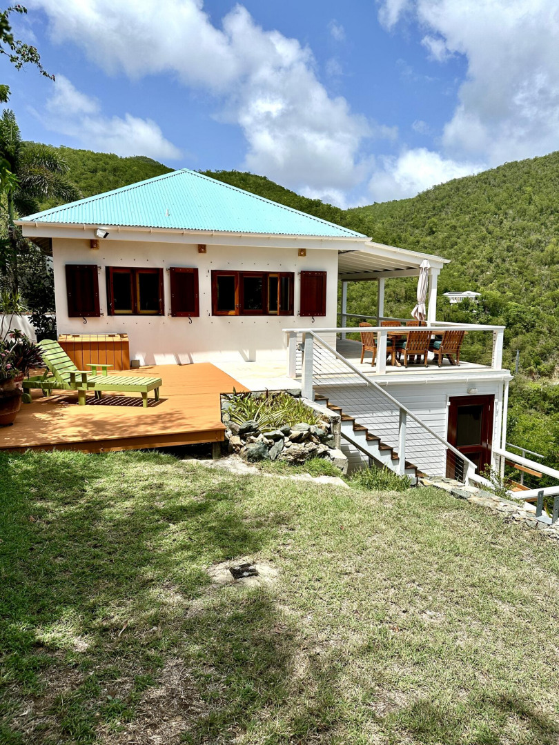 EL CARIBE is a custom-built Caribbean villa with amazing panoramic ocean views of Fish Bay and beyond. Enjoy fantastic breezes, peaceful secluded end of road location for max privacy, just steps away from National Park boundary & nearby Reef Bay beach. Luxury features include mahogany windows and doors, custom exterior light fixtures, durable IPE steps, UV water filtration, + stainless kitchen appliances incl. dual fuel Kitchen Aid range. Gourmet kitchen and downstairs master suite recently remodeled. Plenty of room for entertaining - villa sleeps 5 with queen sofa sleeper upstairs and twin sofa sleeper downstairs. Flat yard with ample room for home expansion and to add a pool. Well suited as your private secluded retreat or a rental villa. Video walkthrough available by request. -