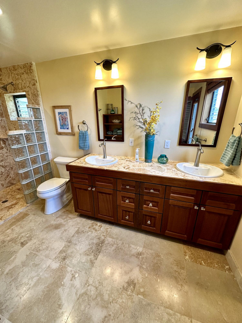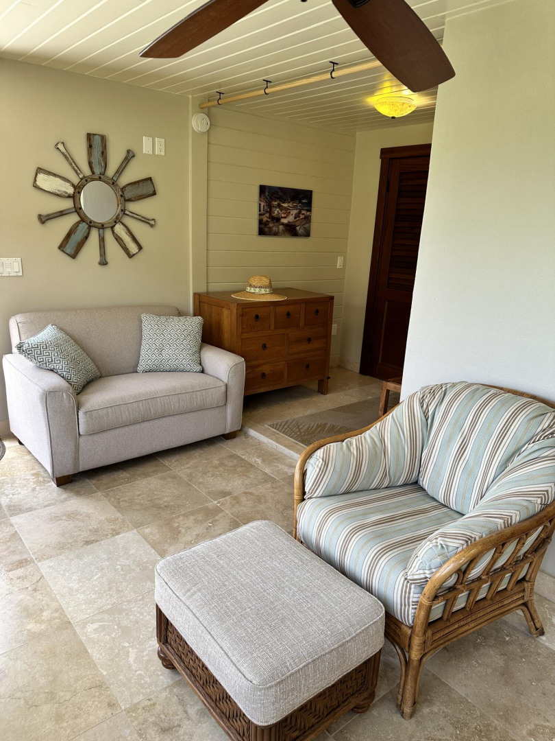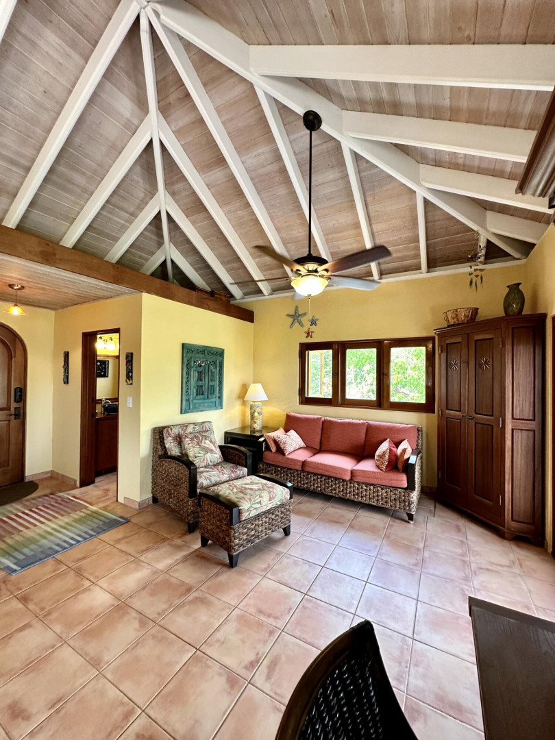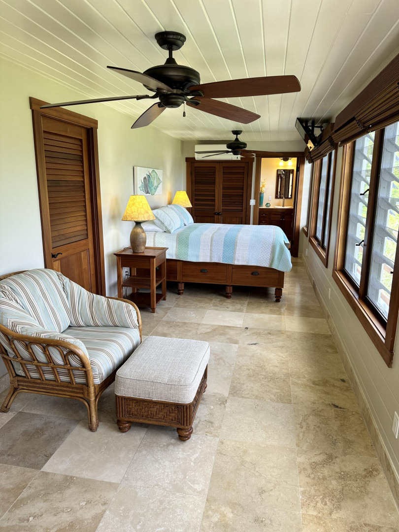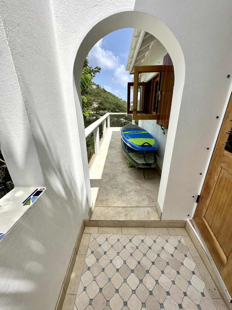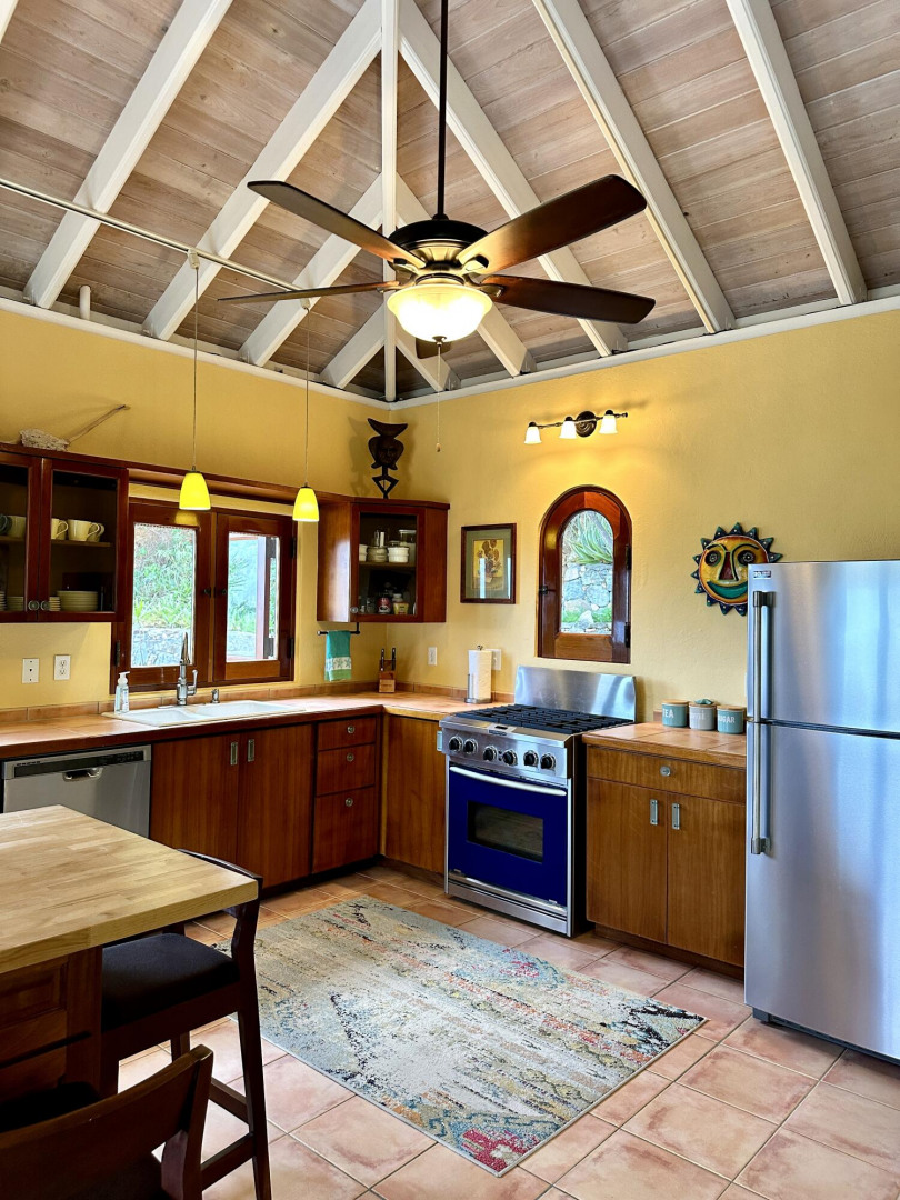 EL CARIBE is a custom-built Caribbean villa with amazing panoramic ocean views of Fish Bay and beyond. Enjoy fantastic breezes, peaceful secluded end of road location for max privacy, just steps away from National Park boundary & nearby Reef Bay beach. Luxury features include mahogany windows and doors, custom exterior light fixtures, durable IPE steps, UV water filtration, + stainless kitchen appliances incl. dual fuel Kitchen Aid range. Gourmet kitchen and downstairs master suite recently remodeled. Plenty of room for entertaining - villa sleeps 5 with queen sofa sleeper upstairs and twin sofa sleeper downstairs. Flat yard with ample room for home expansion and to add a pool. Well suited as your private secluded retreat or a rental villa. Video walkthrough available by request. -