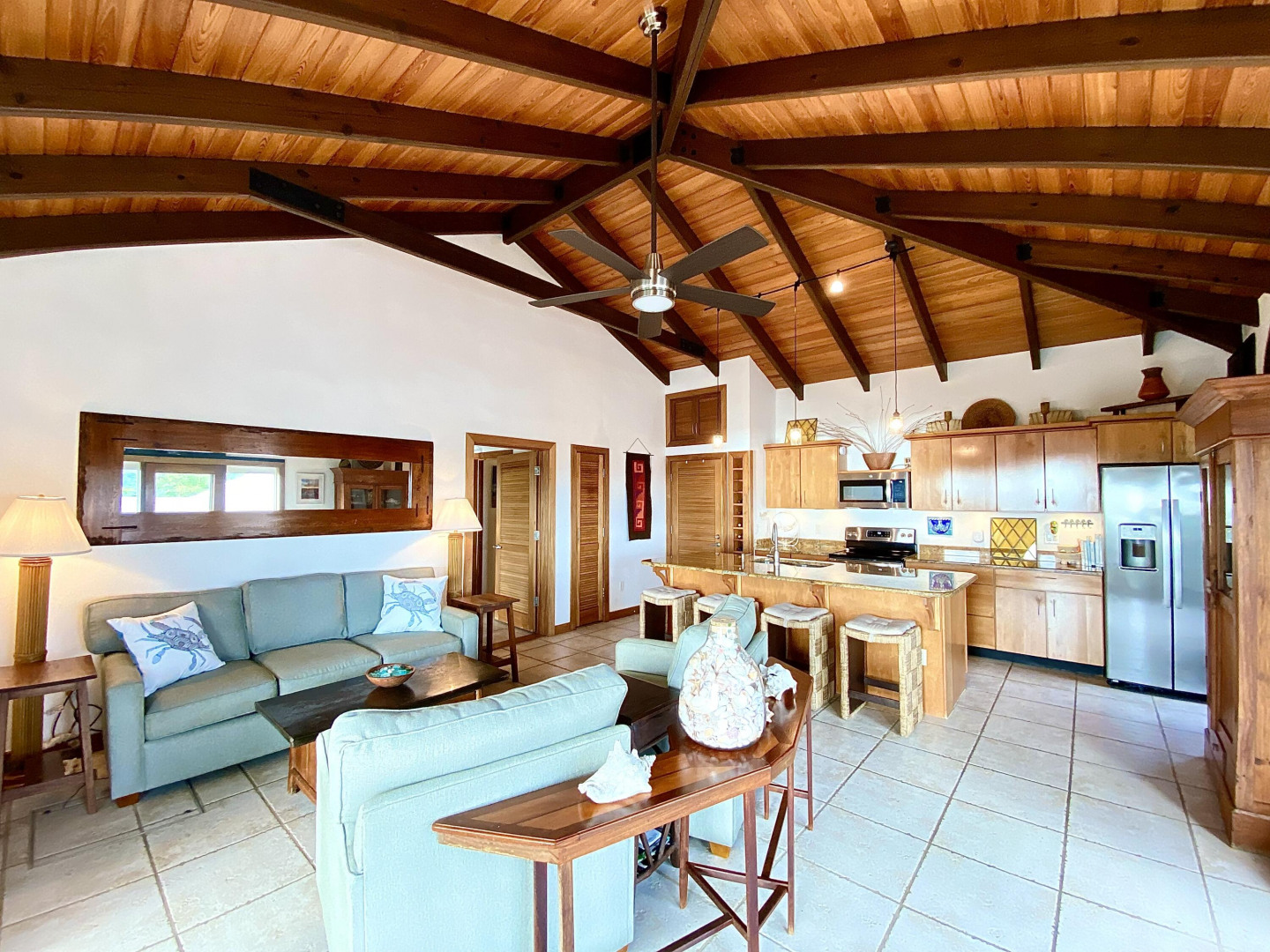 Casa Amor Villa is a beautifully appointed home w)dramatic ocean views including the BVI's, Coral Harbor, East End of St John & surrounding hillside.A custom designed 2 bedroom / 2 bath villa w) newly installed solar, a pool and good road access with a gated private driveway that offers a 3 car parking area . Currently a successful short term rental with ocean views from every room, outdoor stone shower, travertine floors, solid wood cabinets, teak interior doors & outdoor built in BBQ with sink and prep area. The upper level is accessed off of the car park area. The great Room, kitchen, primary suite w) ensuite bath are located just off the BBQ / outside dining area and covered sitting area.Recent improvements -