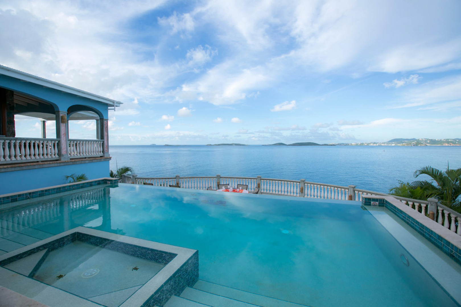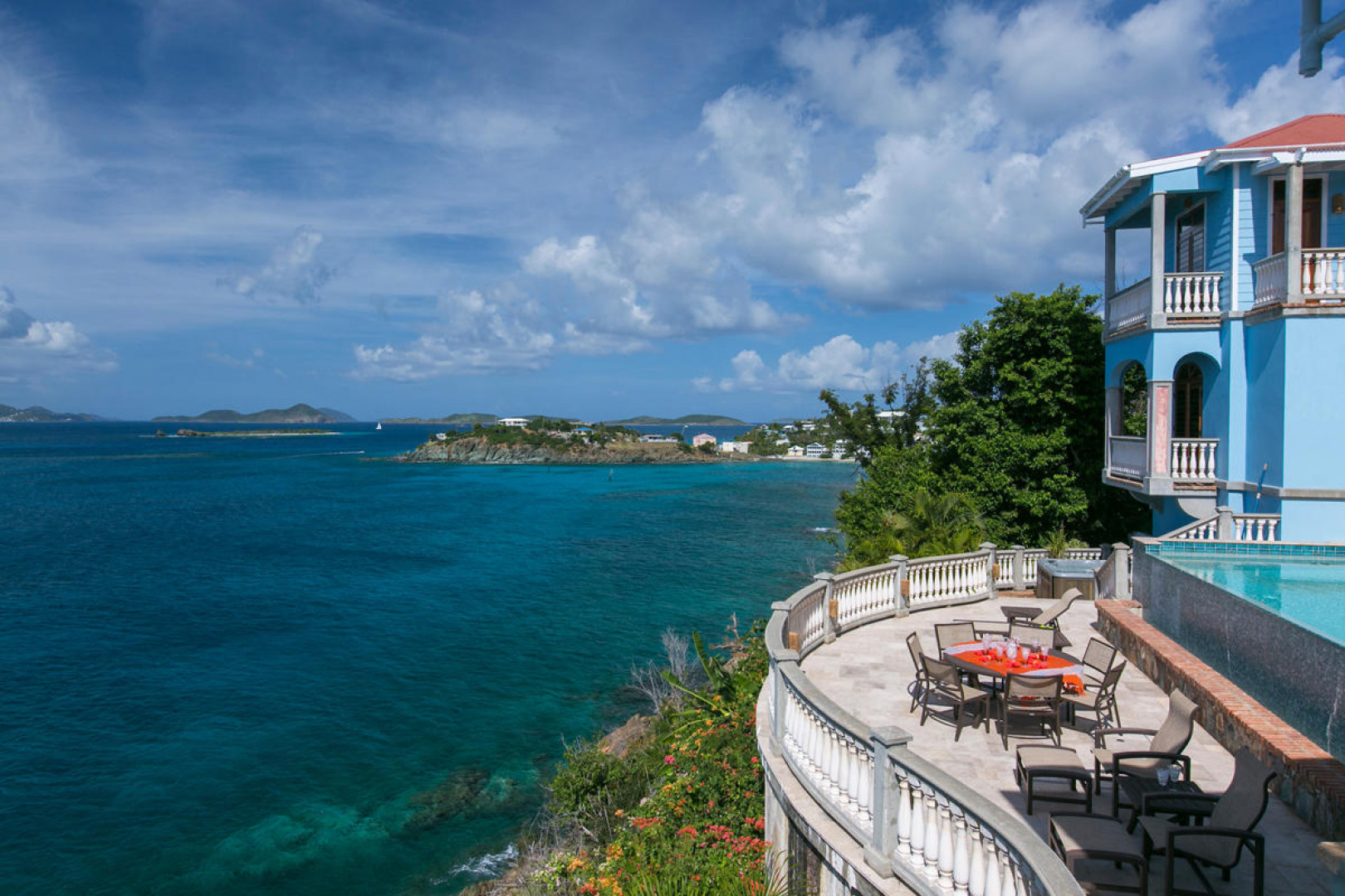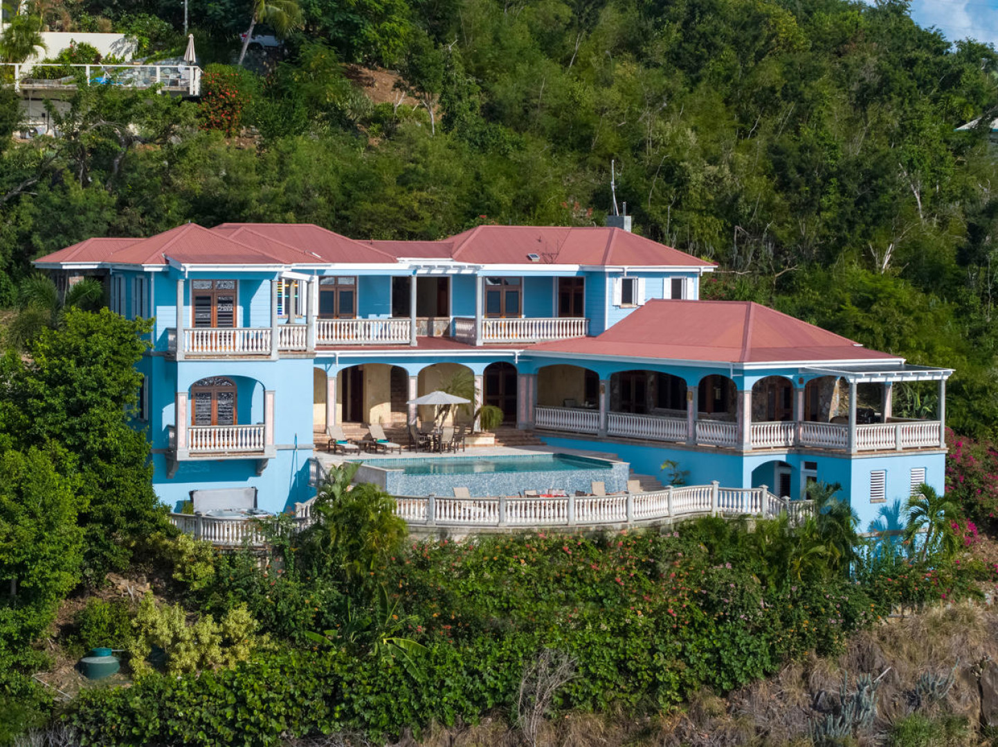 More About 10-e Contant, St. John, USVI, 00830''Rhapsody St John'' - Priced to sell - this beautiful waterfront property is just finishing up a complete refresh with new paint, linens, refinished doors & windows, etc. A new addition is a brand new whole house 30KW diesel generator with a 300 gallon tank. One of the most impressive short term rentals on St. John! Rhapsody is truly a very special Caribbean estate on a 1/2 acre waterfront lot with a 16'x32' spectacular infinity pool & immense pool deck at great room level.Features include stone & masonry construction, granite counter tops, stainless appliances, 2 full laundries, garage, lg.paved parking area, 6 flat screen TVs,ipod docking station, wireless internet & outdoor speaker system.