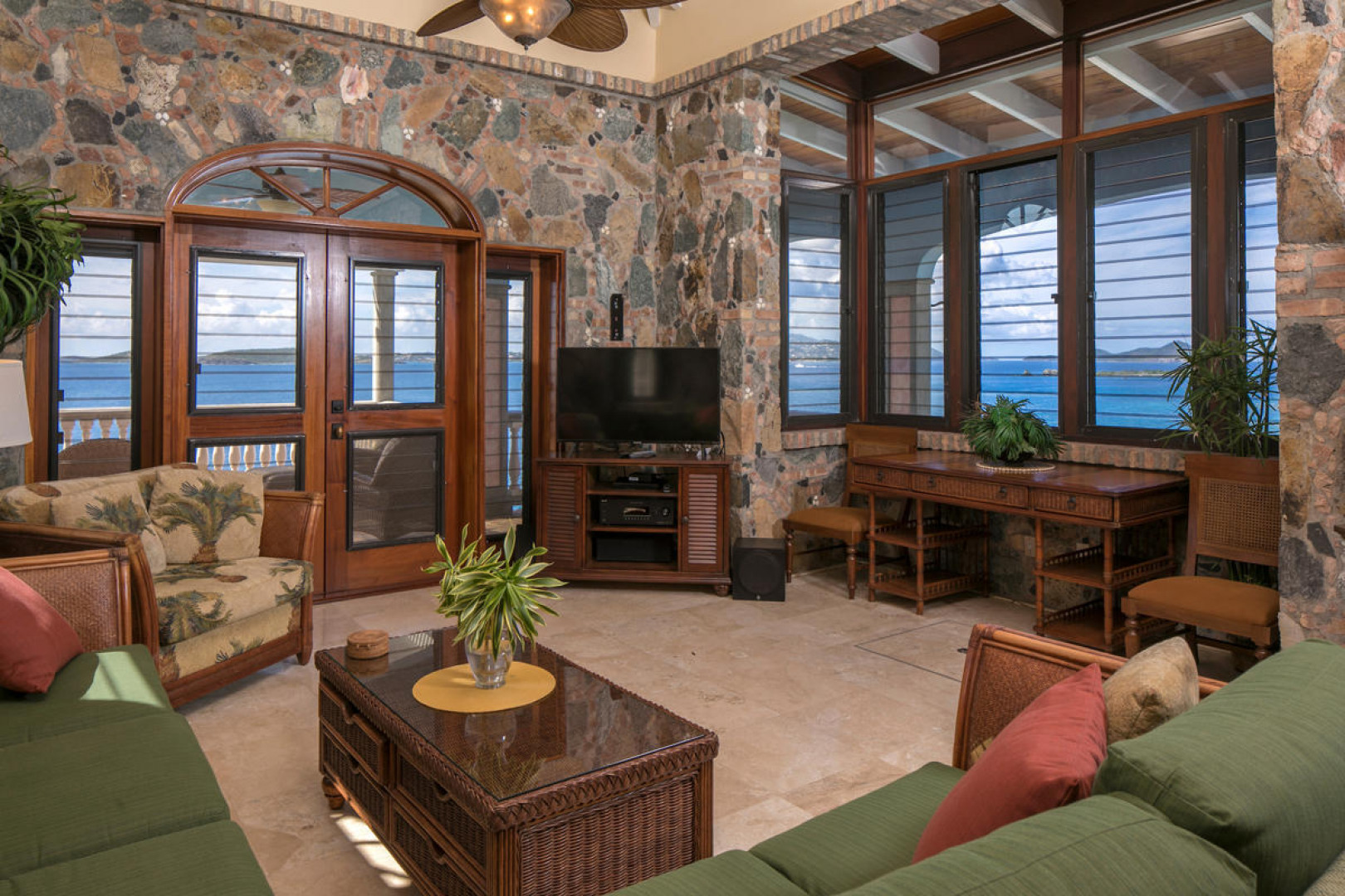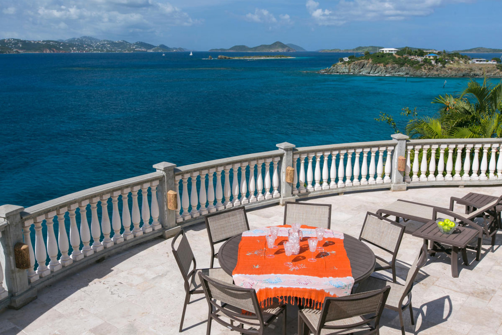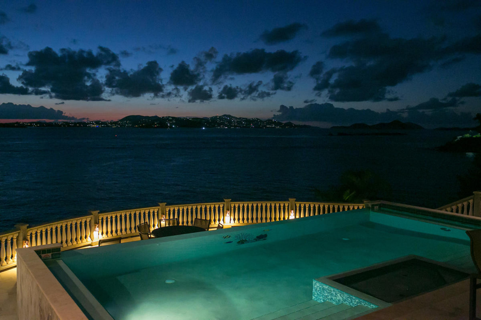 More About 10-e Contant, St. John, USVI, 00830''Rhapsody St John'' - Priced to sell - this beautiful waterfront property is just finishing up a complete refresh with new paint, linens, refinished doors & windows, etc. A new addition is a brand new whole house 30KW diesel generator with a 300 gallon tank. One of the most impressive short term rentals on St. John! Rhapsody is truly a very special Caribbean estate on a 1/2 acre waterfront lot with a 16'x32' spectacular infinity pool & immense pool deck at great room level.Features include stone & masonry construction, granite counter tops, stainless appliances, 2 full laundries, garage, lg.paved parking area, 6 flat screen TVs,ipod docking station, wireless internet & outdoor speaker system.