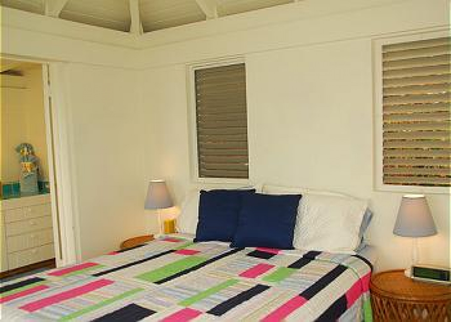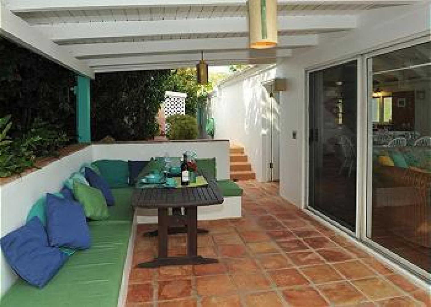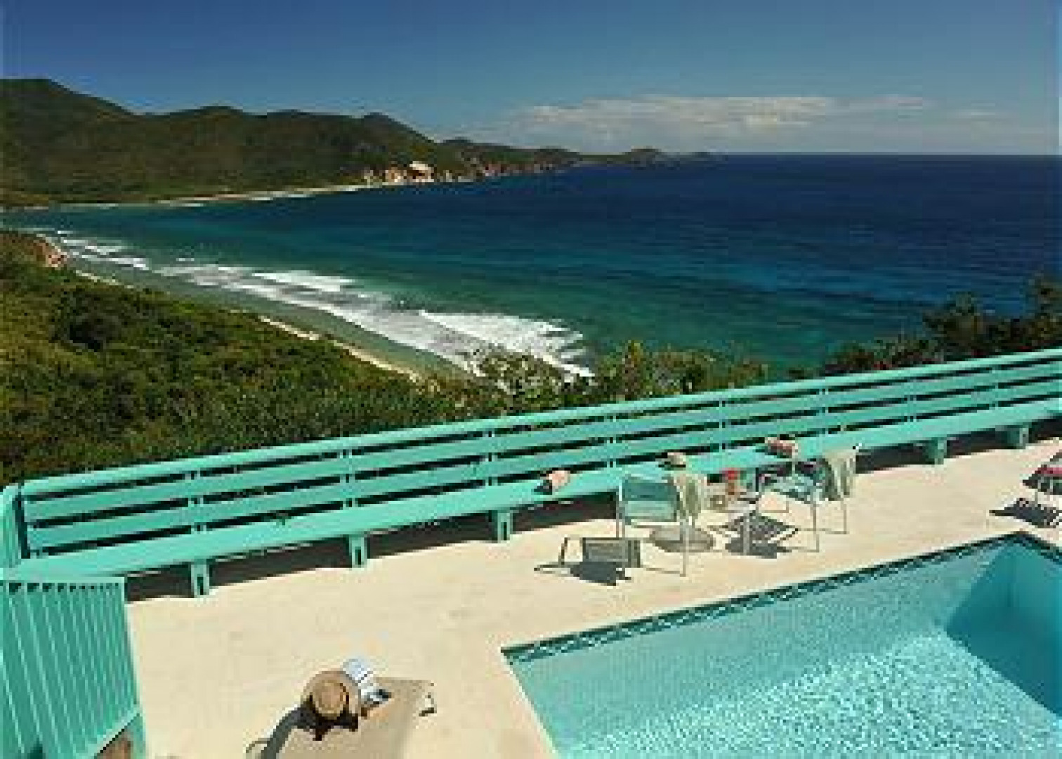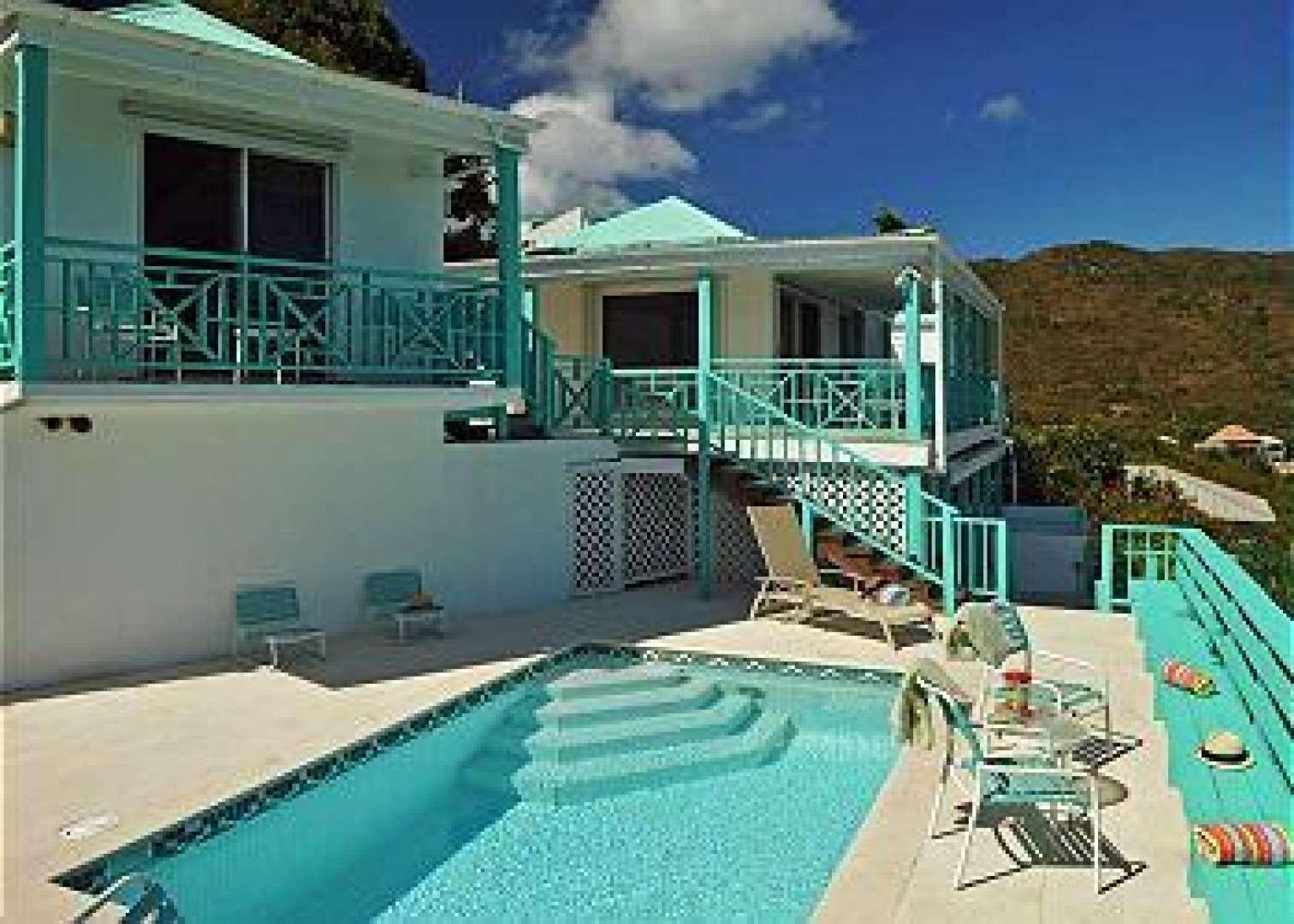 Price SLASHED! REEF BAY VIEW is a classic Mediterranean/Caribbean designed villa with pristine National Park views of Reef Bay, Ram Head, and the white sandy beach below. This classic villa has 3 buildings, with white walls & turquoise accents, connected by covered decks and walkways. Each room has commanding sights of the undeveloped National Park land & the soothing sounds of the waves on the beach. The main building has cathedral ceilings in the living room & kitchen, and a comfortable outdoor dining area, with 2 bedroom/bath pods on either side, and 2 bedrooms with adjoining bath on the pool & Juccuzi deck. This turn-key rental villa has terra cotta tile floors, a/c, and a superb location, adjacent to National Park land, and within walking distance to Reef Bay beach. A MUST SEE! -
