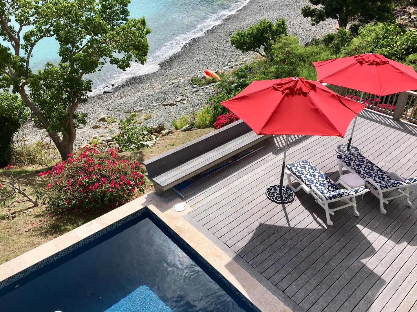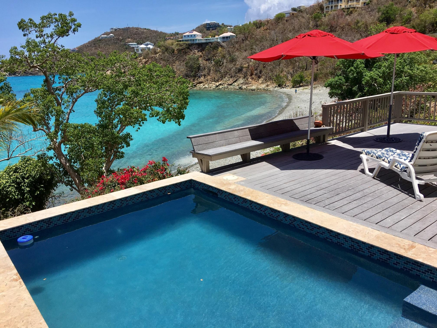 More About 15a-7-27 Rendezvous & Ditleff, St. John, USVI, 00830ON THE ROCKS is of incomparable value, located in an unbeatable setting on the BEACH in prestigious Klein Bay, with swimming, snorkeling & kayaking just steps away! As you enter, you are immediately drawn to the magnificent turquoise views of Rendezvous Bay & the idyllic sights & sounds of the surf from every room. Stone walls & arched openings adorn the open concept living space which includes a great room, center island kitchen w/walk-in pantry & dining area, opening onto the huge wrap-around veranda - perfect for entertaining! The private master suite has A/C, laundry & a balcony. A full 1 bd apartment w/separate entry, plus a guest bd/bath & an extra lg. workroom are on the pool level. Everyone loves On the Rocks, it is truly a fabulous one-of-a-kind BEACHFRONT villa."On the Rocks" is the ONLY property in Klein Bay that goes down to the waters' edge. The rest of the beach is common property for the homeowners.