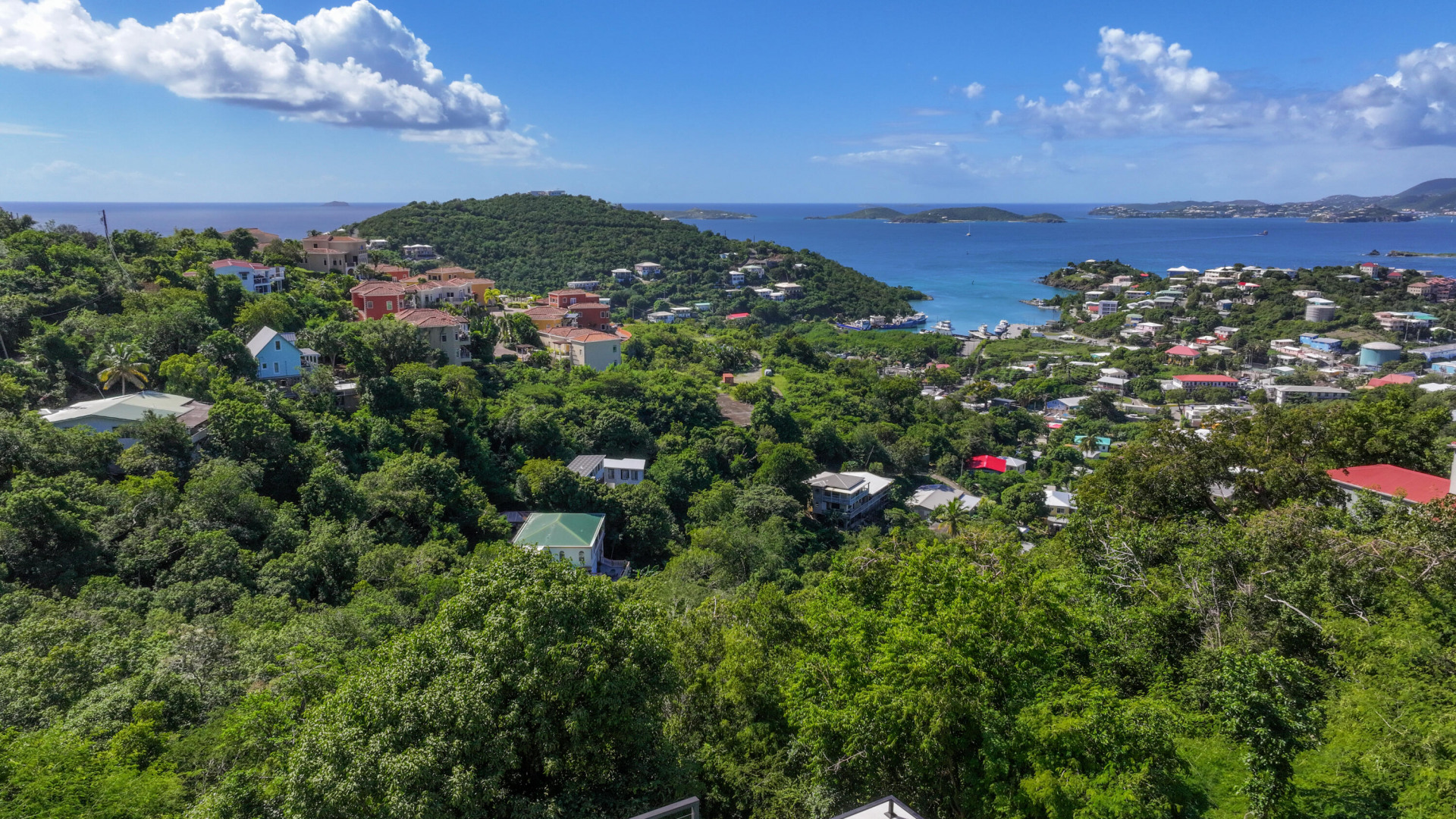 - View: Caribbean, Harbor, Mountain, Panoramic, St. Thomas, West/sunset
