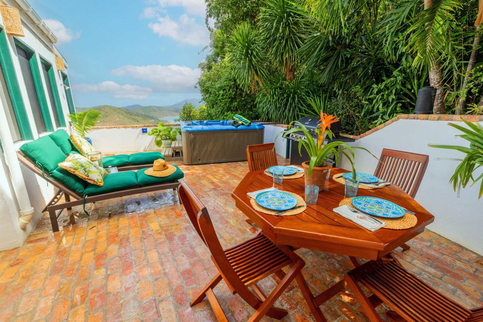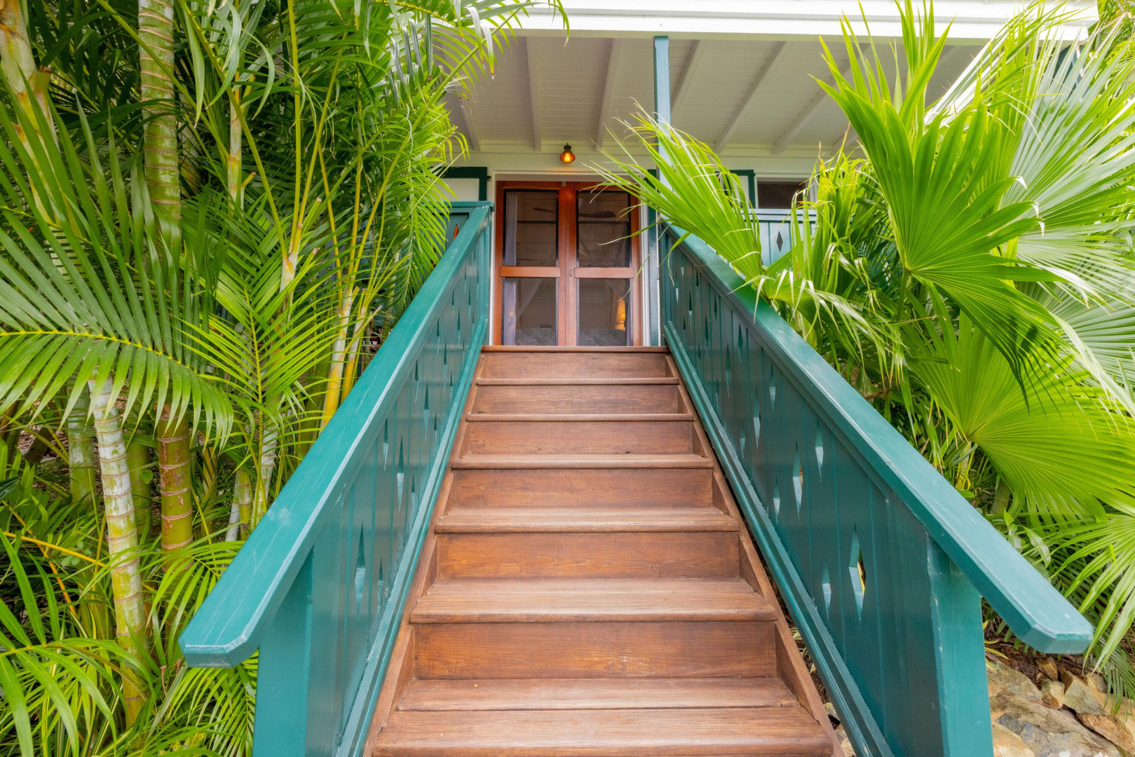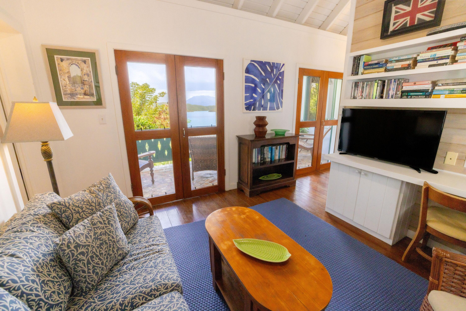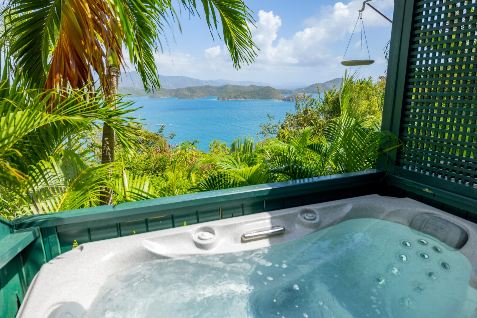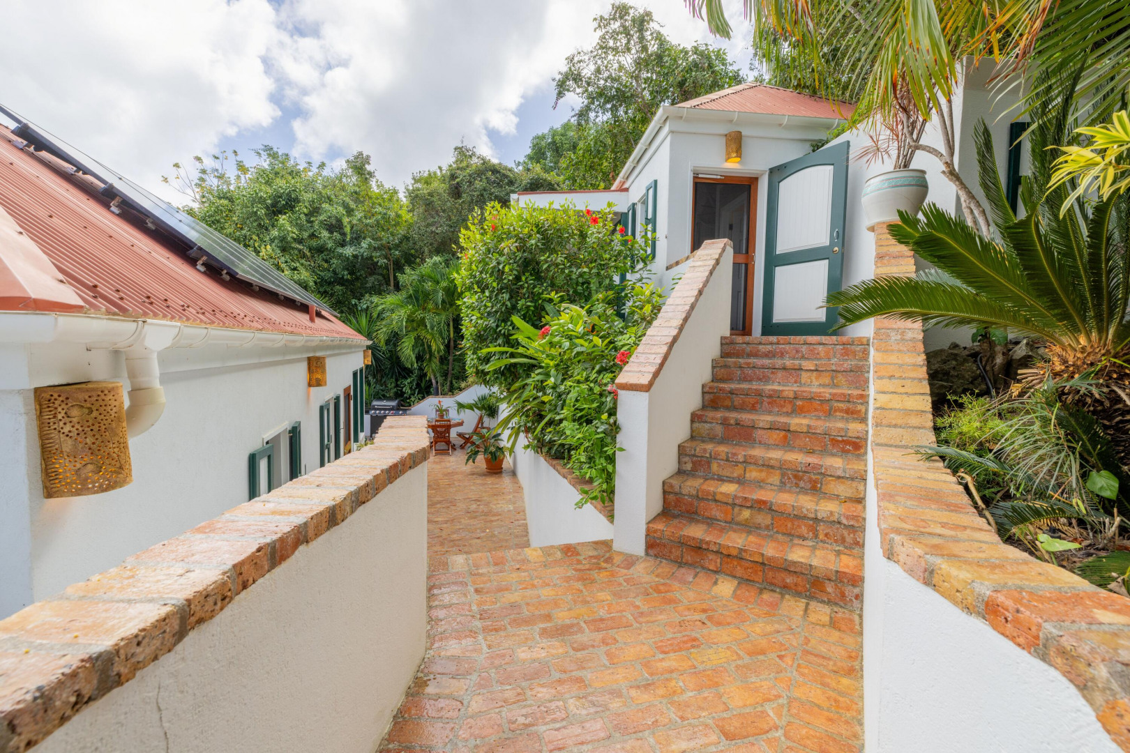 Windwardside Cottages, a turnkey rental opportunity, offers classic Caribbean charm with three masonry pods perfectly intertwined amongst bricked pathways and lush gardens. Each of the two bedroom pods offer ensuite baths and outdoor showers. The guest bedroom pod also offers a small kitchenette. The main pod comprises the living room, kitchen with newer appliances, the third full bath and two porches to choose from -both of which capture the expansive and easterly post card views of Coral Bay to the BVI. Two hot tubs on property-one in guest cottage and one off the main pod. New hardwood screen doors and decorative shutters, new ceiling fans, updated landscaping and two Tesla power walls with nineteen panels. This property has been meticulously maintained, and it shows! -