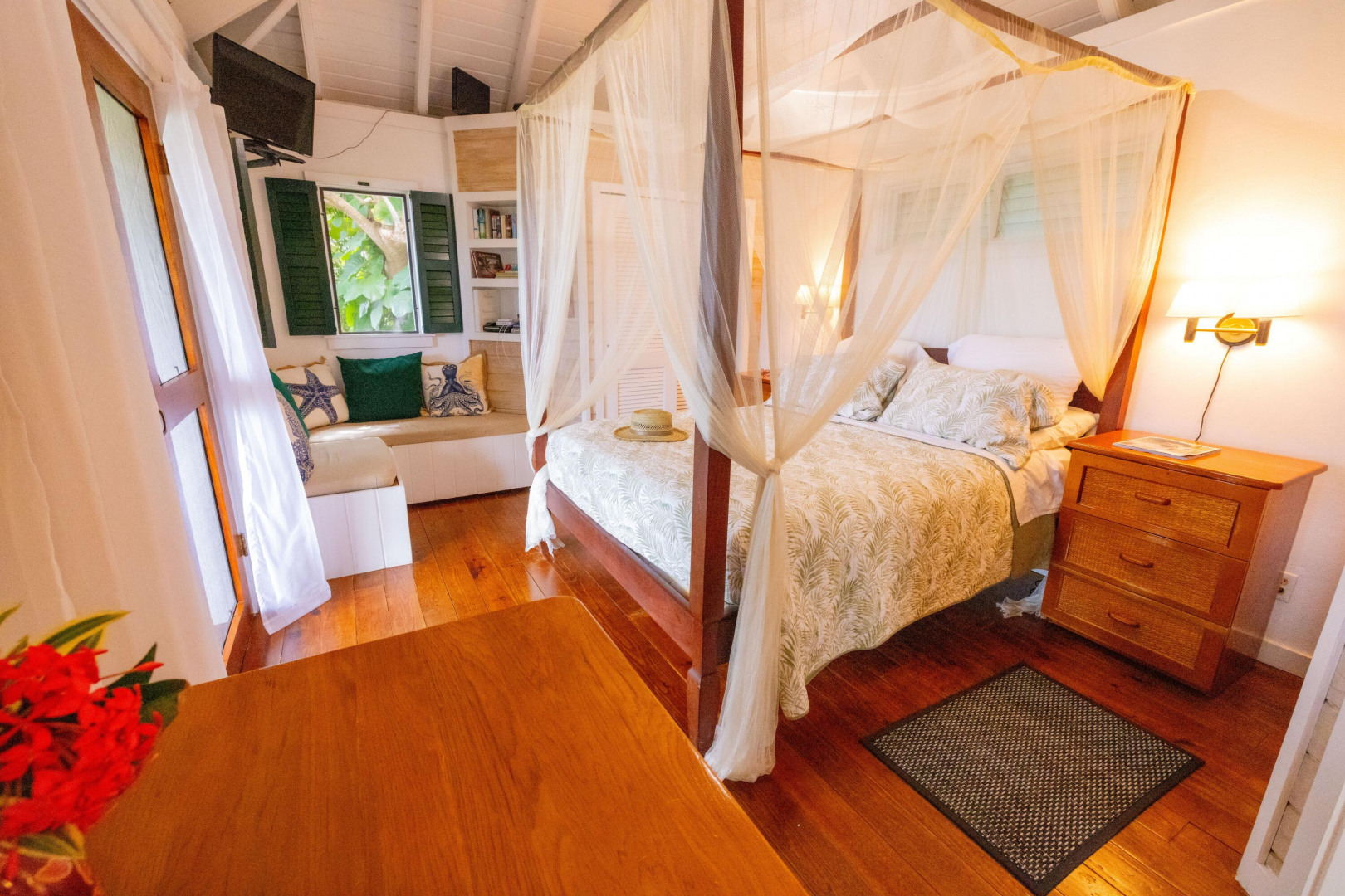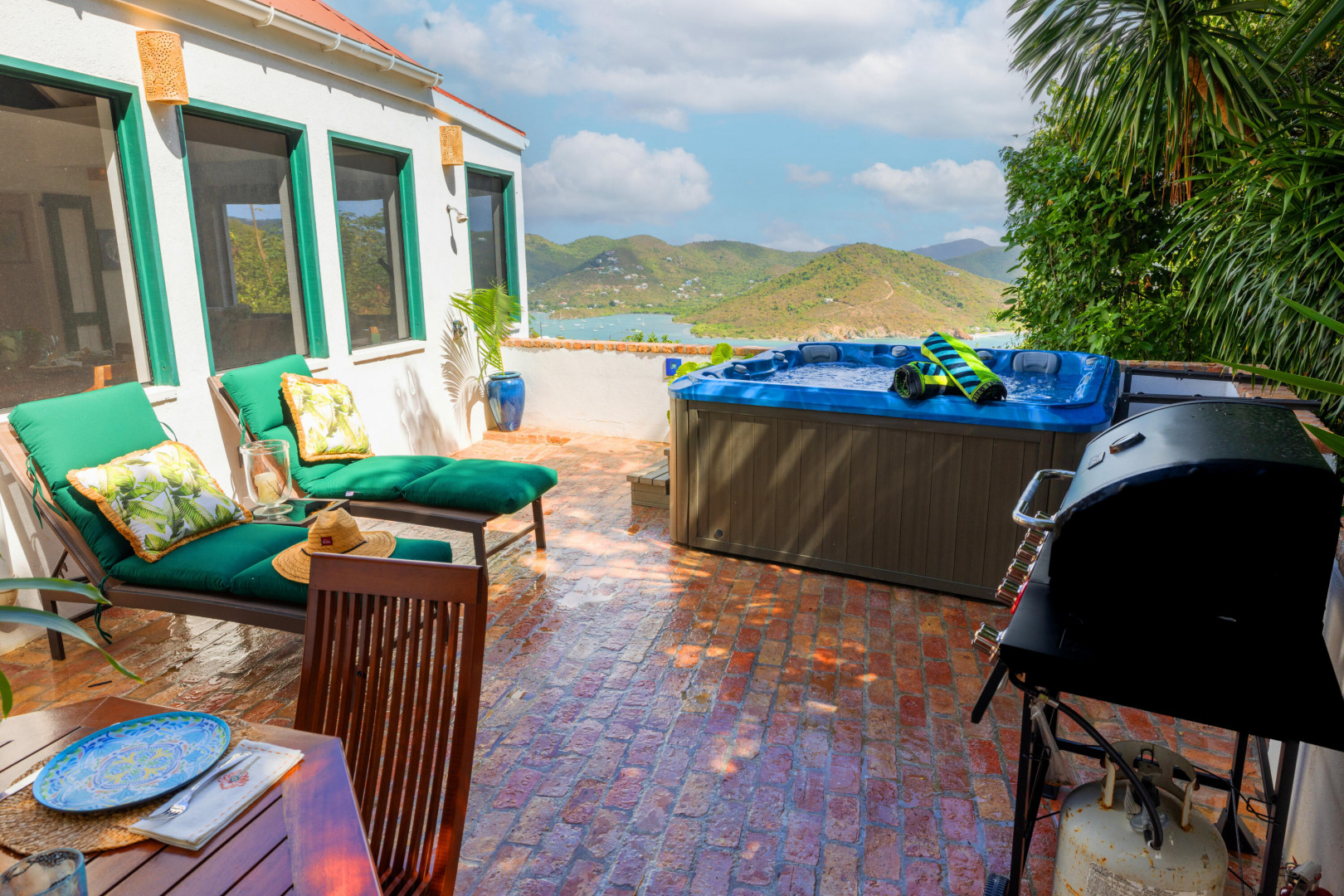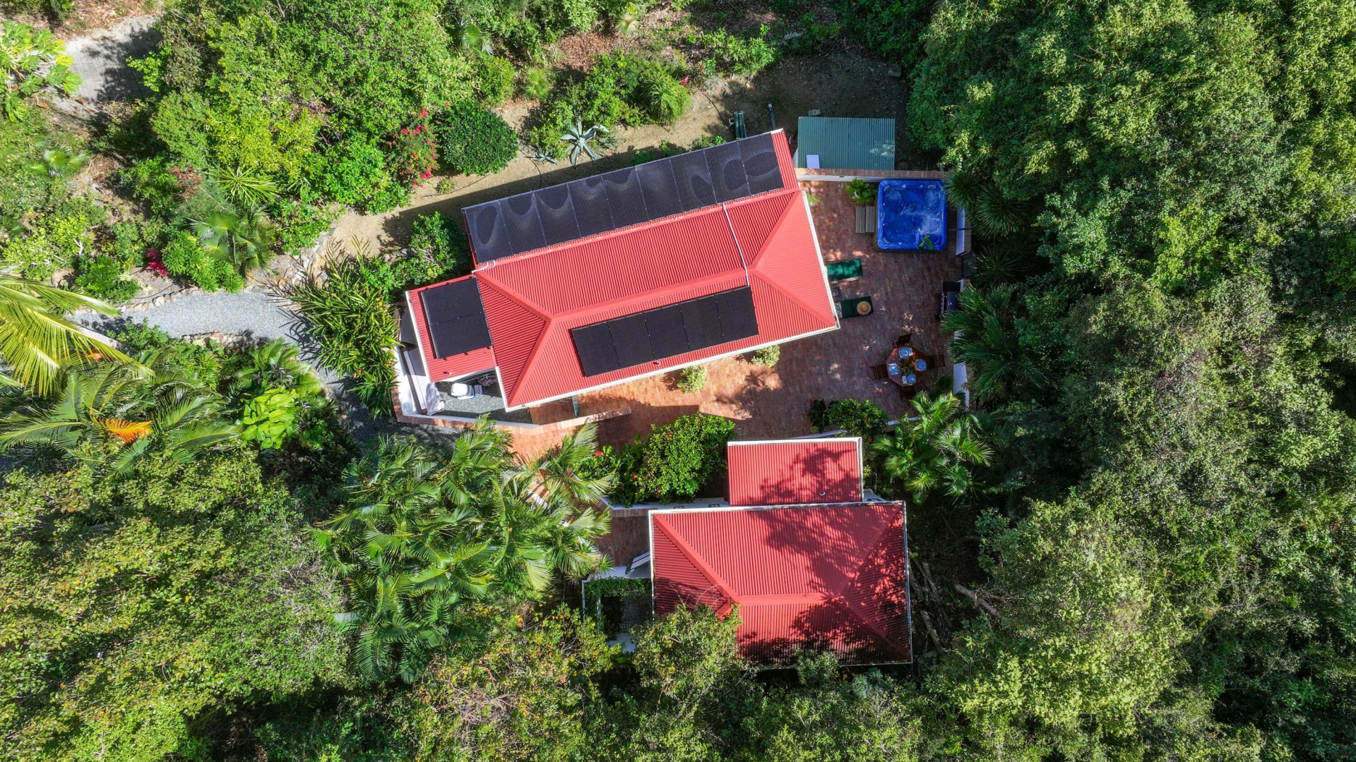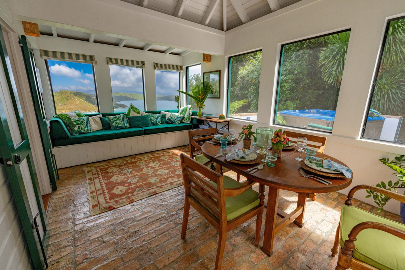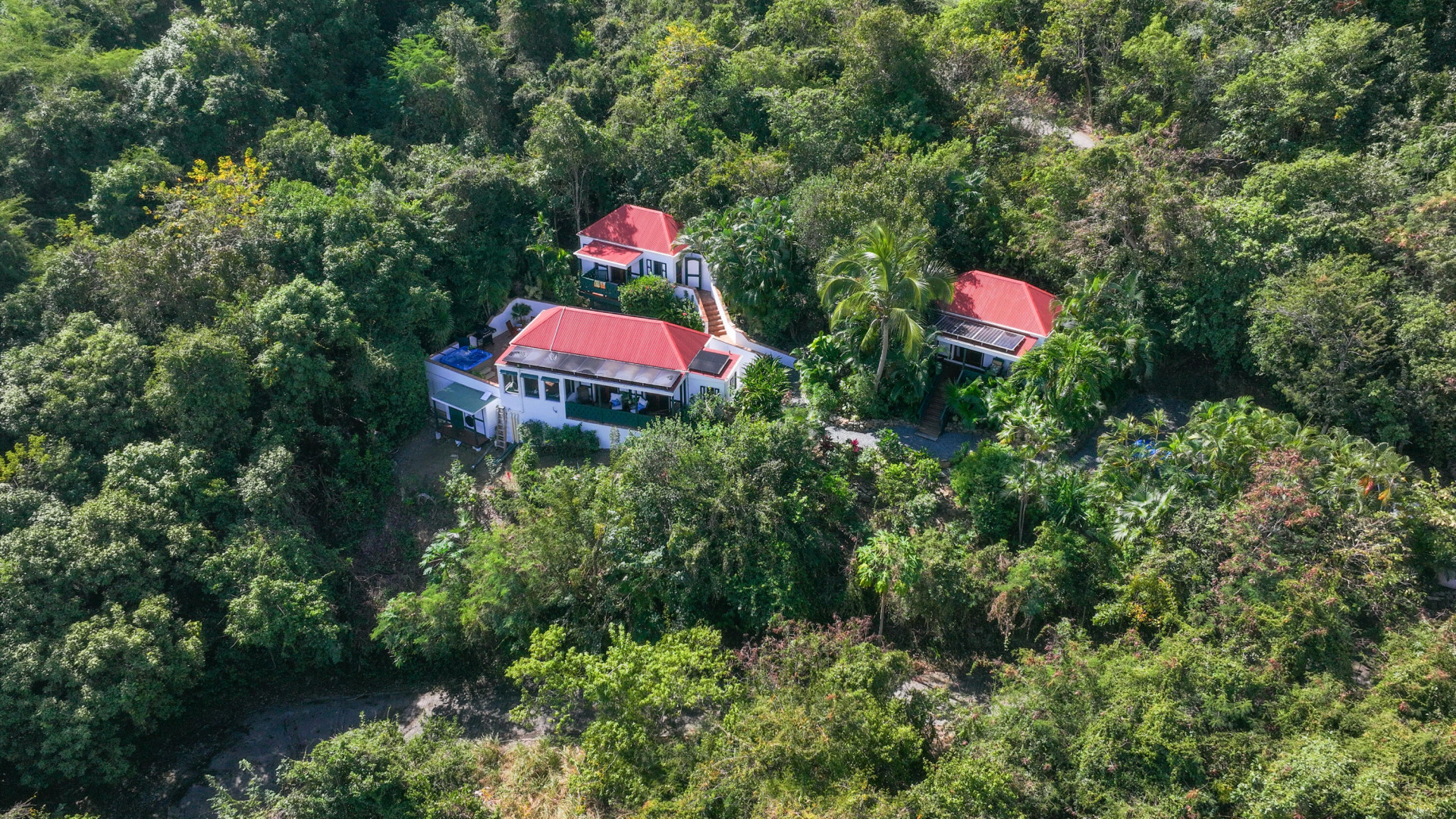 Windwardside Cottages, a turnkey rental opportunity, offers classic Caribbean charm with three masonry pods perfectly intertwined amongst bricked pathways and lush gardens. Each of the two bedroom pods offer ensuite baths and outdoor showers. The guest bedroom pod also offers a small kitchenette. The main pod comprises the living room, kitchen with newer appliances, the third full bath and two porches to choose from -both of which capture the expansive and easterly post card views of Coral Bay to the BVI. Two hot tubs on property-one in guest cottage and one off the main pod. New hardwood screen doors and decorative shutters, new ceiling fans, updated landscaping and two Tesla power walls with nineteen panels. This property has been meticulously maintained, and it shows! -