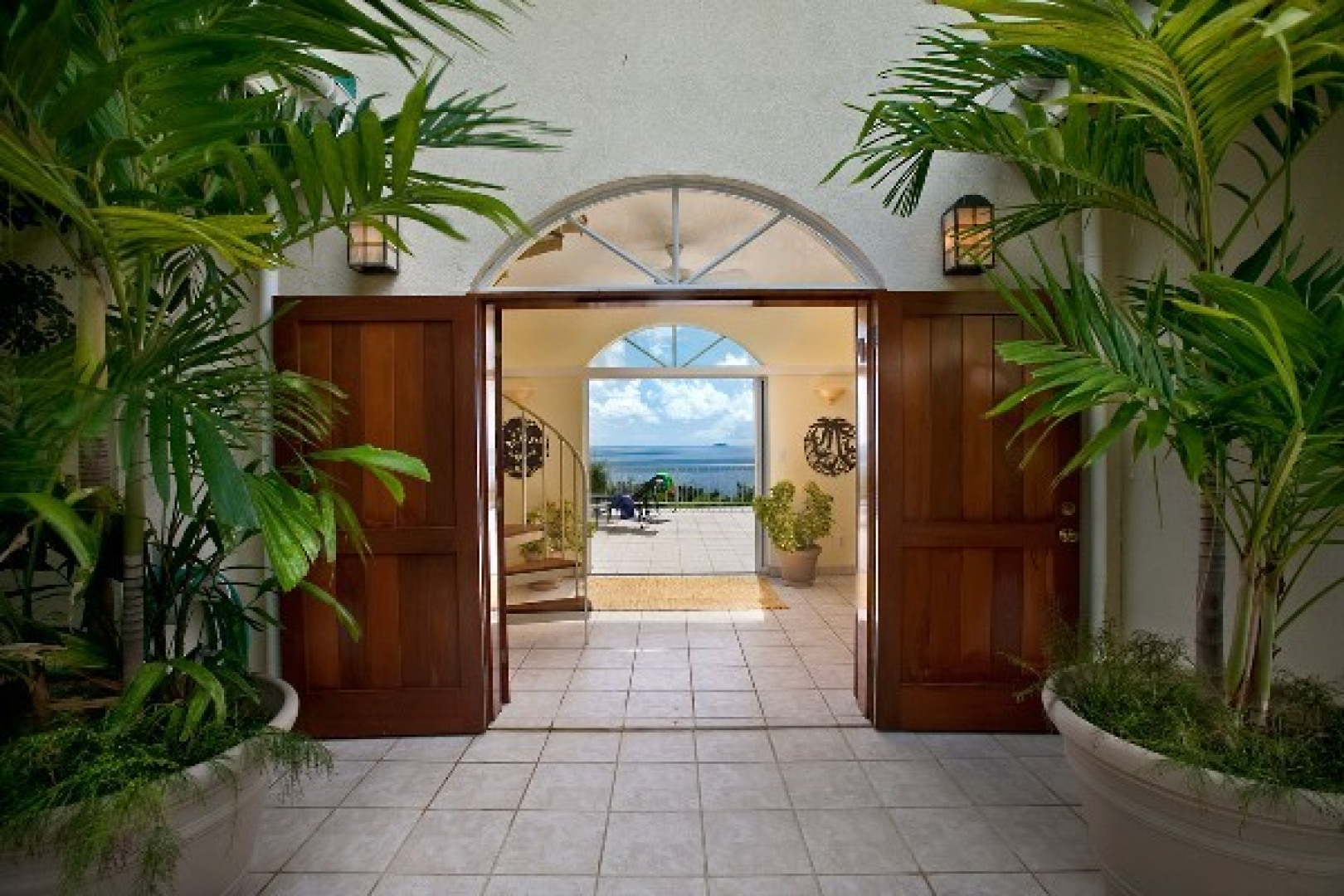 VILLA SPLENDORE - Sculptured high on a magnificent bluff overlooking the Caribbean Sea, Splendore can be your luxury retreat in paradise. The architectural design of this elegant residence combines Antillean style with European charm. Completely screened and connected by breezeways, two private bedroom suites sit on either side of a large great room that opens onto expansive open and covered porches. A second story loft office doubles as a third bedroom for added guests. Amenities include a pool and spa surrounded by lush tropical landscaping.