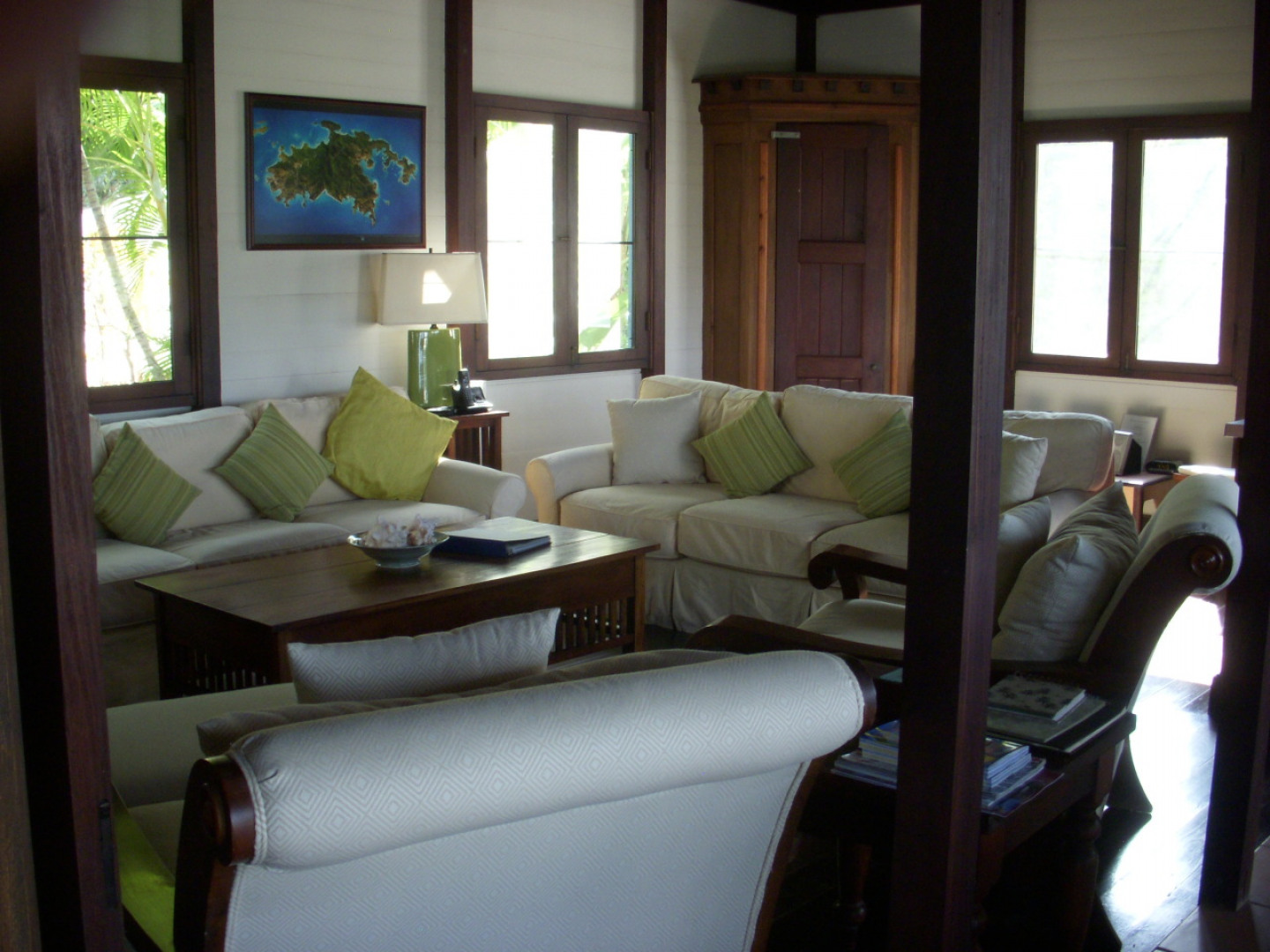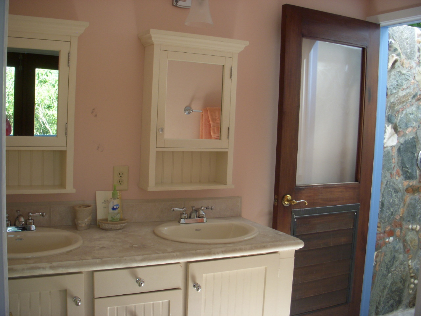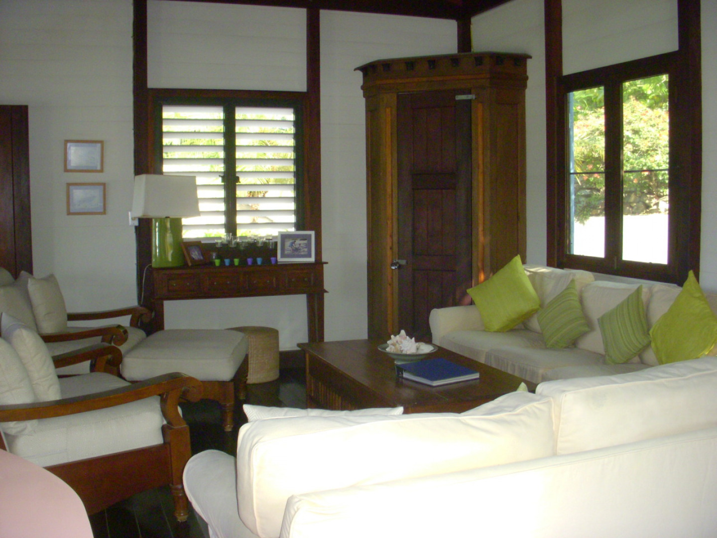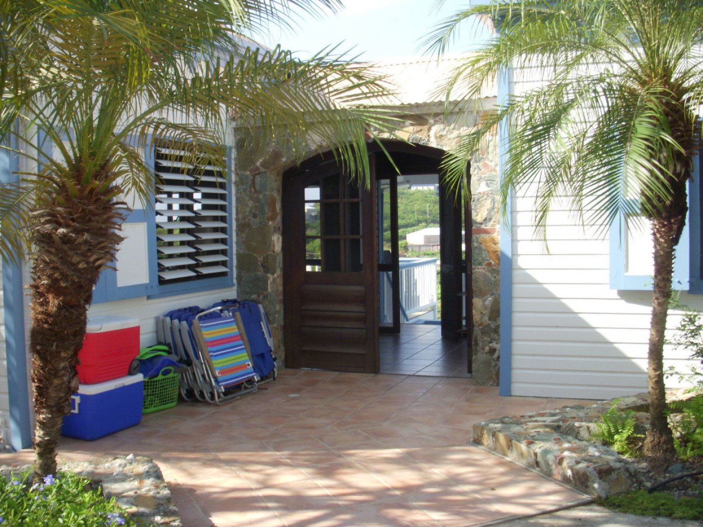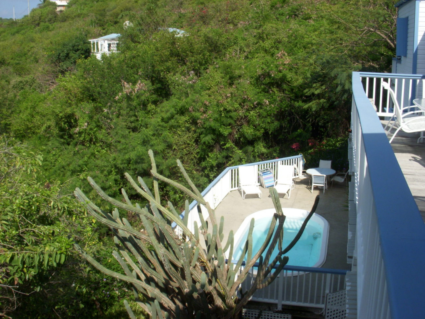 This charming 5 bedroom, Caribbean style home features a very private & sunny pool plus decks in a quiet, breezey location in Chocolate Hole convenient to Cruz Bay's shops and restaurants. Beautifully finished Brazilian hardwood home with native stonework arched entry, 2 island stone showers, classic mahogany floors, A/C in all bedrooms, and inside-outside tropical living in common areas. Deeded rights to 2 beaches (within walking distance) plus dinghy landing area in Chocolate Hole; Excellent value for turn key short term rental. Upper road with paved driveway as well as lower road parking and separate entry path. Buyer to split Transfer Tax equally with Seller. Buyer shall agree in writing to honor all future rentals committed to by Seller.Flexible floor plan would also lend itself well to becoming 2 dwelling units for 2 income sources with second kitchen area in a potential lower apartment. -