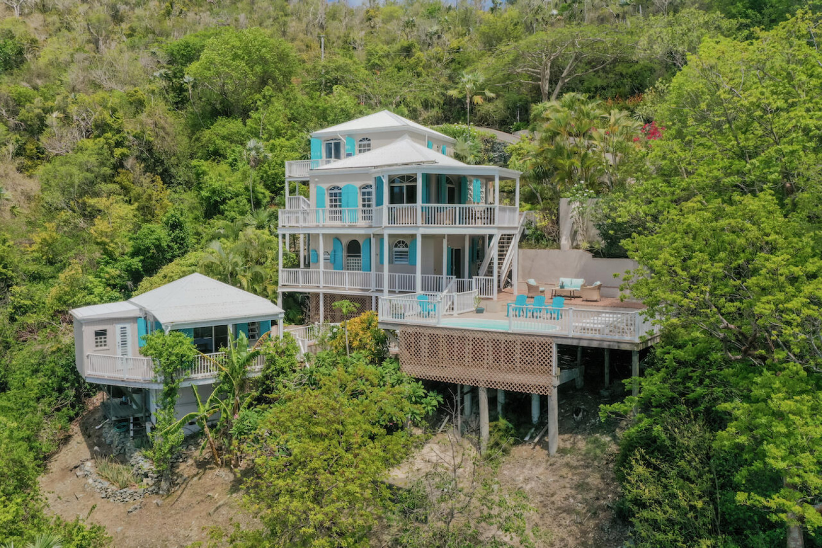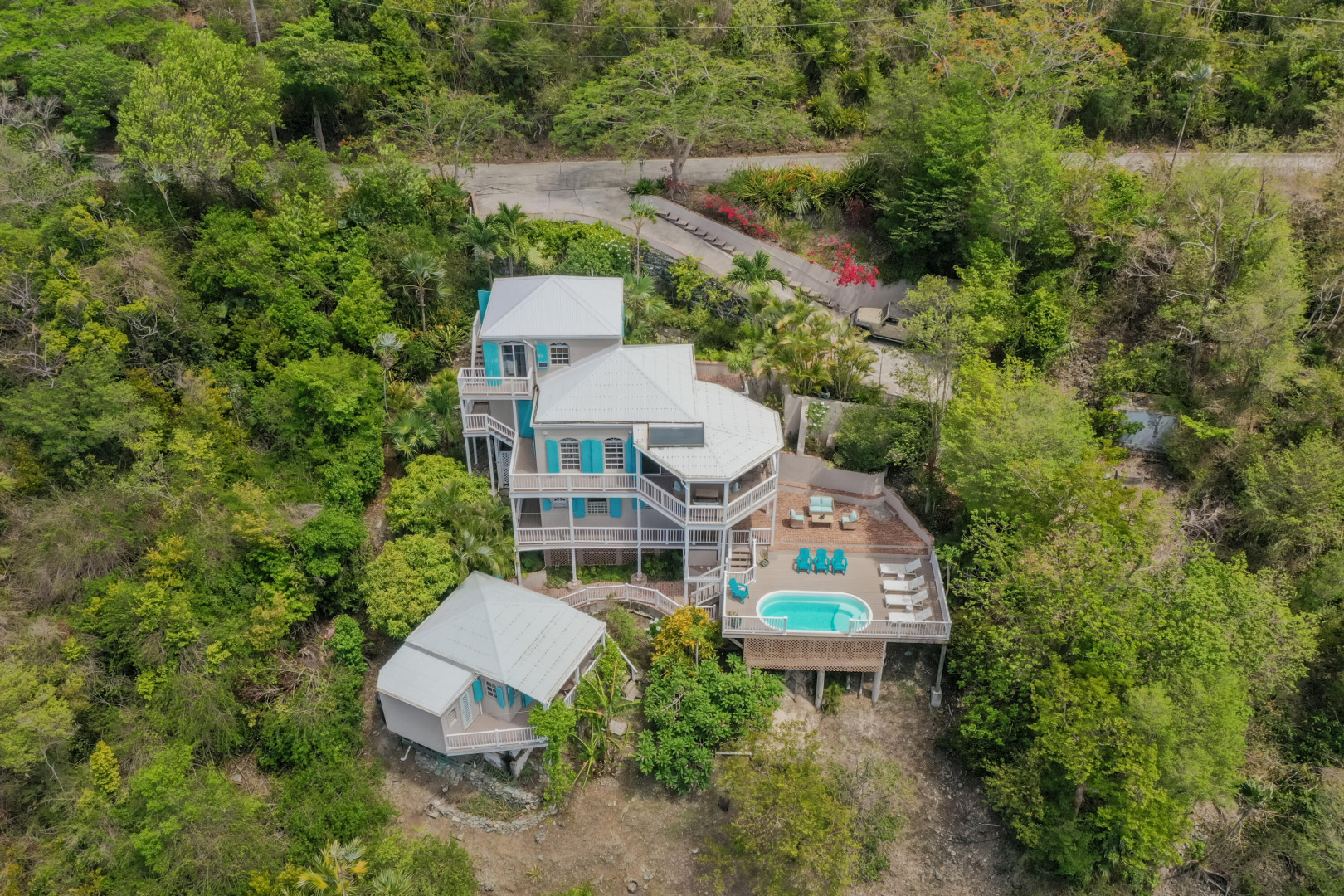 Welcome to Villa Dal Mare, a charming multi-level masonry home w/ pool, privately tucked on .53 acres along Upper Carolina's Majestic Mile. This 3 bedrm, 3.5 bath retreat is designed to accommodate up to 9 guests, making it a highly successful short-term rental opportunity.The property boasts panoramic views of coral bay and BVI beyond, lush valleys, and vibrant mature landscaping. Chicago brick walkways & patios add timeless character, while off-street parking for 3 vehicles, propane generator, & solar hot water ensure modern convenience.Looking for a turnkey investment or a serene island escape, Villa Dal Mare delivers. Originally built as a family home, it exudes warmth and a sense of belonging. Don't miss this well-maintained gem - a must-see for investors and homeowners alike