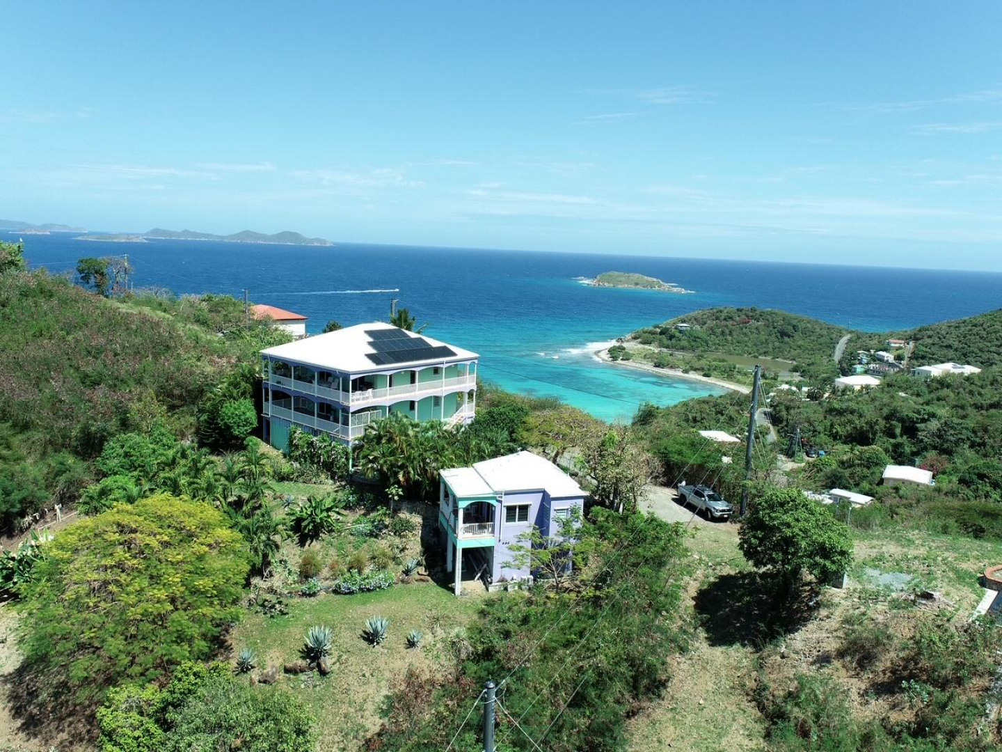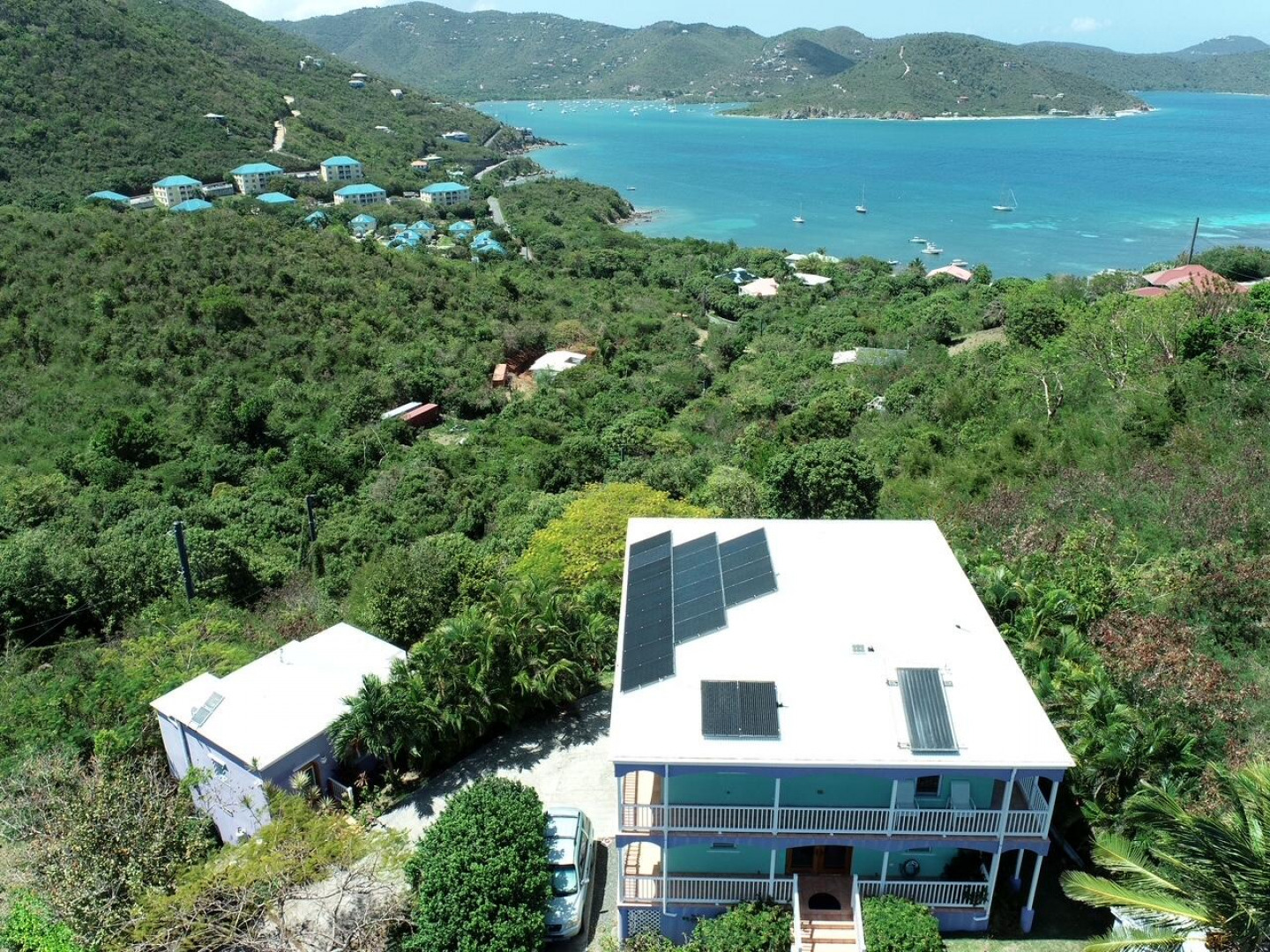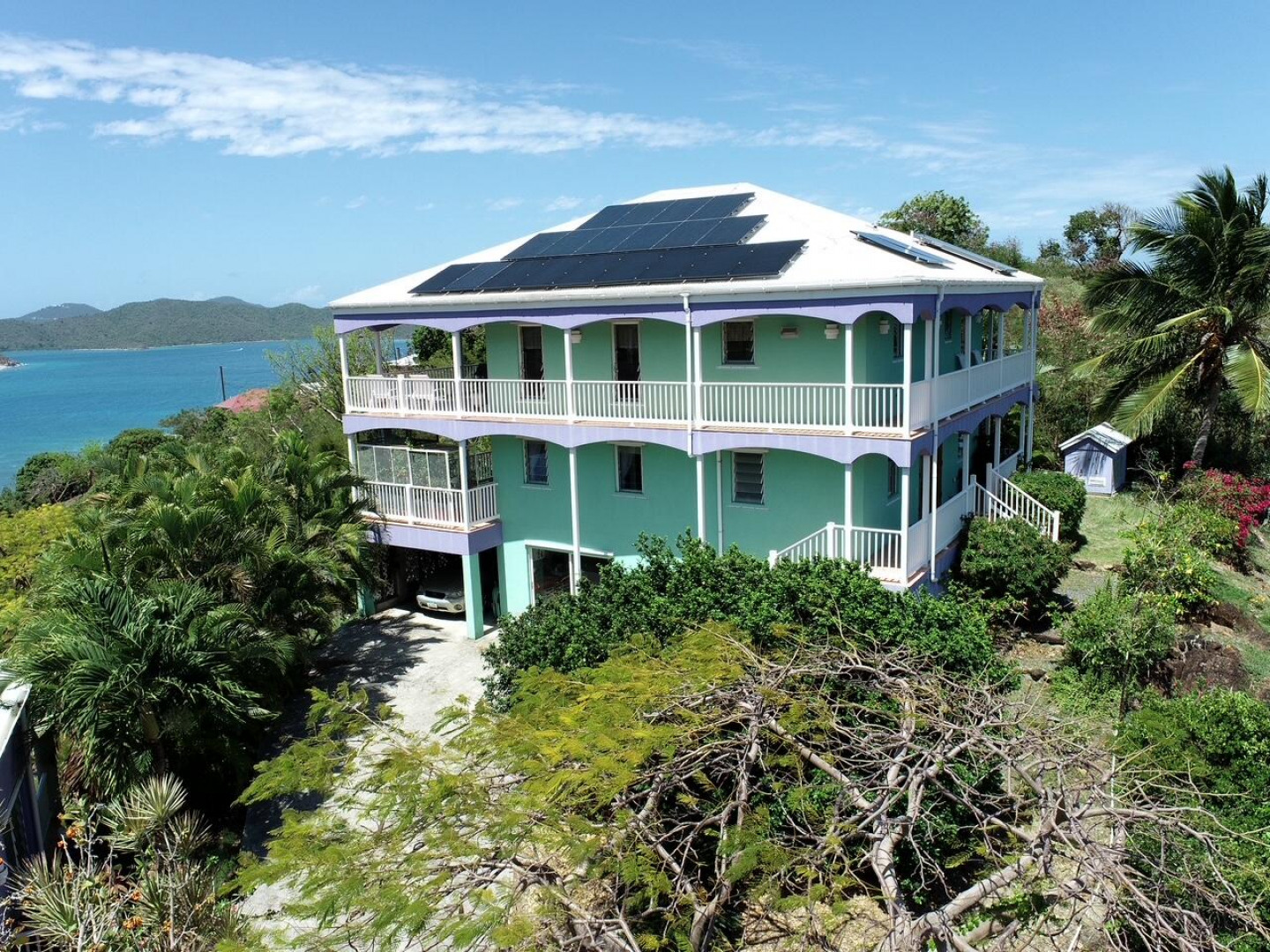 More About 6b-22 St. Quaco & Zimmerman, St. John, USVI, 00830Double Vision is an unique masonry home with an additional studio cottage with bi- directional water views, beautiful gardens and gated entry / fenced in property. Double Vision has an inverted house design with the 3 bedrooms on the ground floor and the great room upstairs to maximize the amazing panoramic water views to the south east and north west. The upper level has a covered wrap around porch. The lower bedroom area has a large covered porch facing Coral Harbor. An additional studio masonry cottage on the property is private with its own gate and offers the ability to have a caretaker or long / short term tenant. The great room in the main house is spacious with vaulted ceilings & well laid out kitchen with custom mahogany cabinetry & quartz counter tops. Must see to appreciate !Property has 21 solar panels, net metering & 2 power walls.