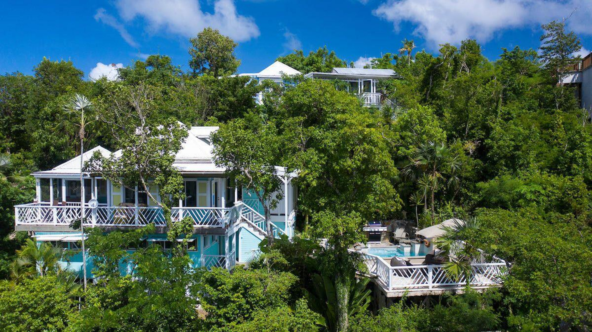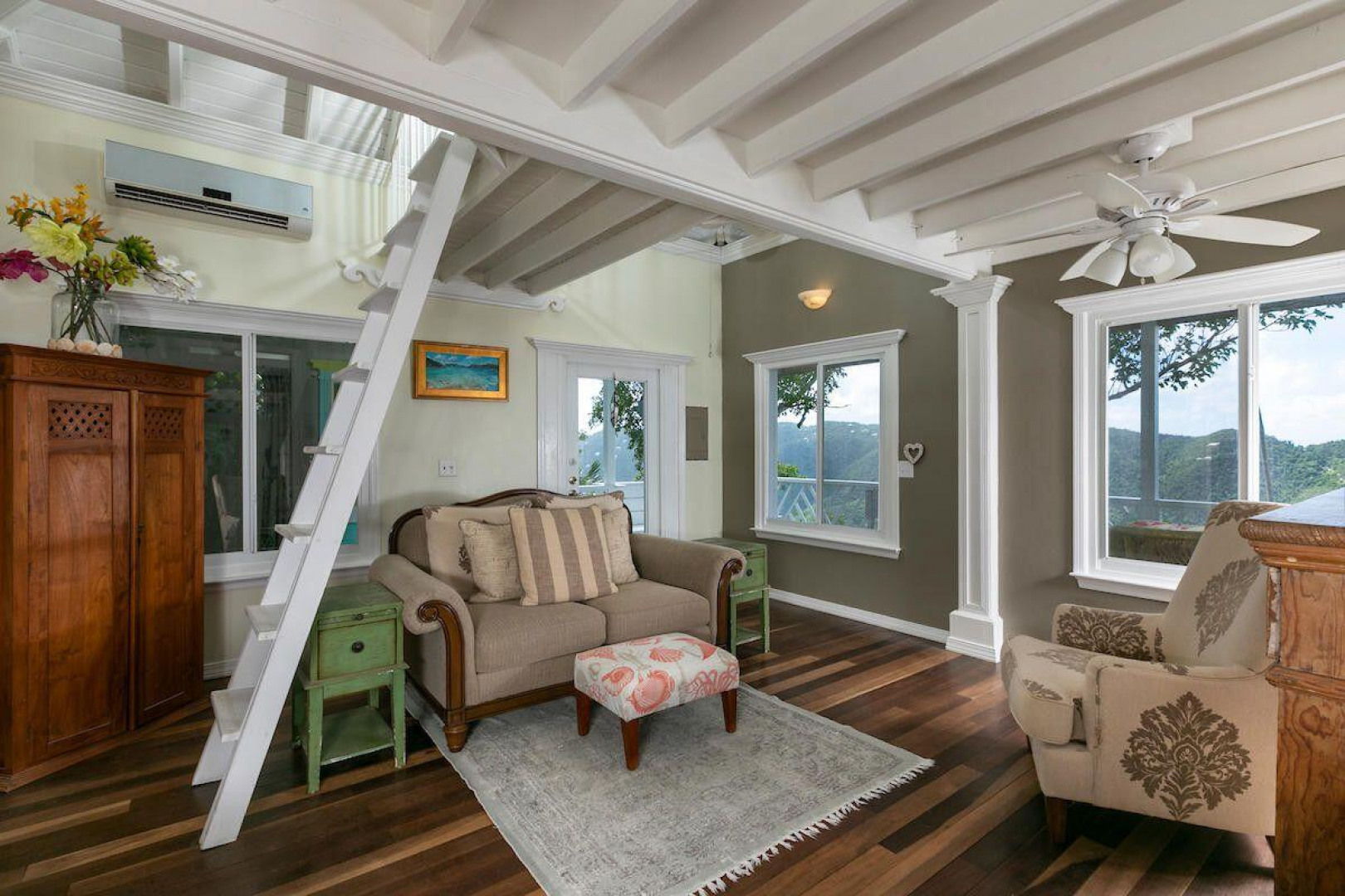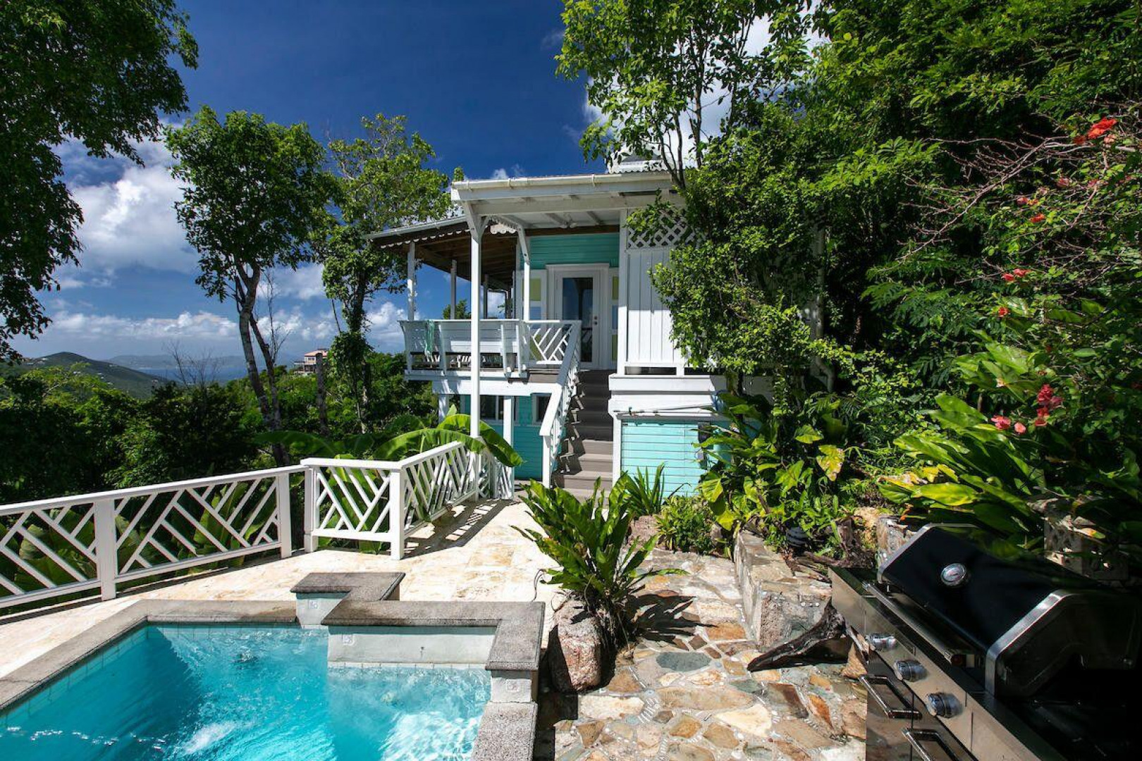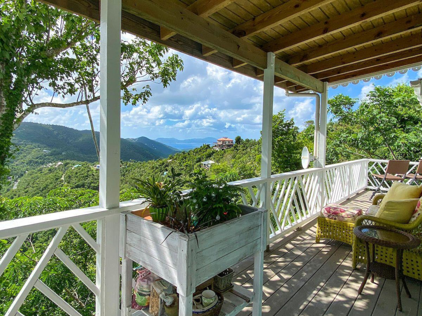 Aerie has so much to offer...Two separate units, borders National Park, prime Ajax Peak location, expansive sea views from Coral Bay sunrises to St. Thomas sunsets. Main house offers 2 bedrooms and 1.5baths , masonry pool and a/c throughout with strong short term rental history. Adjacent quaint and private air-conditioned cottage offering one bedroom and one bath is currently long term rented. Starlink or LCCN internet to choose from, new kitchen appliances in main house, solar + batteries and just minutes from North Shore beaches. Charming turnkey property with two units and flexibility to cater to your needs. Buyer to honorall confirmed rental reservations. Buyer and Seller to split stamp tax. Tenant lease expires 5.31 -