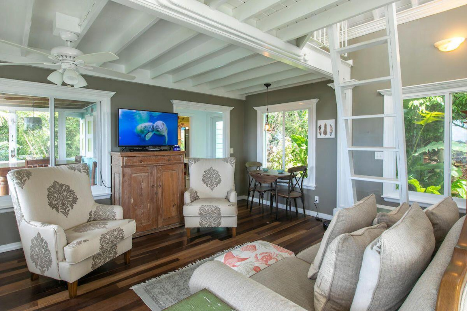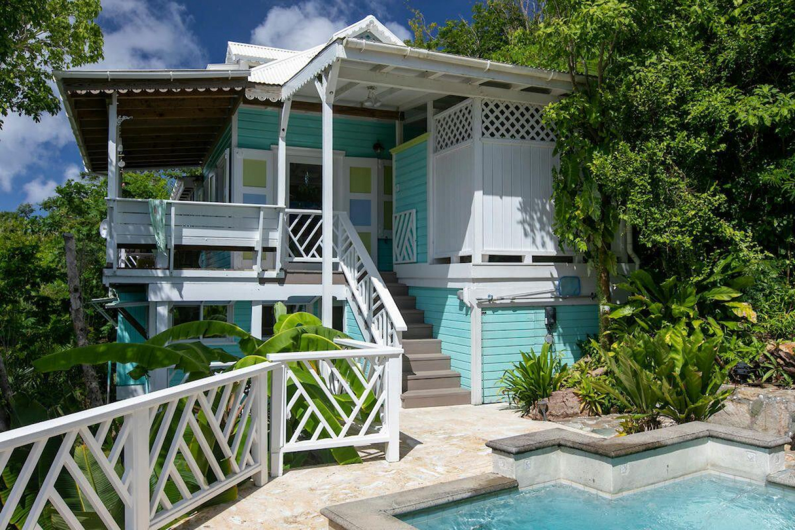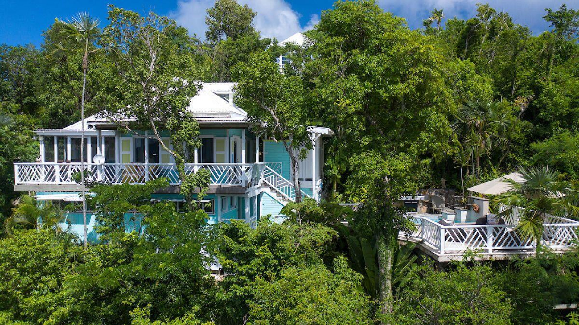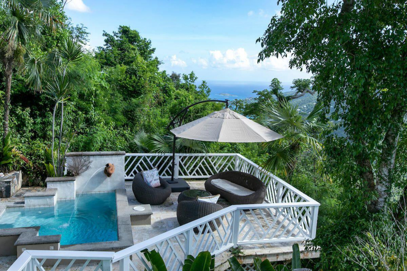 Aerie has so much to offer...Two separate units, borders National Park, prime Ajax Peak location, expansive sea views from Coral Bay sunrises to St. Thomas sunsets. Main house offers 2 bedrooms and 1.5baths , masonry pool and a/c throughout with strong short term rental history. Adjacent quaint and private air-conditioned cottage offering one bedroom and one bath is currently long term rented. Starlink or LCCN internet to choose from, new kitchen appliances in main house, solar + batteries and just minutes from North Shore beaches. Charming turnkey property with two units and flexibility to cater to your needs. Buyer to honorall confirmed rental reservations. Buyer and Seller to split stamp tax. Tenant lease expires 5.31 -