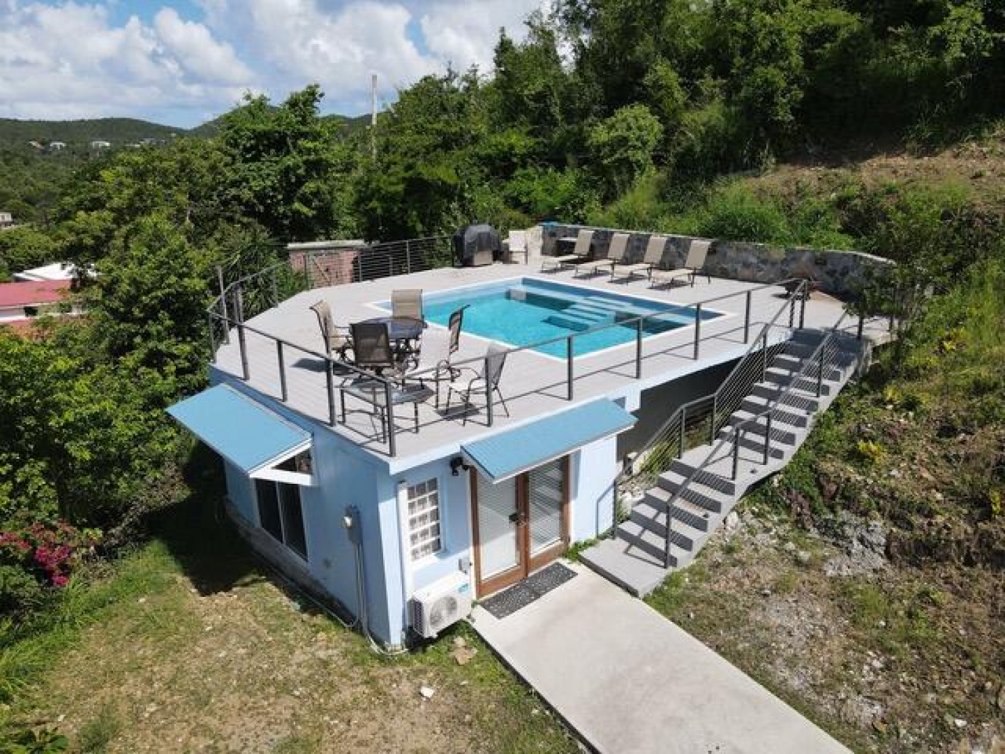 Multi unit property for sale. Main house consists of 2br/1ba unit on top 2 floors and 1br/1ba on lower level. Rooftop pool on the property with studio unit underneath, built as solid concrete and finished 2018. Sale to include architectural plans and approved building permits for 4 unit structure consisting of two 2br/2ba and two 1br/1ba with a common area rooftop kitchen. Total property is .54 acres, two parcels selling together, and zoning compliant for current units and new approved units to be built. Located Cruz Bay quarter Gifft Hill neighborhood with views to the west.Convenient to town and beaches. Property views are incredible panoramic ocean views including the islands of St Thomas, Little St James, and Great St James. There are also beautiful sunset views to the west. -