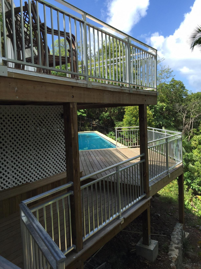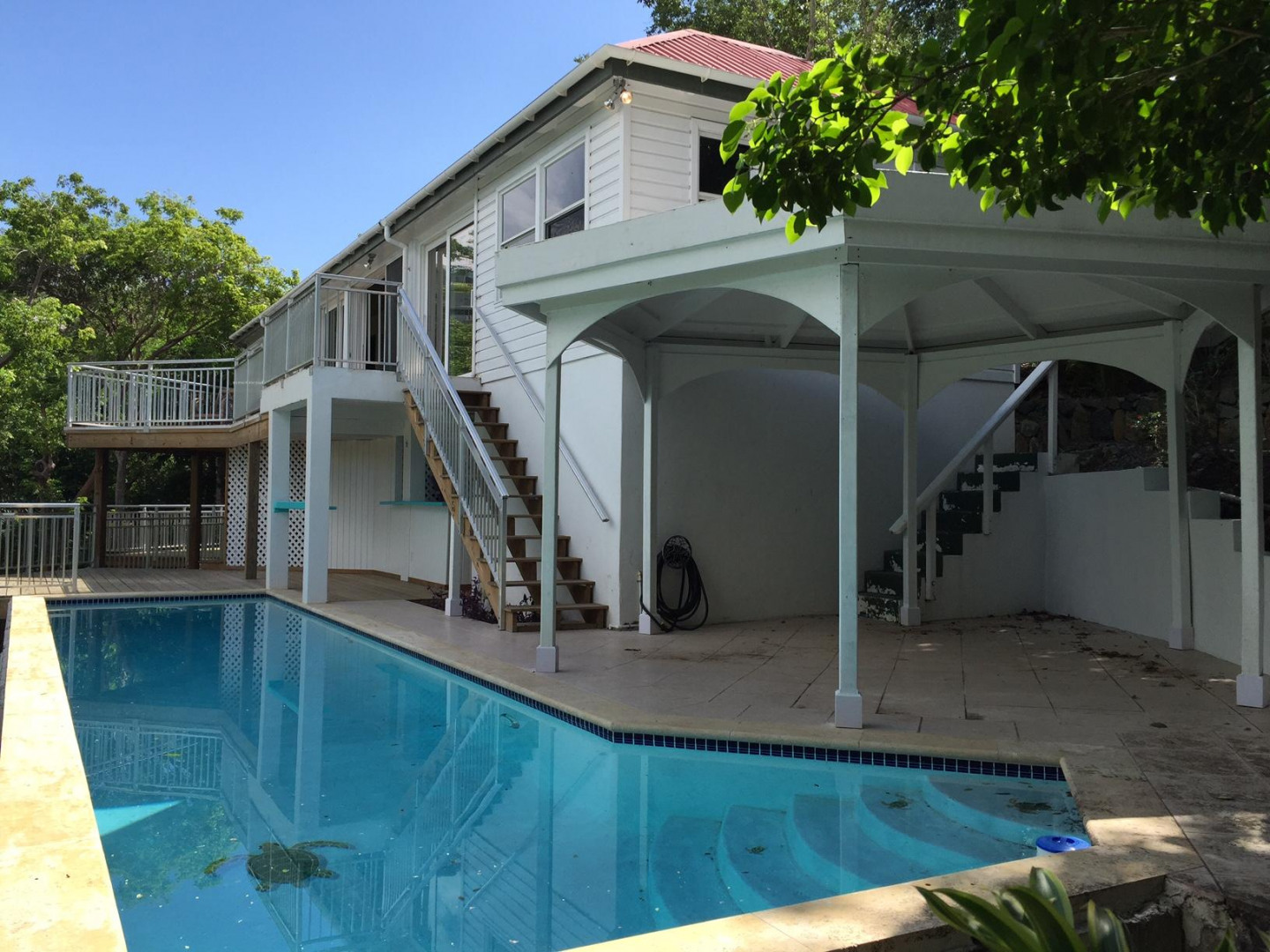 Located near Cruz Bay. This 3 bedroom 3 bath villa, complete with two outside showers, features a lap pool, ample deck space, and an outside blender-ready pool deck bar. The bonus loft area could function as an office or additional guest room. Recent upgrades make for a move in ready property ideal for the vacation rental market, or full time residency. See supplement for list of improvements. Access VR tour, via photos tab, for detailed walk-through of property.Repairs/Upgrades Upper deck-- Replaced durock, waterproofed, new tile Lower decks-- Replaced rotted wood decking New tile on pool deck by gazebo/pool Newly fabricated aluminum railings installed throughout Relocated stairs from upper deck to lower deck to better utilize lower deck space Mature landscape pruned, cleaned up, view opened New split AC units (3) installed in bedrooms Pool-- New plaster, tile and coping New pool pump installed and relocated for easy access. Replaced hardware on doors New dishwasher New cupola New hot water heater Repaired all plumbing fixtures with new cartridges, and replaced two upper toilets Outside shower wall(s) replaced with composite material for easy clean up Upgraded electric wiring New light fixtures throughout Painted interior walls, rafters and slats and varnished doors Private entrance to lower third bedroom, added native stone wall for erosion control All new First Alert smoke & fire alarms with 10-Year Sealed Batteries
