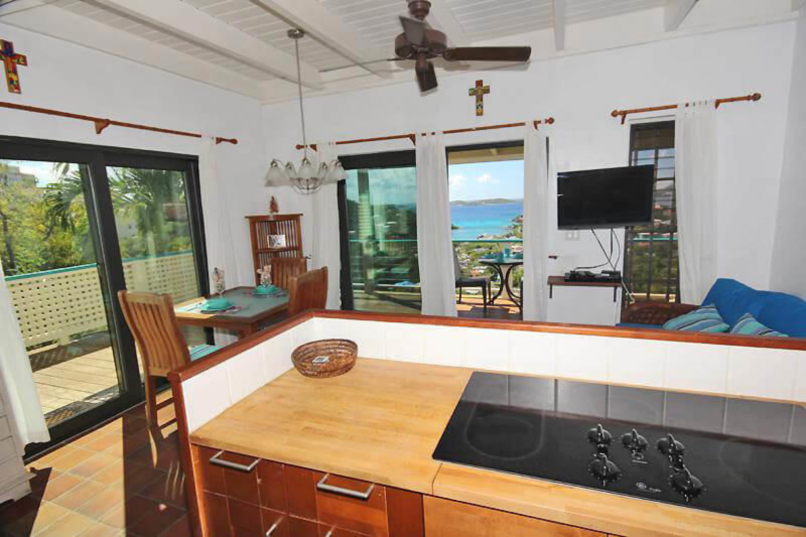 More About 15a Enighed #10, St. John, USVI, 00830Serentia @ Cruz Views Condo is a private 2 bedroom, 1 bath end unit with a spacious deck and beautiful sunset views overlooking STT and Pillsbury Sound. Meander by the common pool down a private staircase leading to an outdoor shower and the expansive deck. Privacy abounds as this corner unit is bordered by landscaping to the South and to the West. New large hurricane rated sliding glass doors on two walls make for a bright and airy great room. Newer kitchen cabinets and cozy furniture make for a very inviting space. Cruz Views is just a short drive or walk from Cruz Bay. Plenty of paved parking at this quaint complex with new roof.