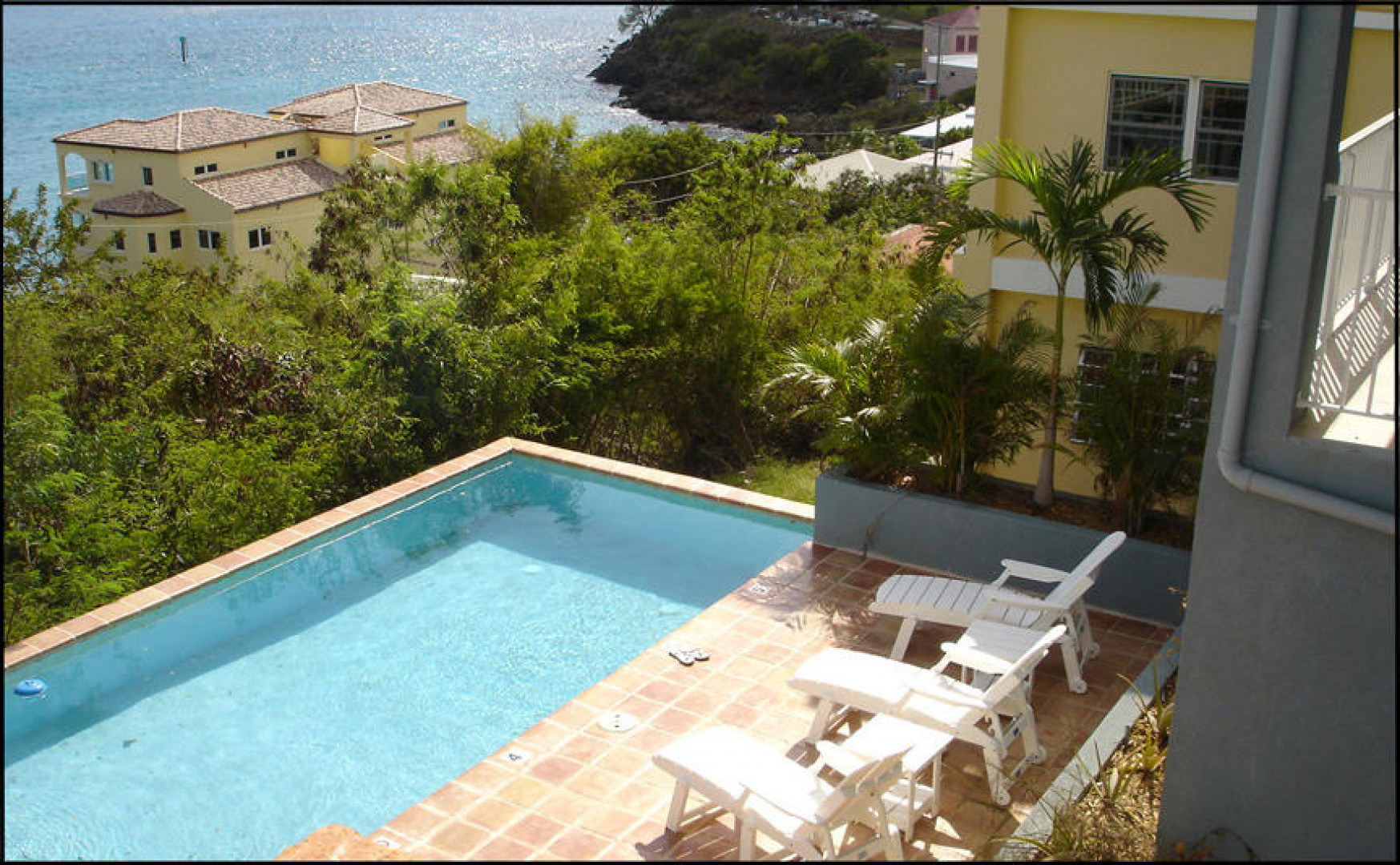 Beautiful Michael Milne designed Condos located in Cruz Bay. Spacious 3 bedroom penthouse unit, cathedral ceilings,private laundry room, walk to Frank Bay beach and town, breath taking water views and breezes, high quality appliances and appointments. Full time owner occupancy not discouraged. With just six units in two buildings each unit takes the entire floor of its building so no shared walls. Priced to sell at well below recent appraised value. Sold as is. -