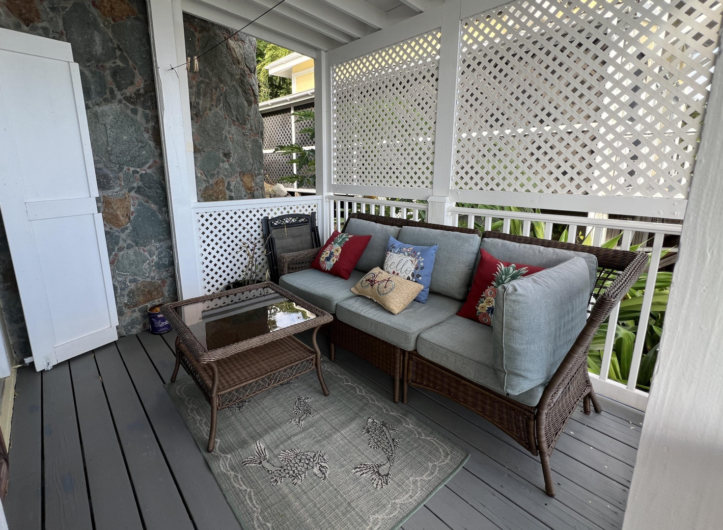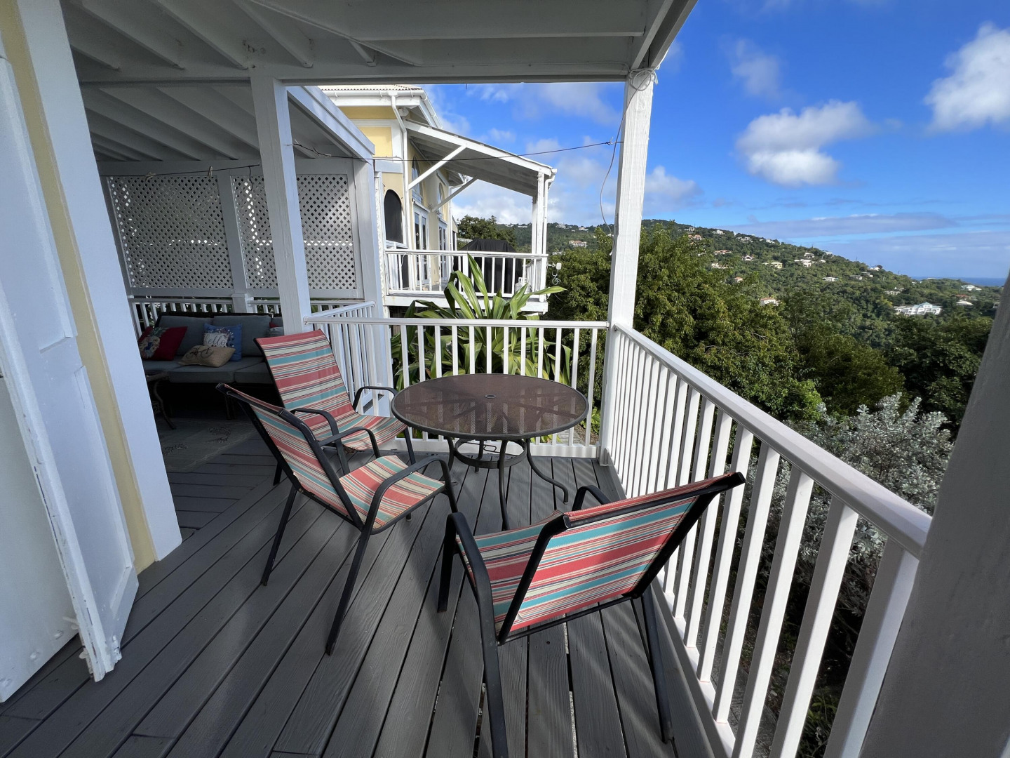 This lovely owner-occupied condo is a spotless two-bedroom, two-bathroom island home designed as a two-story living with a private outdoor dining deck overlooking beautiful view of the South Shore and Westin Resort. The main floor has the dining area, kitchen, living room with outside access, full bathroom, and a laundry. There are two bedrooms, a complete bathroom, and a sizable sun balcony upstairs. With year-round mild winds and the greatest views, it is perched high above Great Cruz Bay. only 5 minutes' drive from the center of town. Upper Deck Villas is a modest complex of 11 apartments with low HOA fees. -