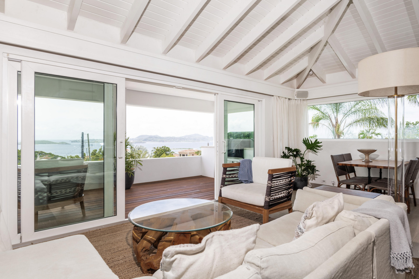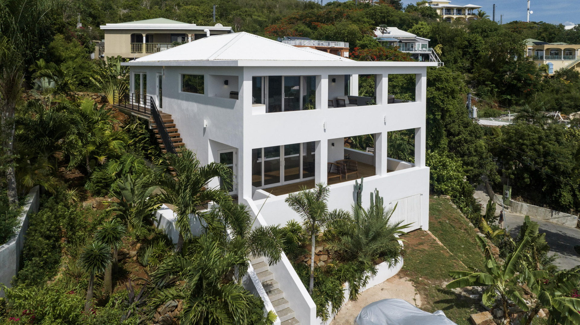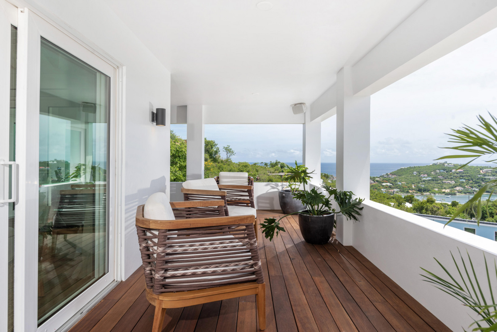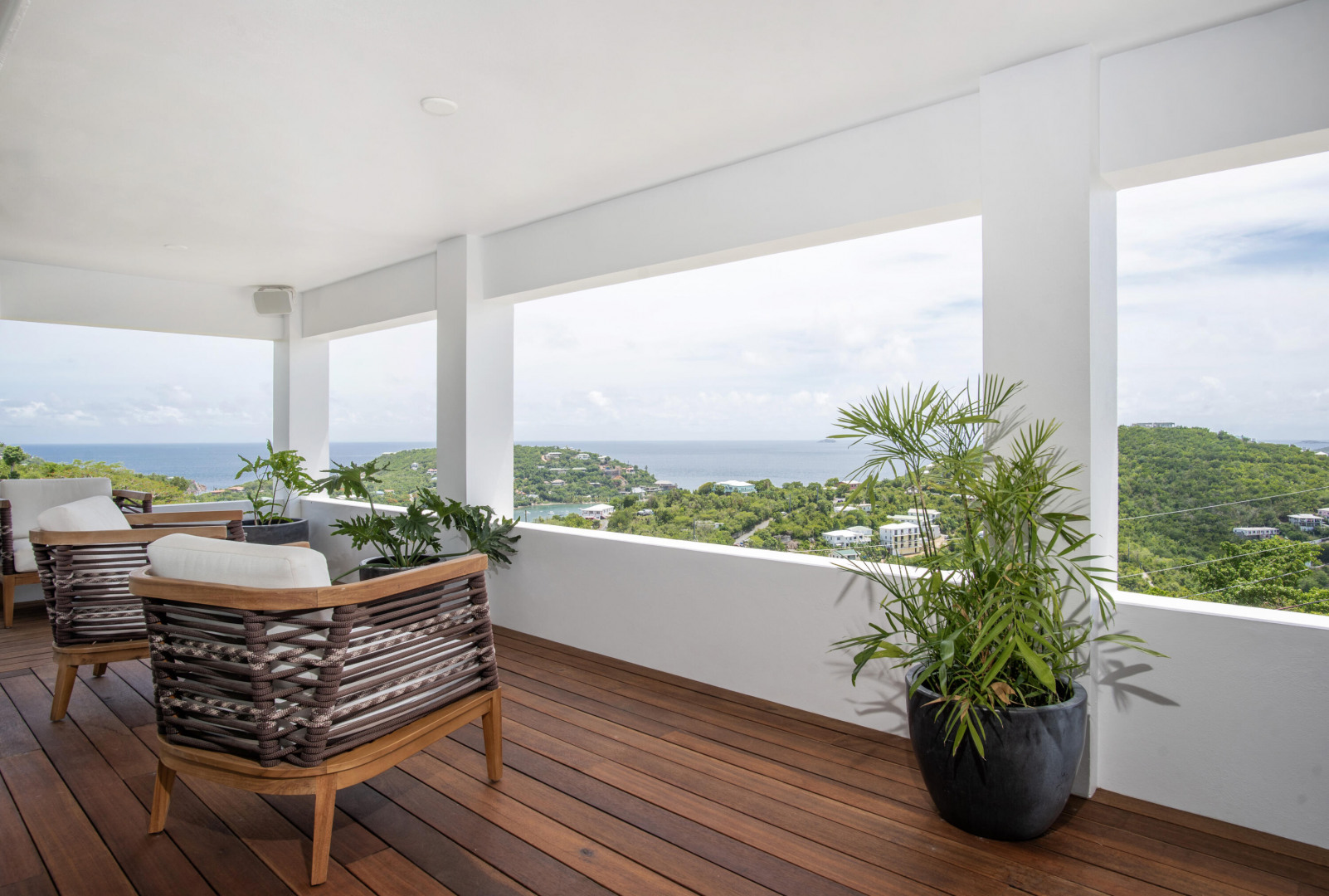 Escape to your refuge overlooking Cruz Bay with this newly reimagined villa offering an unparalleled blend of comfort, beauty, and location - making it the perfect retreat for those seeking a convenient yet tranquil Caribbean getaway. Boasting a flexible two-level design, the open plan two bedroom/two bath main floor can be enjoyed in tandem with or separate from the self-sufficient lower-level studio unit. Both levels offer classic wrap around porches framing panoramic western views featuring nightly sunsets over Pillsbury Sound, St. Thomas and numerous outlying cays. -