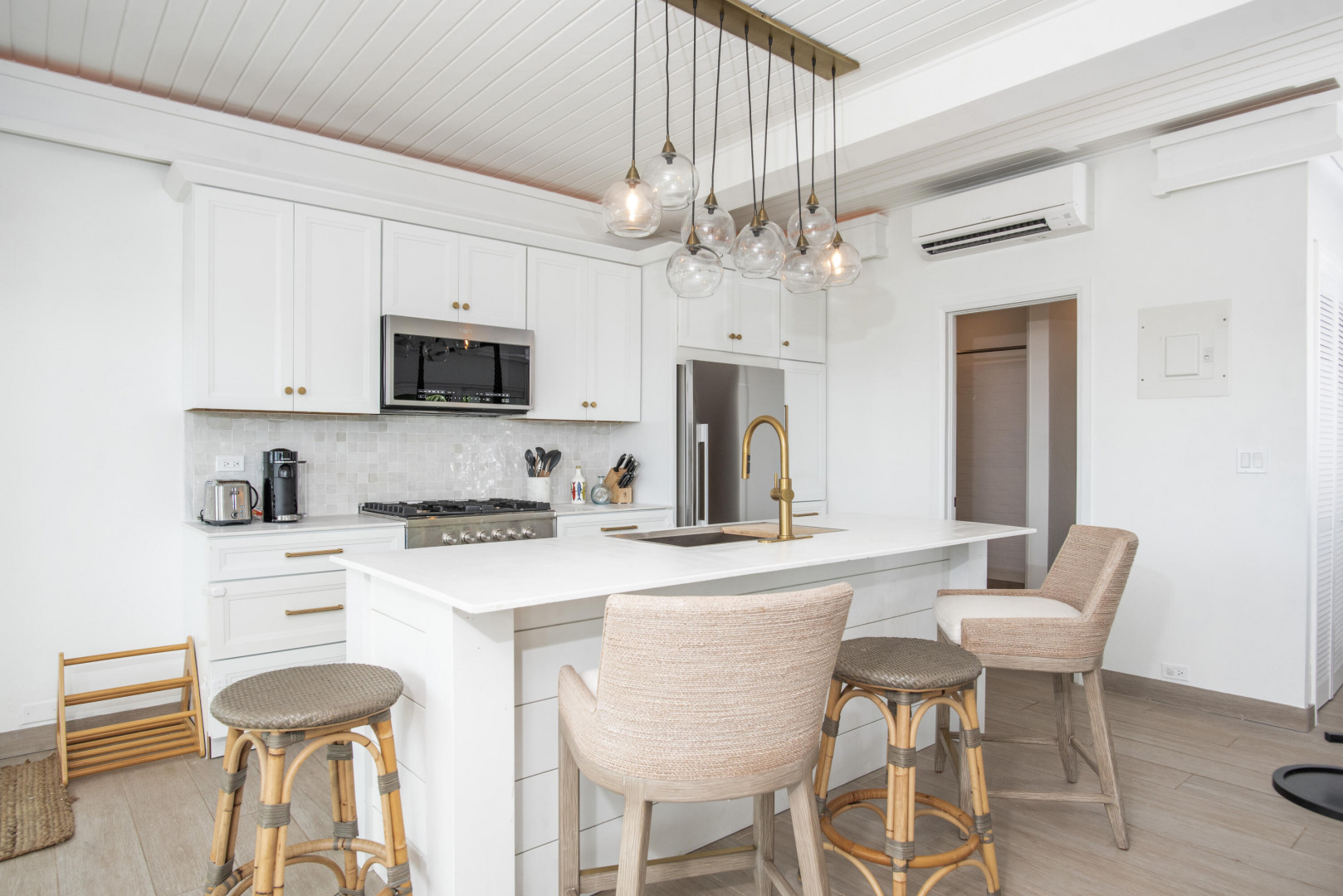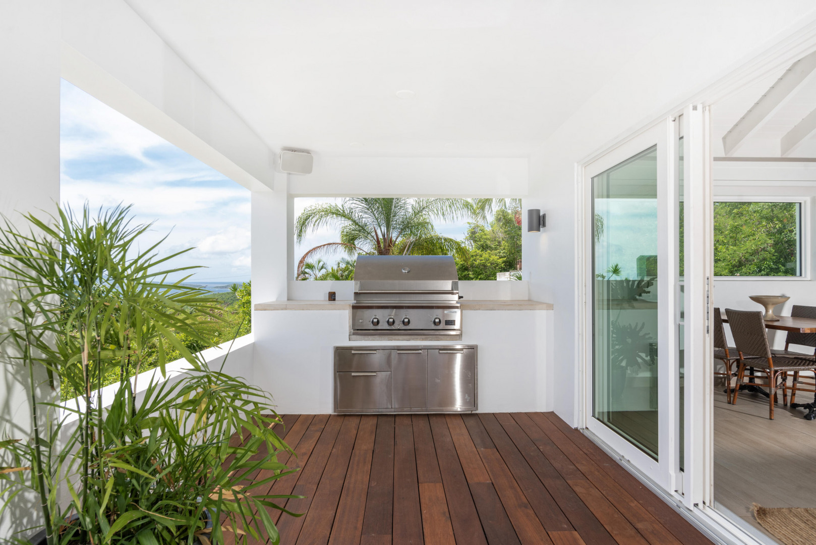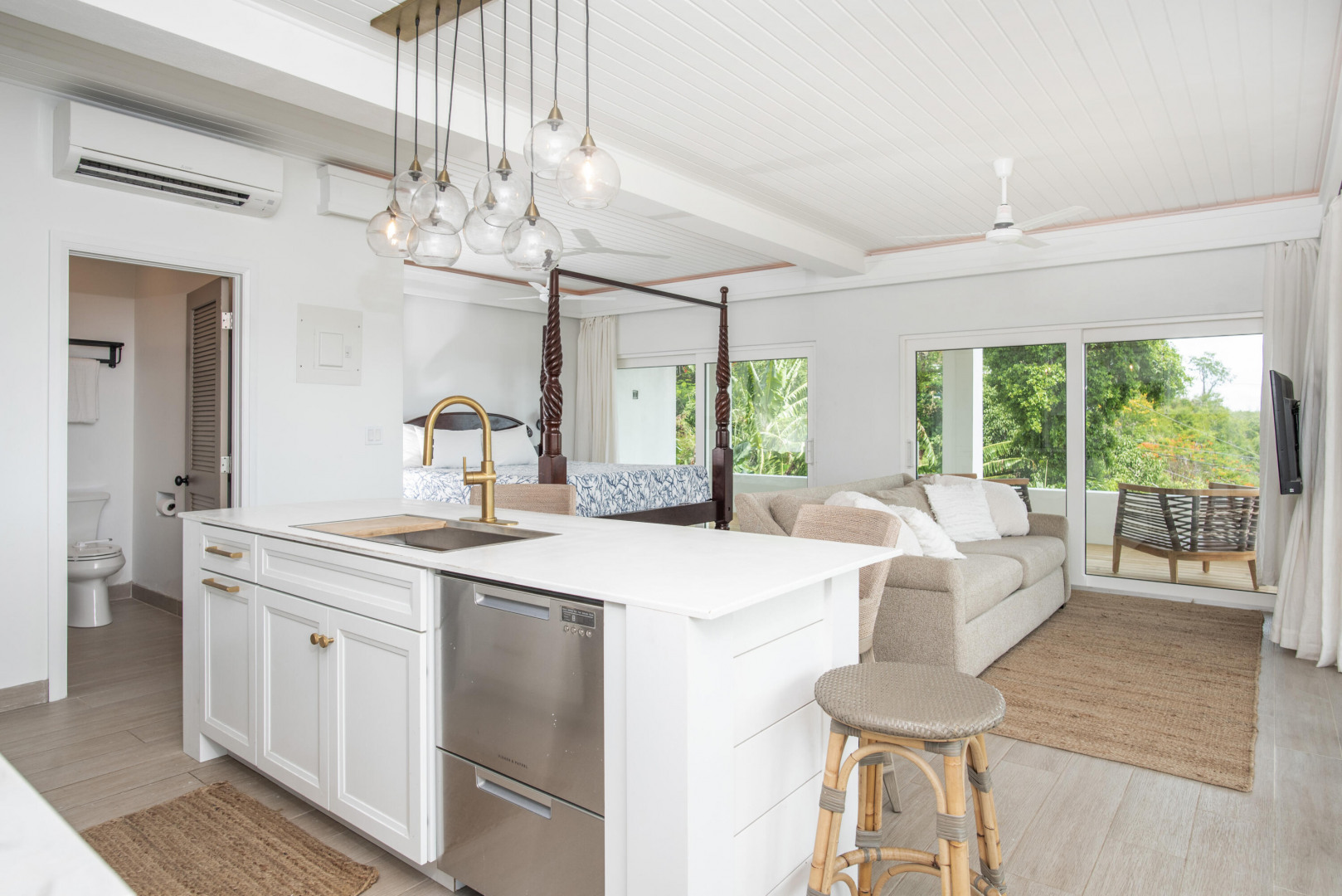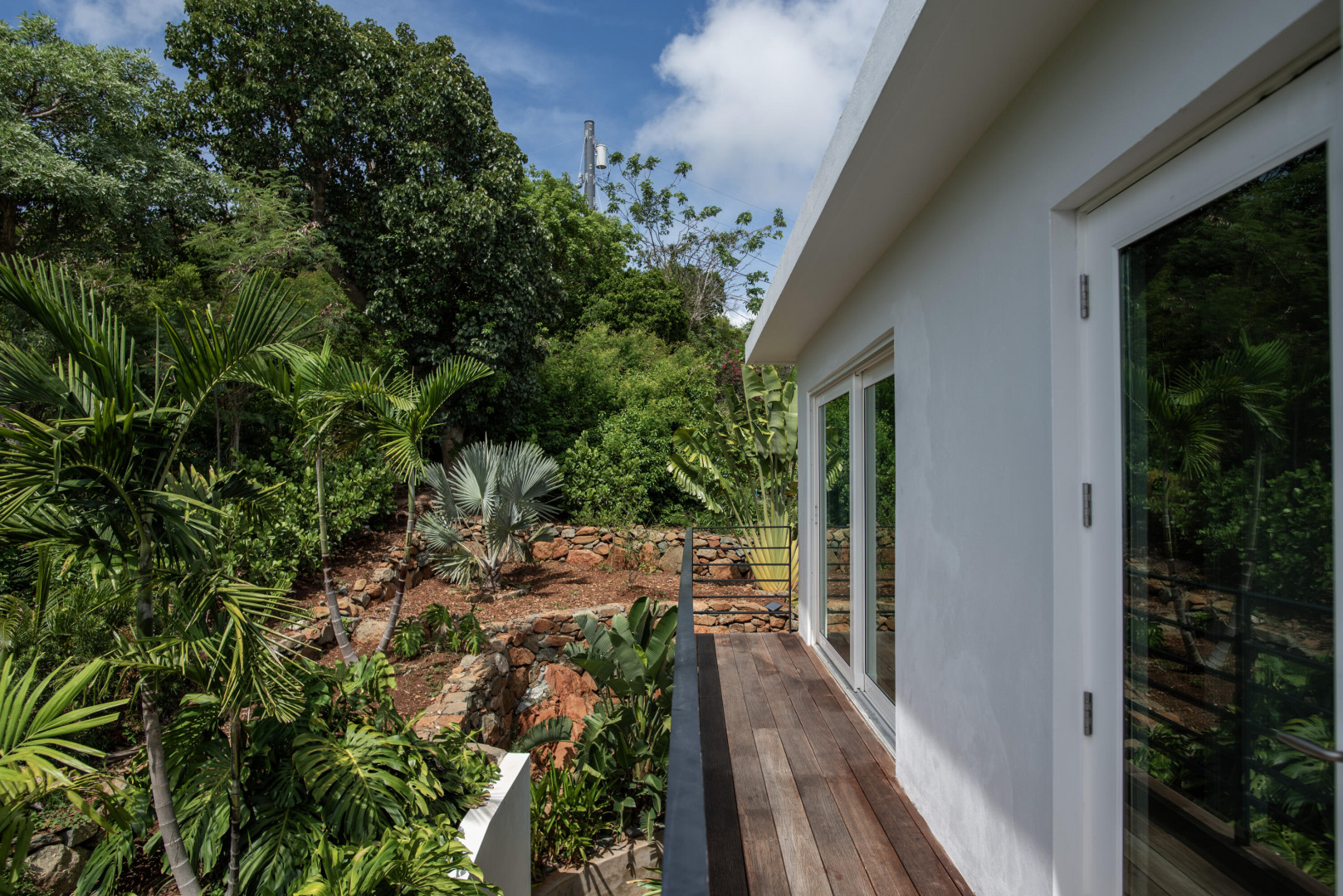Escape to your refuge overlooking Cruz Bay with this newly reimagined villa offering an unparalleled blend of comfort, beauty, and location - making it the perfect retreat for those seeking a convenient yet tranquil Caribbean getaway. Boasting a flexible two-level design, the open plan two bedroom/two bath main floor can be enjoyed in tandem with or separate from the self-sufficient lower-level studio unit. Both levels offer classic wrap around porches framing panoramic western views featuring nightly sunsets over Pillsbury Sound, St. Thomas and numerous outlying cays. -