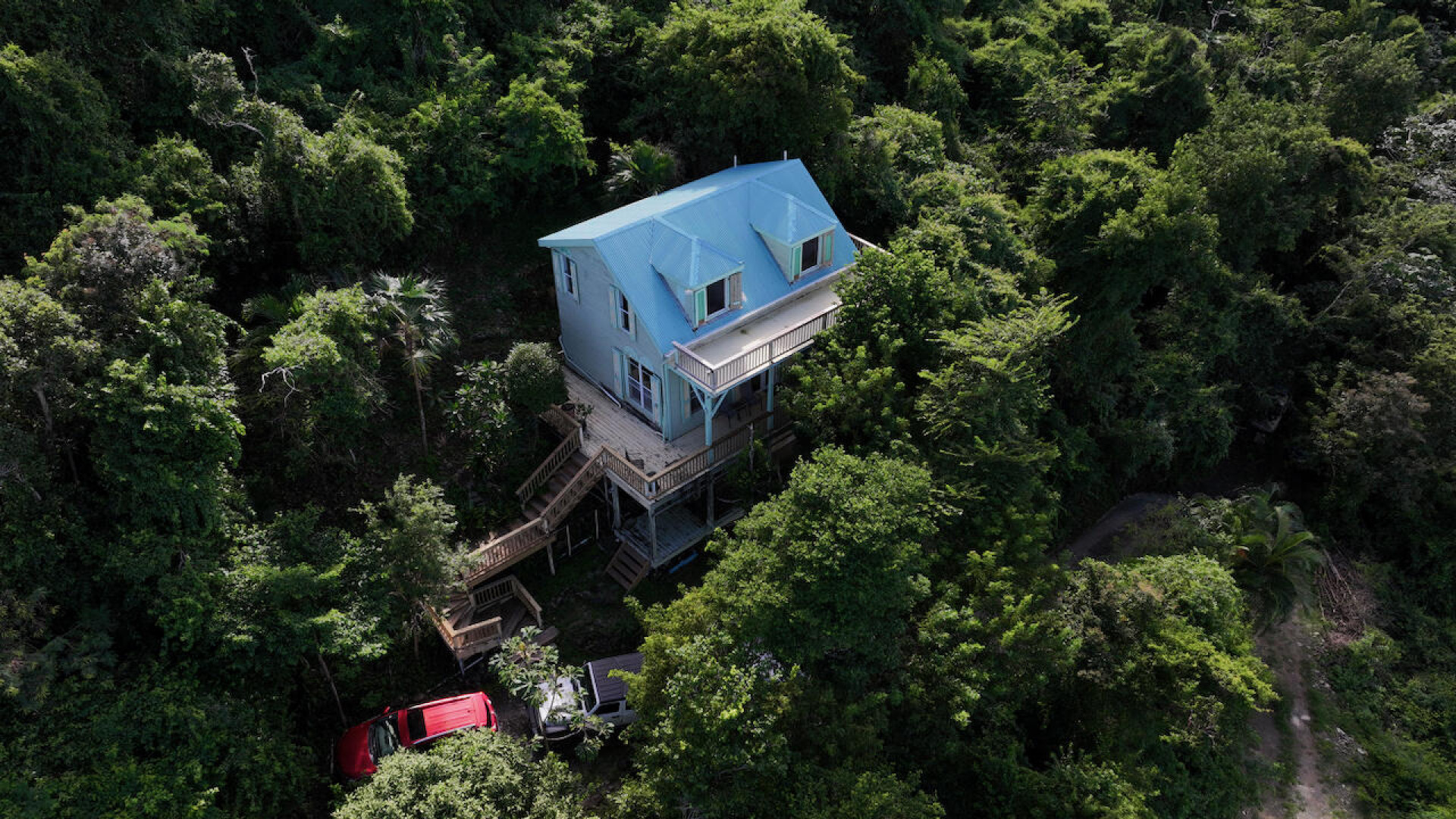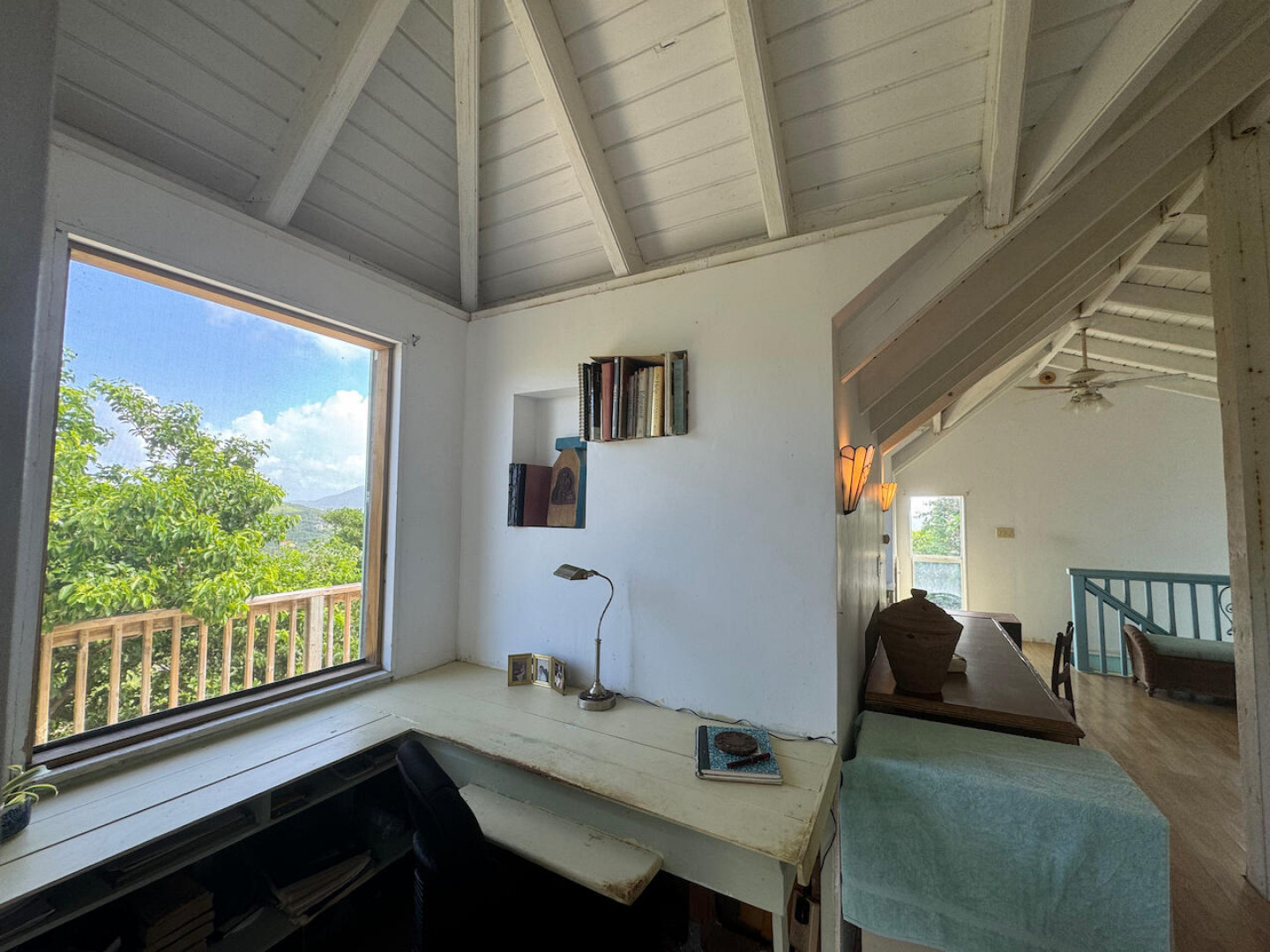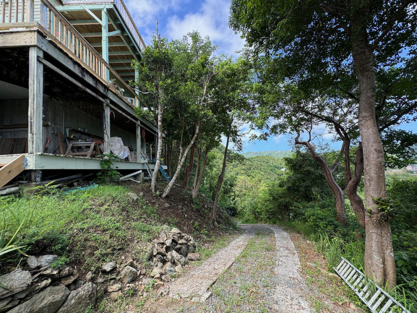 Wanted: Full coat of paint and a little love to make this charming cottage your own! Owner built and occupied since 1999, and now a perfect first home or dreamy retirement retreat. Lots of breeze, greenery, and natural light surrounding. Two built-in work nooks, with views makes this ideal for remote working too! Mixed materials of concrete cisterns/foundation and wood frame. Original construction documents and photos available. This very private spot is at the end of the road, nestled into the trees with Coral Bay and down island views to the north east. Buyers will need to embrace the adventurous road; yet only minutes from restaurants, shopping and groceries.