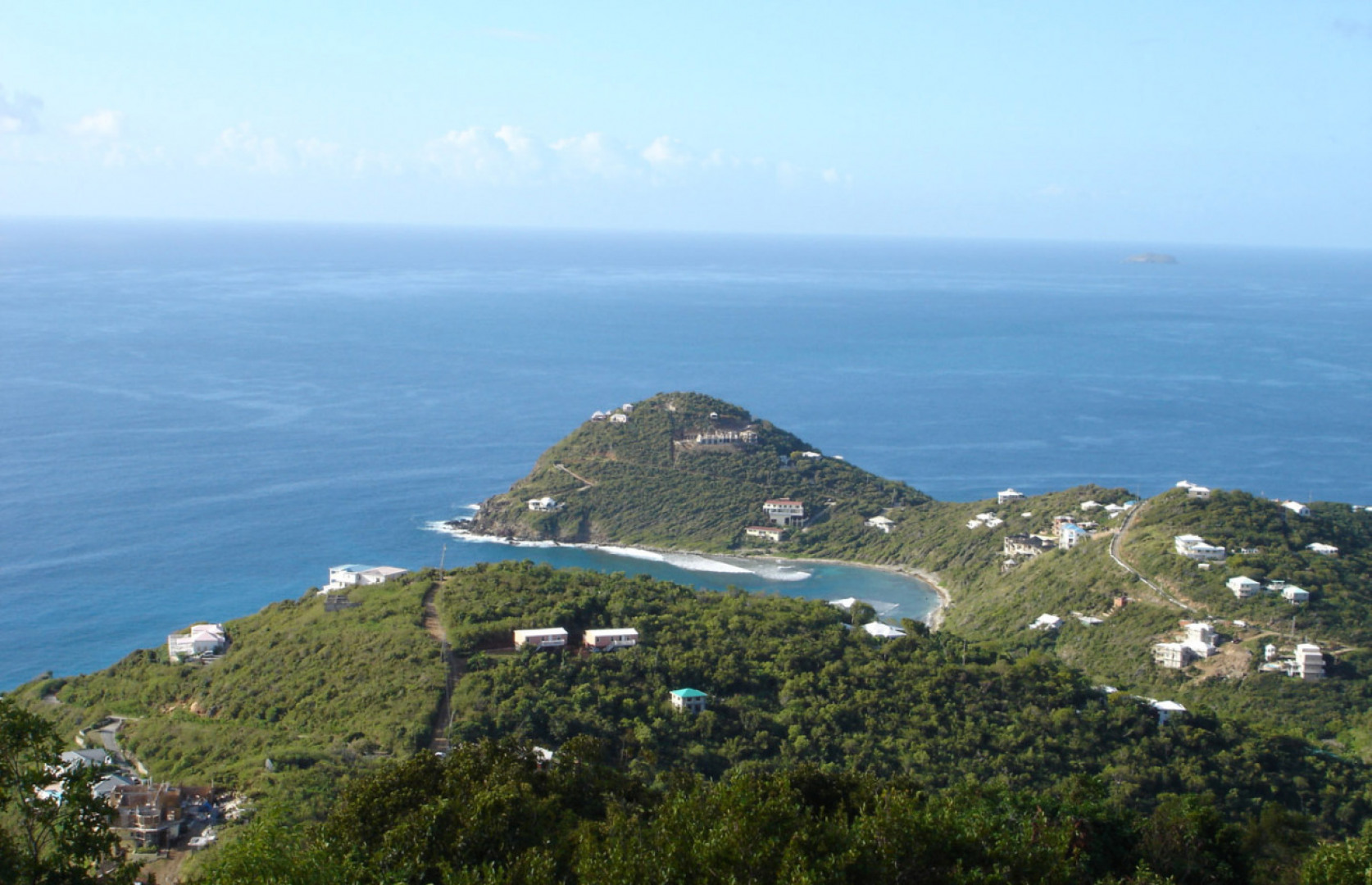 Terrific views high over Rendezvous Bay and south to St. Croix and west to St. Thomas. This large lot has big trees, a 500' elevation, gorgeous sunsets,cool breezes and easy access. -