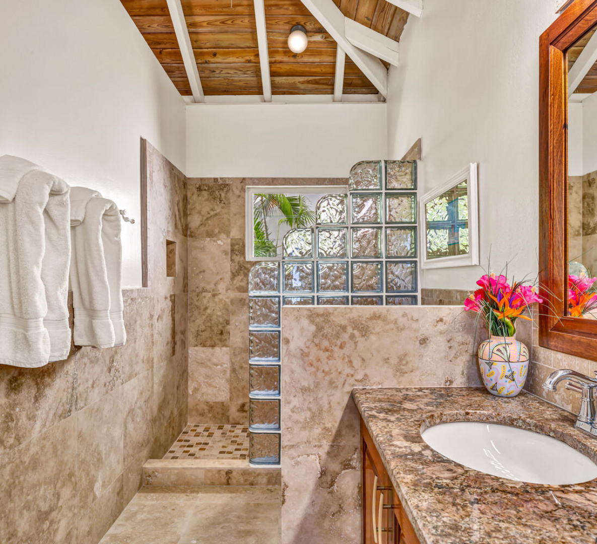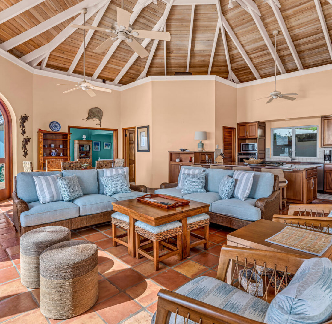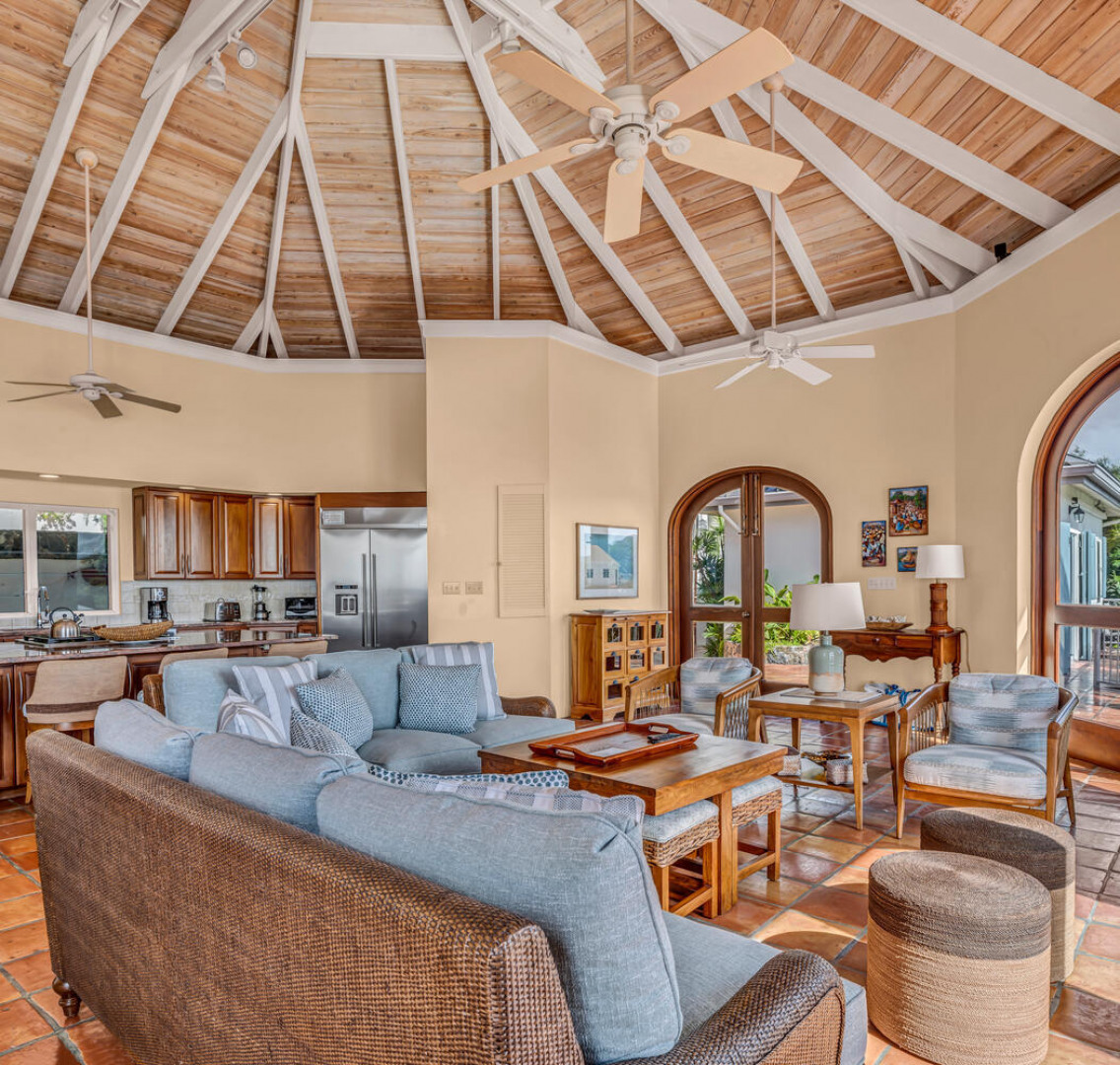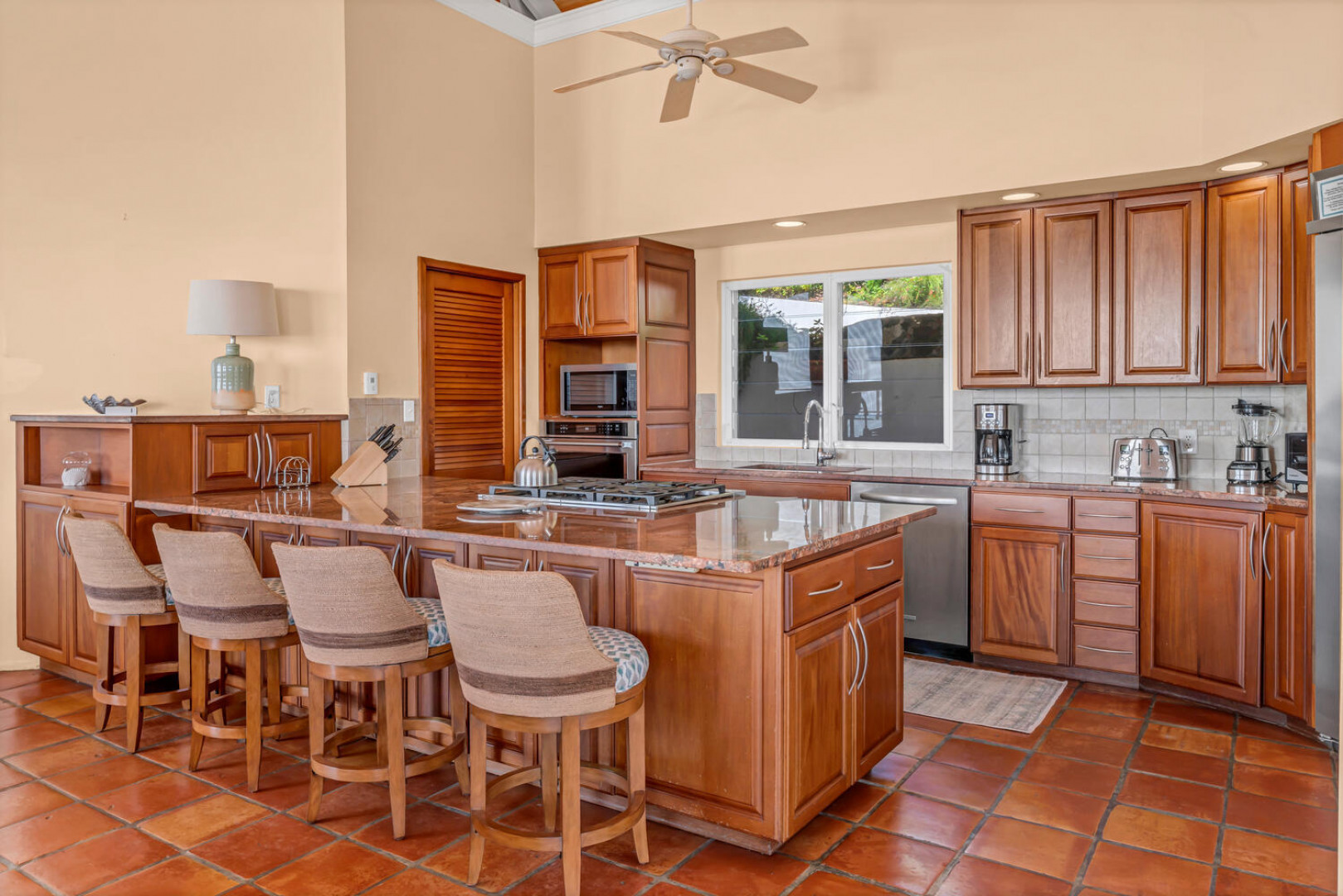 Located in the exclusive Estate Rendezvous neighborhood, Villa Panache enjoys peaceful, private surroundings and is also just a short drive from Cruz Bay and the world-renowned North Shore beaches. With a well-equipped gourmet kitchen, elegantly furnished living areas, and expansive decks complete with a dining gazebo and a large pool overlooking the sea, Villa Panache has everything you could ask for. -