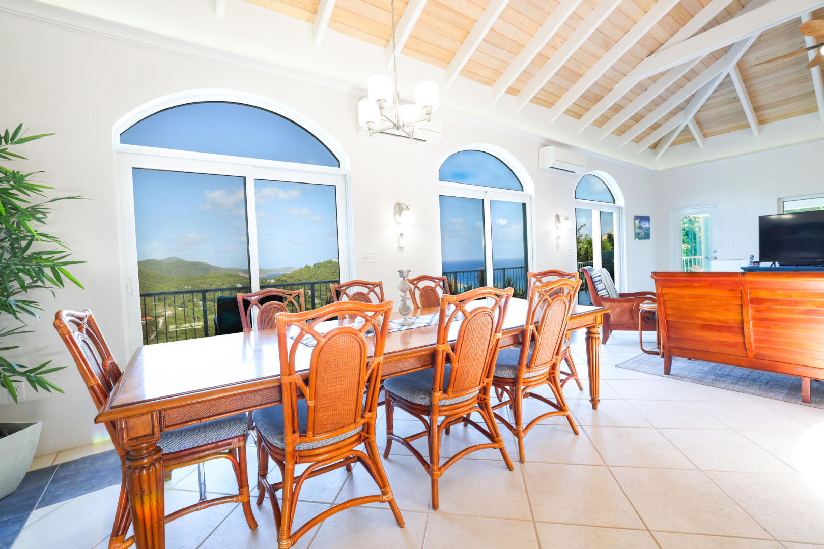 Settled above St. John's south shore, Southern Breeze captures breathtaking views of turquoise bays, the vast Caribbean horizon, and lush emerald hills. Just minutes from Cruz Bay, this exquisite retreat offers unparalleled tranquility where the rhythmic surf, cooling trade winds, and evening symphony of tree frogs create a truly serene escape. Designed for both comfort and elegance, the villa features a private pool, expansive sun deck, gourmet kitchen, and four air-conditioned ensuite bedrooms. With easy access to pristine beaches and scenic trails, Southern Breeze is an invitation to experience the finest in island living. -