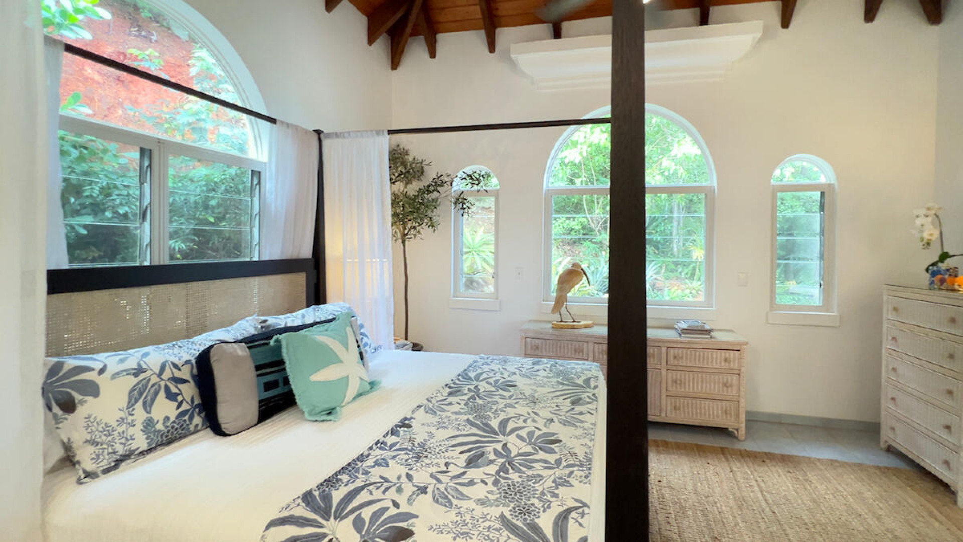 PRICE REDUCED WITH OWNER FINANCING OFFERED! Harbor Sights is a beautifully furnished villa located in the highly sought after Great Cruz Bay neighborhood. Enjoy the panoramic views of Great Cruz Bay Harbor, colorful sunsets and the twinkling lights of St. Thomas . The villa consists of five bedrooms, a loft, a fully equipped modern kitchen and large great room, all featuring cathedral ceilings, air conditioning, and floor to ceiling PGT Stormguard windows. A spacious one bedroom apartment is situated on the lower level. Further amenities include lush tropical landscaping, stunning native stone walls, net metering, fabric hurricane shutters and soon to be granted pool permit. Boaters will enjoy access to the dingy dock and landing which are a deeded right. Adjacent lot is for sale too -