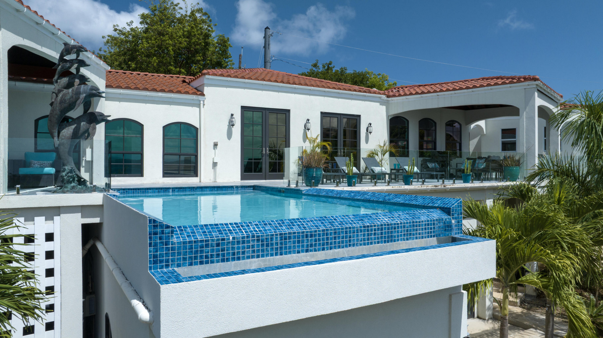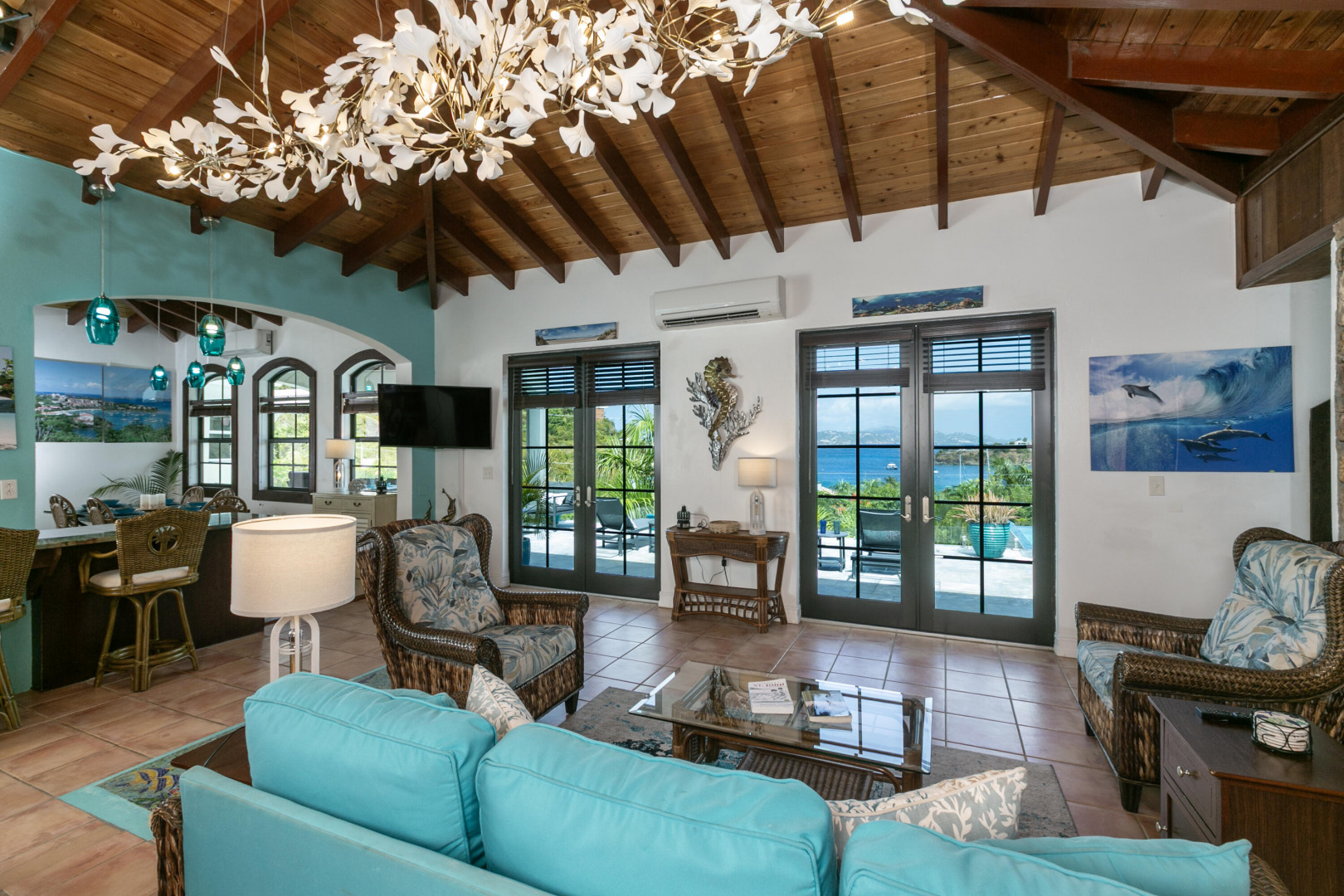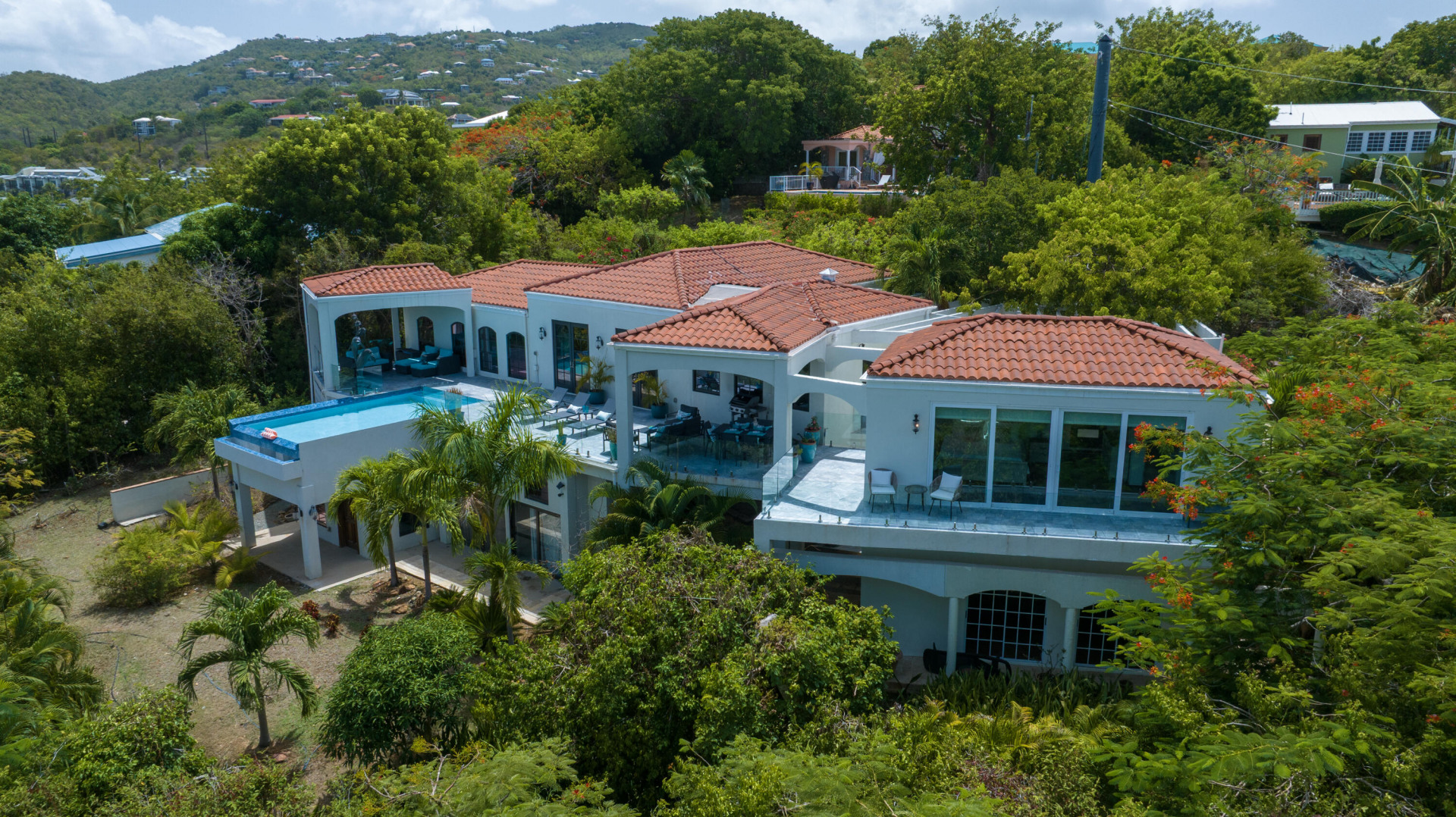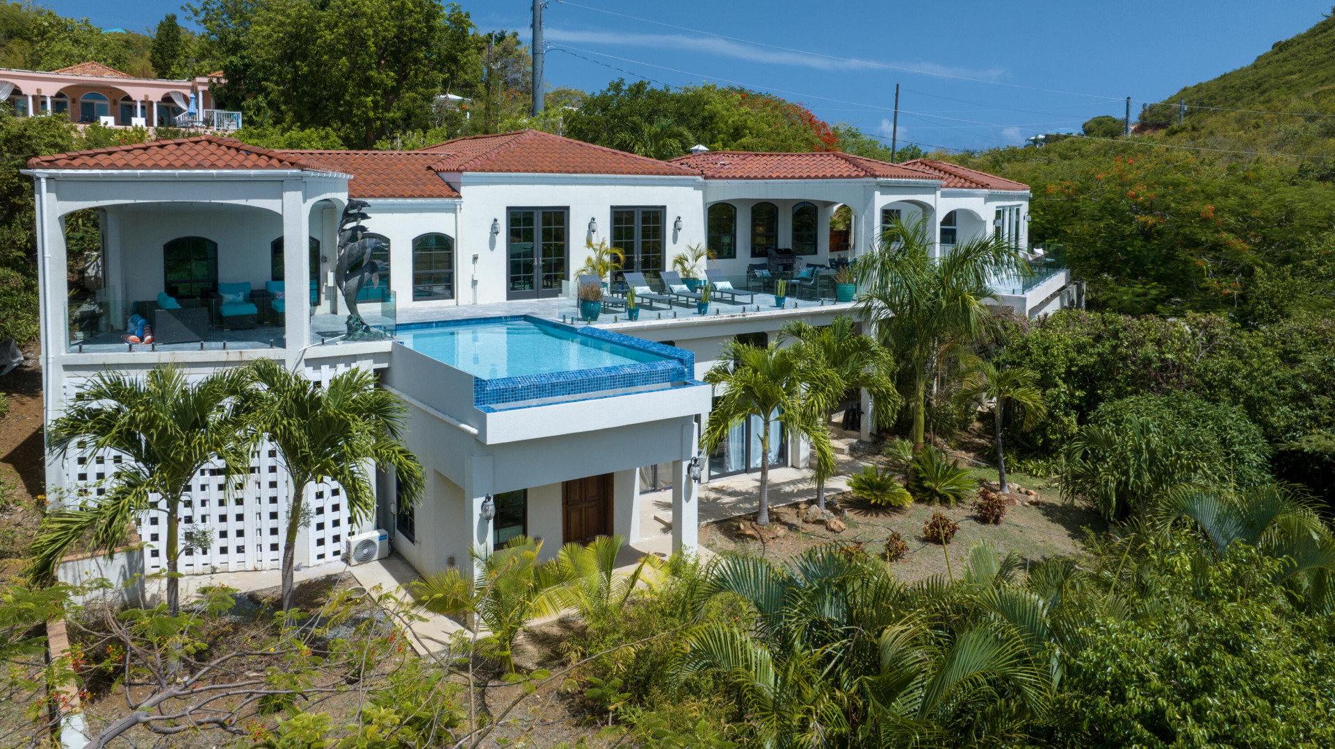 Perched on the ridge between Great Cruz Bay and Chocolate Hole, Blue Dolphin Villa is a stunning blend of modern elegance and Caribbean charm. Now expanded with over 1,000 sq ft of additional living space, the villa features a brand new primary suite, a private gym, and a playroom, enhancing both luxury and versatility. The pool deck, with its sleek glass railings, showcases sweeping views of Great Cruz Bay, while lush gardens, grand arches, and a covered pavilion create a serene outdoor retreat. Inside, the updated kitchen, charming stonework, and inviting bedrooms, make this home as comfortable as it is beautiful. With thoughtful upgrades and endless potential, Blue Dolphin Villa is a true island gem. SELLER FINANCING AVAILABLE -
