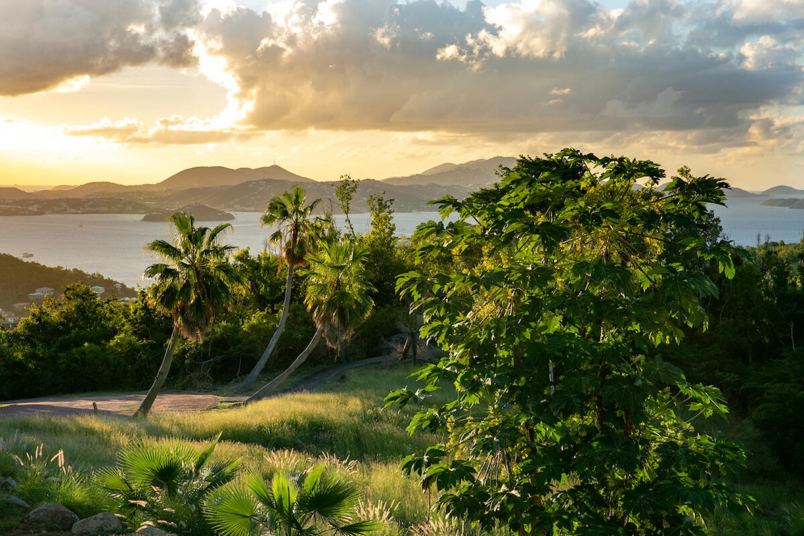A stunning, oversized lot in Virgin Grand Estates with panoramic sunset views over the Caribbean Sea. This gently sloping 0.69 acre parcel offers rare dual access from both the upper and lower estate roads, providing flexibility for site planning and construction. Partially cleared and ready to build, the lot features underground utilities already in place and easy access for development. Located in one of St John's premier neighborhoods - quiet, upscale, and just minutes to Cruz Bay and North Shore beaches. The neighboring luxury home is also available for $2.9M. An excellent opportunity to expand your estate or develop a complementary property. -