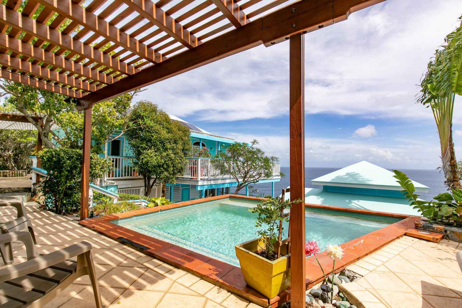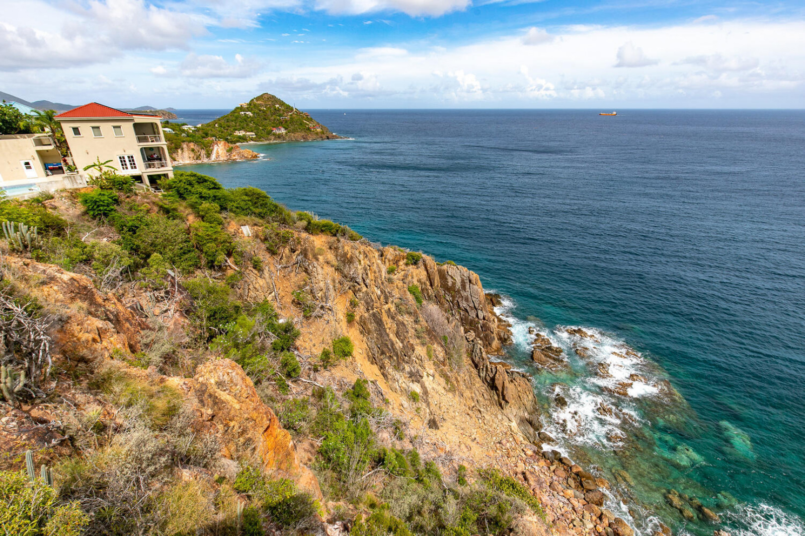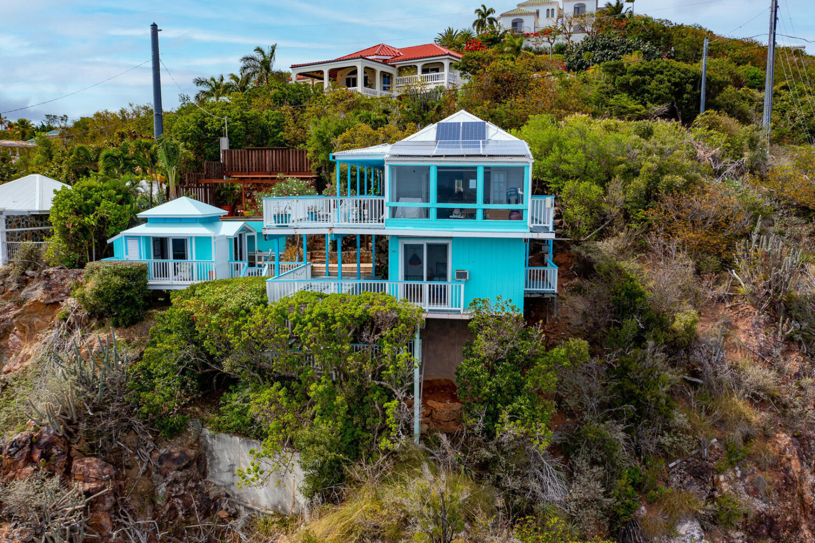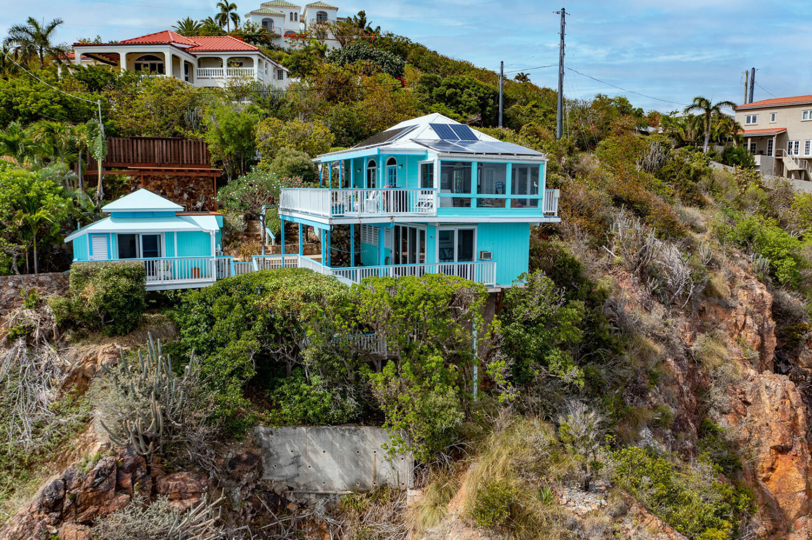 Live the Caribbean dream in this WATERFRONT 2 bedroom bungalow, Beyond the Sea. Featuring stunning panoramic views and a dramatic cliff-side location this home oozes peace and tranquility. With lots of deck space and a dipping pool this is the perfect indoor/outdoor island living lifestyle. This near an acre site is ideal for someone looking to build their dream waterside home. Net metering with 35 solar panels in place. Buyer to verify square footage. -