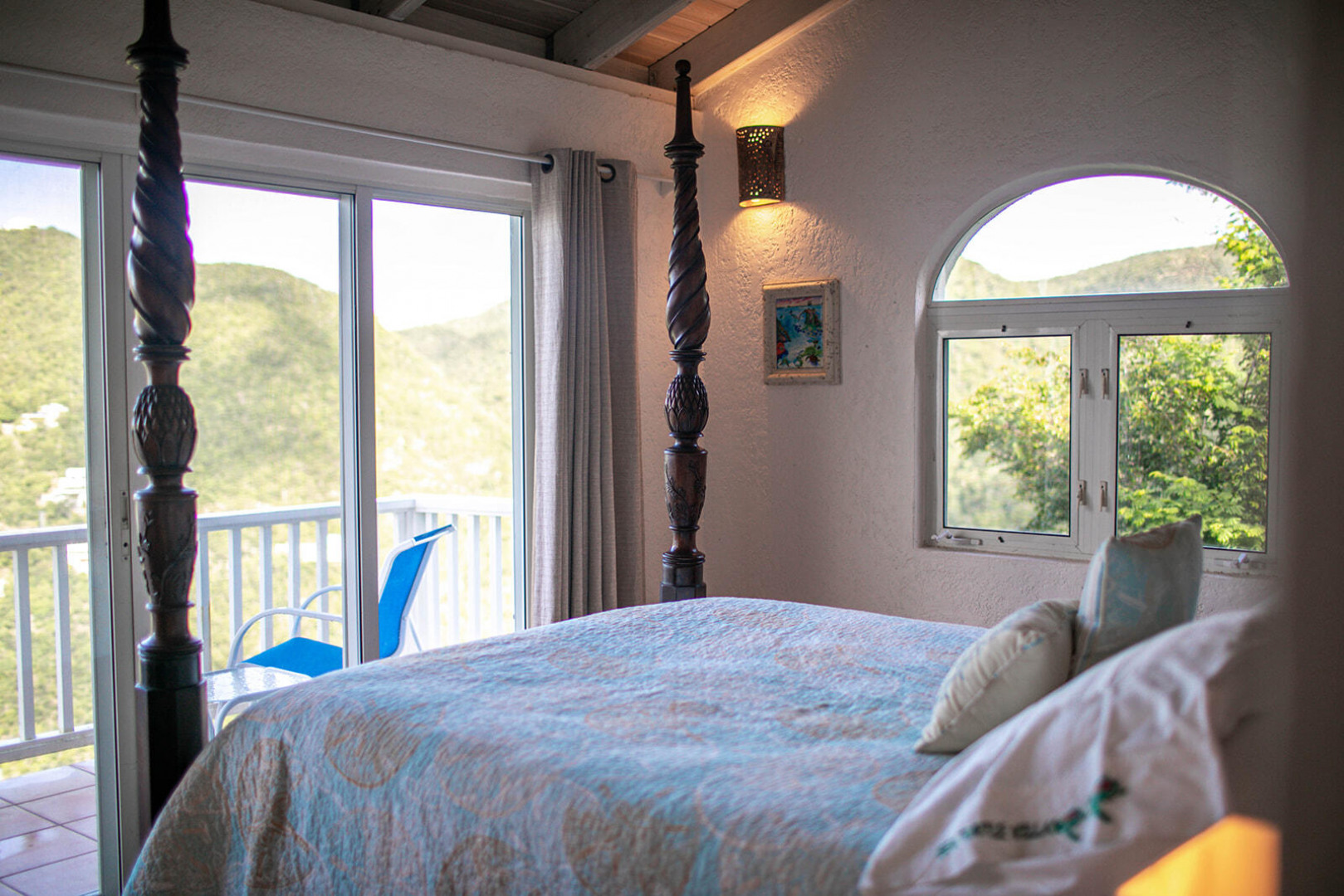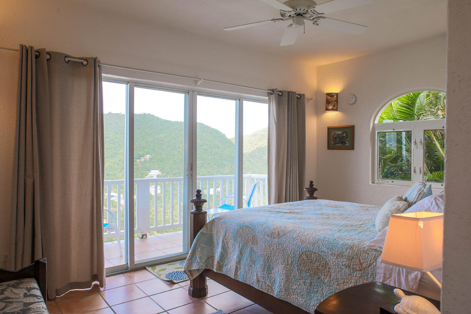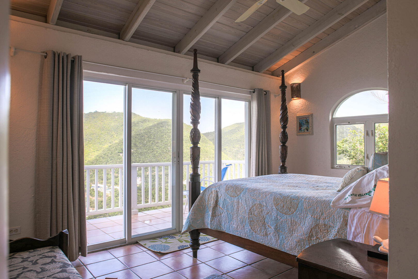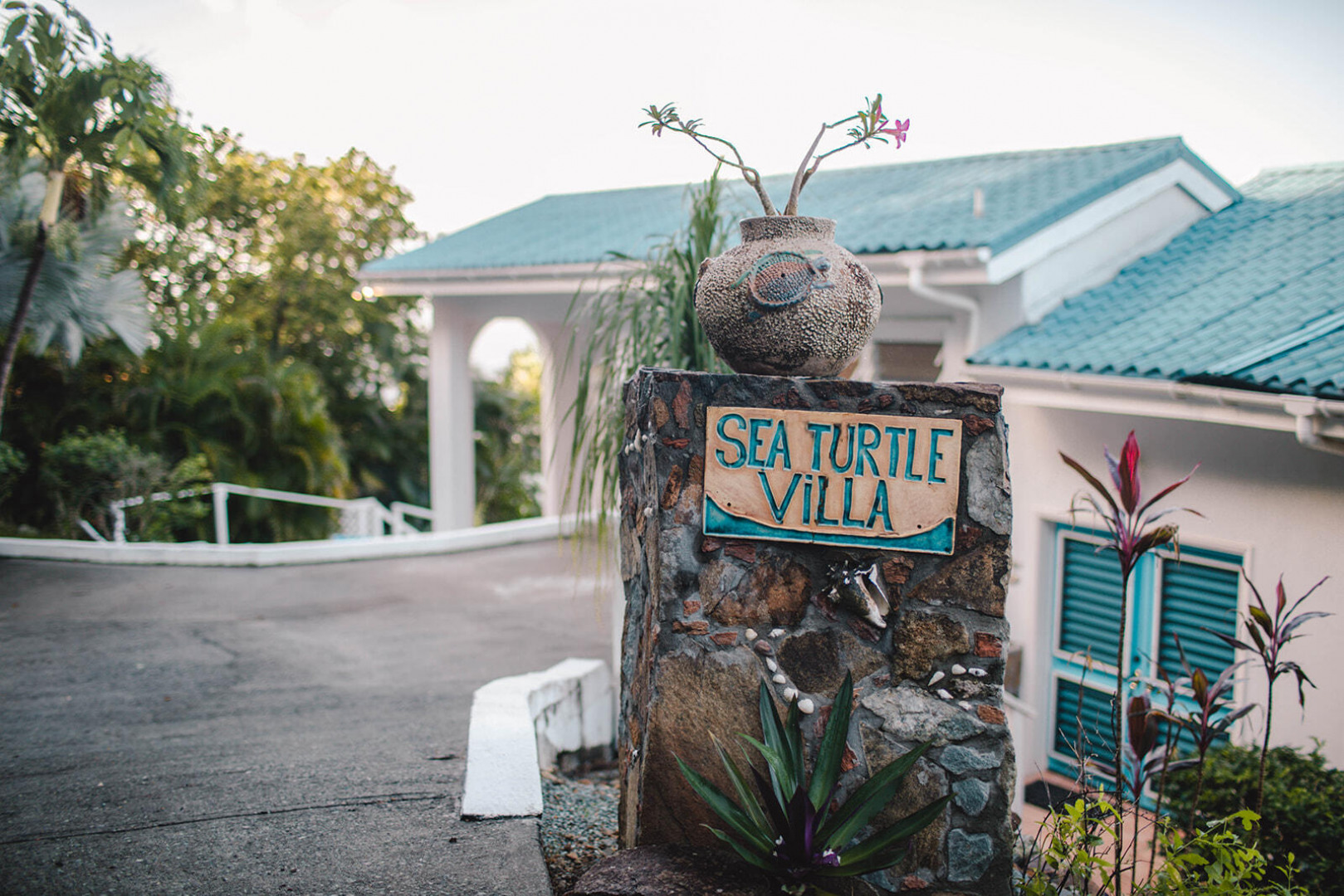 Sea Turtle Villa is a lush tropical escape perched on a hill in Fish Bay. Water views from every angle This gorgeous Virgin Islands Style home features Solar Net Metering, successful rental history, vaulted ceilings, large living area, and the perfect private location at the end of the road in Fish Bay. The home features 2 bedrooms, 3 bathrooms and 2 extra bonus areas that can be used as sleeping alcoves, converted to game areas, or more, the ideas are endless! The landscaping features a professional touch with towering palms, and gorgeous flowers lending to the special property that is Sea turtle Villa. Buyer to honor all confirmed rental reservations. -