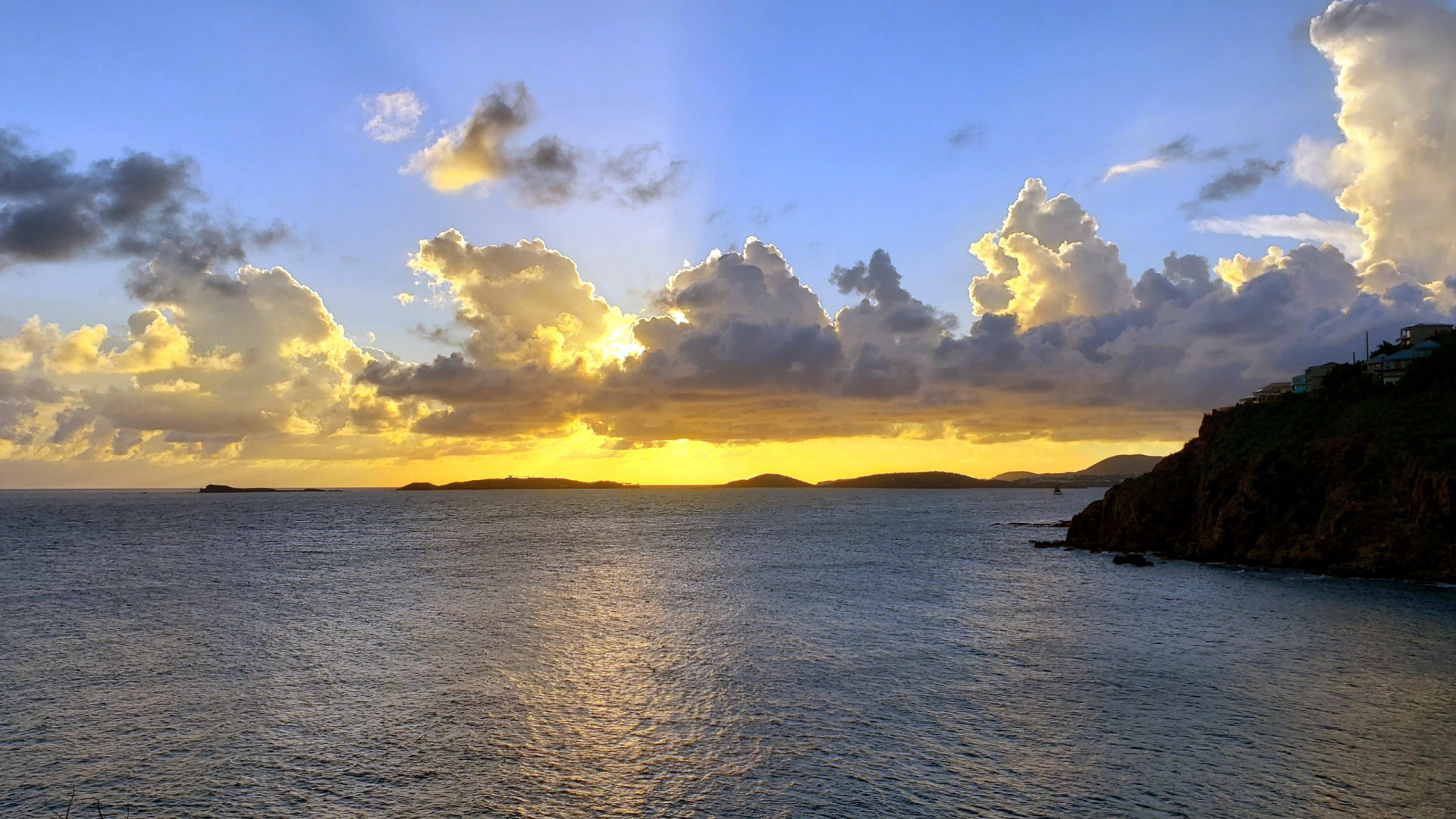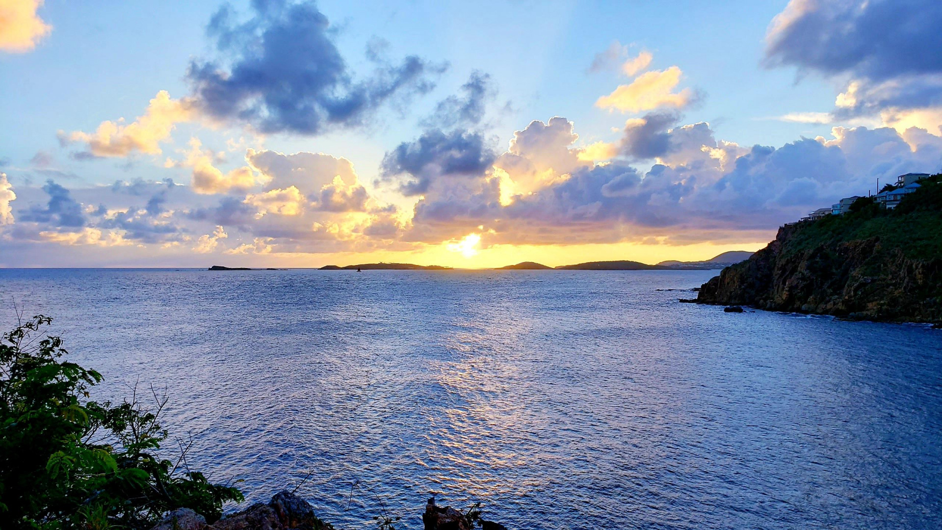 - View: Caribbean, French Cap, Harbor, Panoramic, St. Croix, St. Thomas, West/sunset