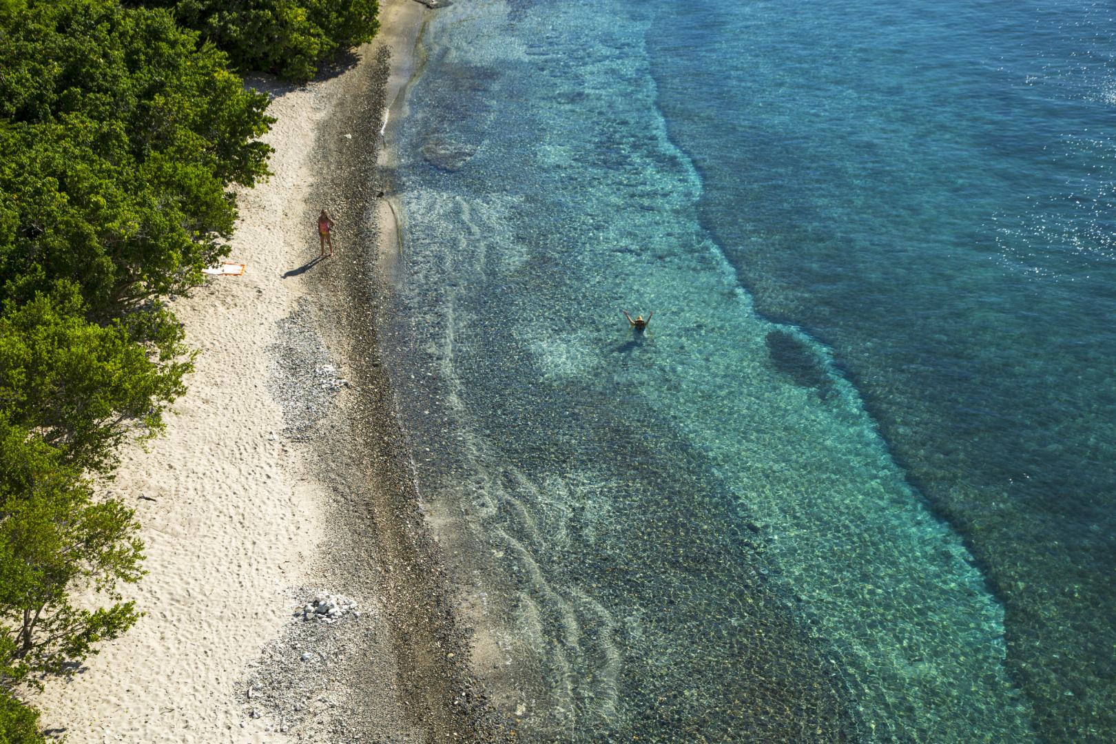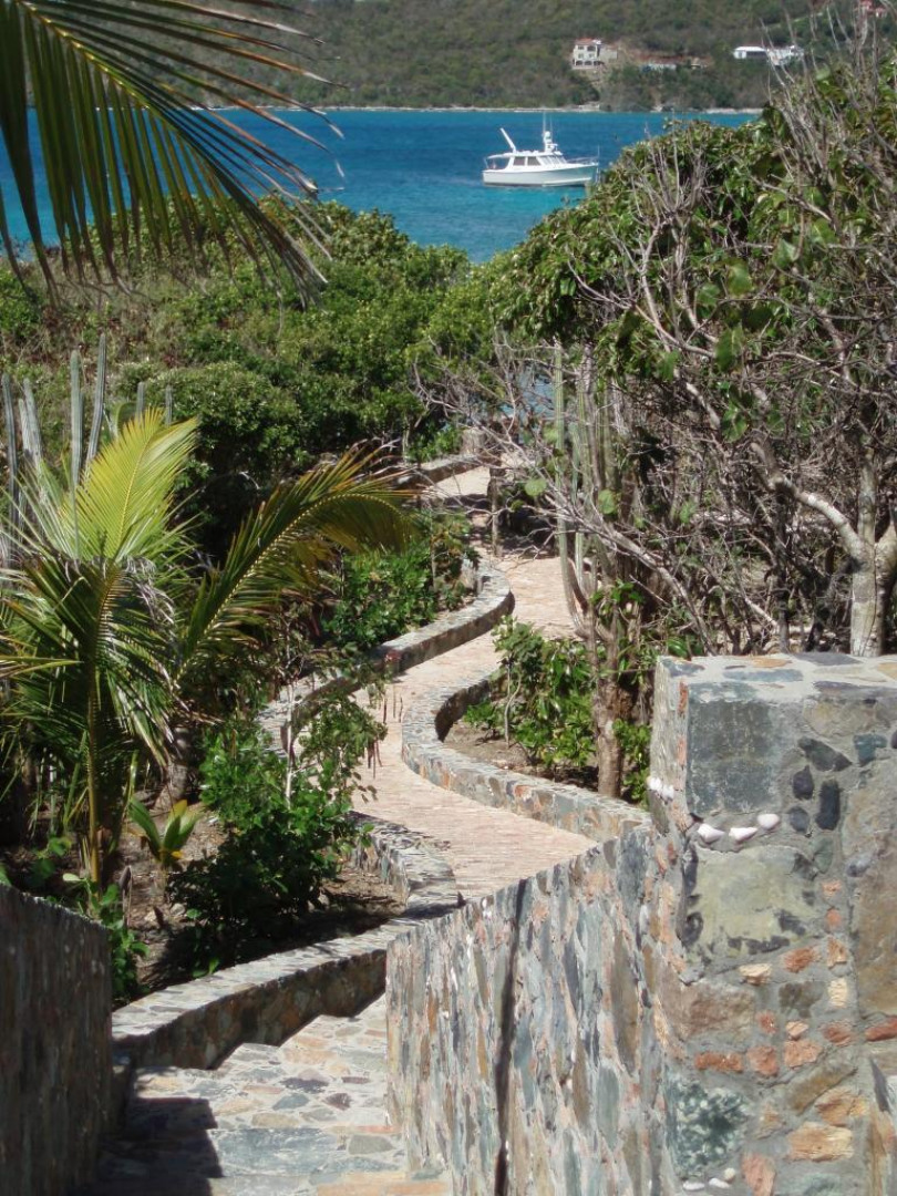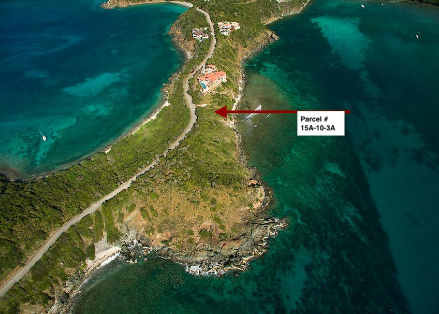 Ditleff Point WATERFRONT ridge top parcel with unsurpassed panoramic easterly views to Ram Head, and westerly views of the turquoise waters' of Rendezvous Bay. Walk across the estate road to the commonly owned stone & brick steps to access the white sandy beach at Ditleff Point. Gated peninsula with underground utilities, beautiful stone lined paved roadways with professional landscaping, and a private common sandy beach at Ditleff Point. -