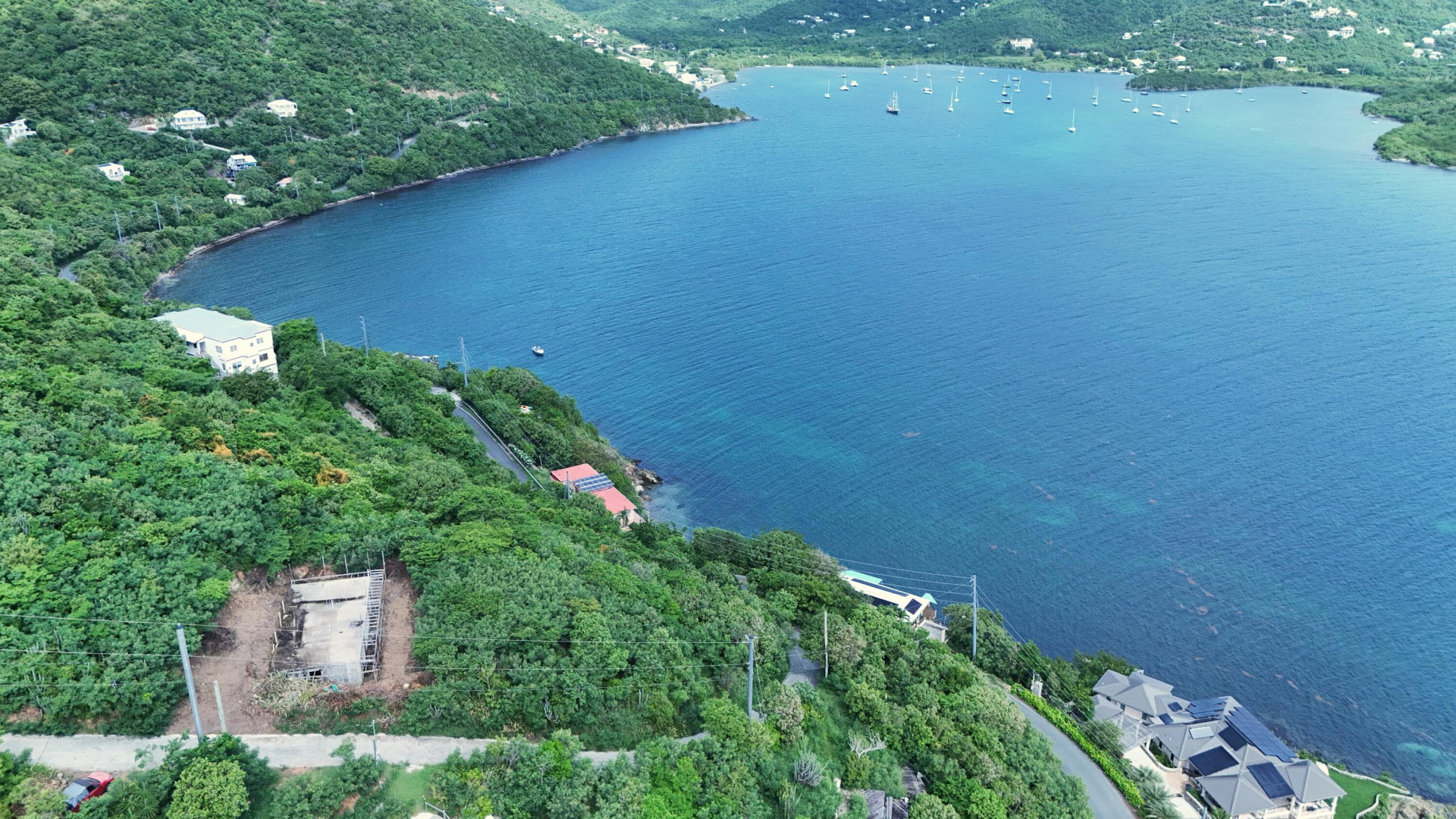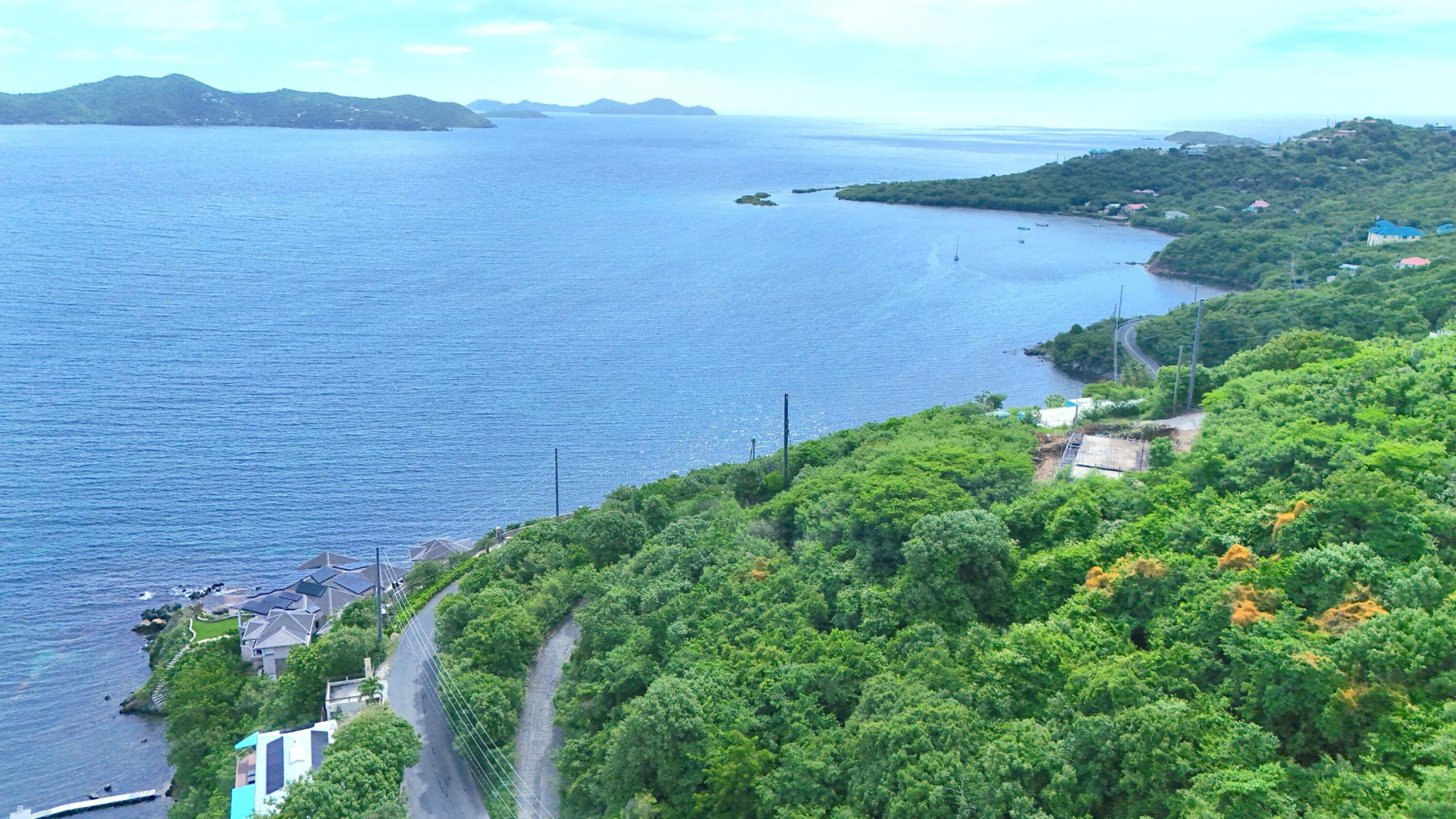 There's something truly enchanting about this Freeman's Ground gem -- a place where the rhythm of the ocean drifts up from below and the gentle sea breeze greets you each day. Just above the road off Chicago Hill, this almost waterfront location combines effortless access with the serenity of island living. From sunrise to moonrise, the views unfold in a sweeping panorama -- Coral Bay's turquoise waters shimmering below and the British Virgin Islands gracing the horizon. -