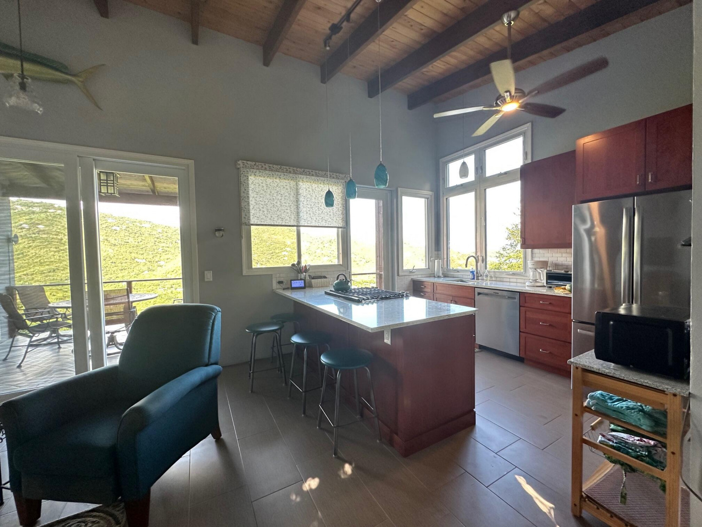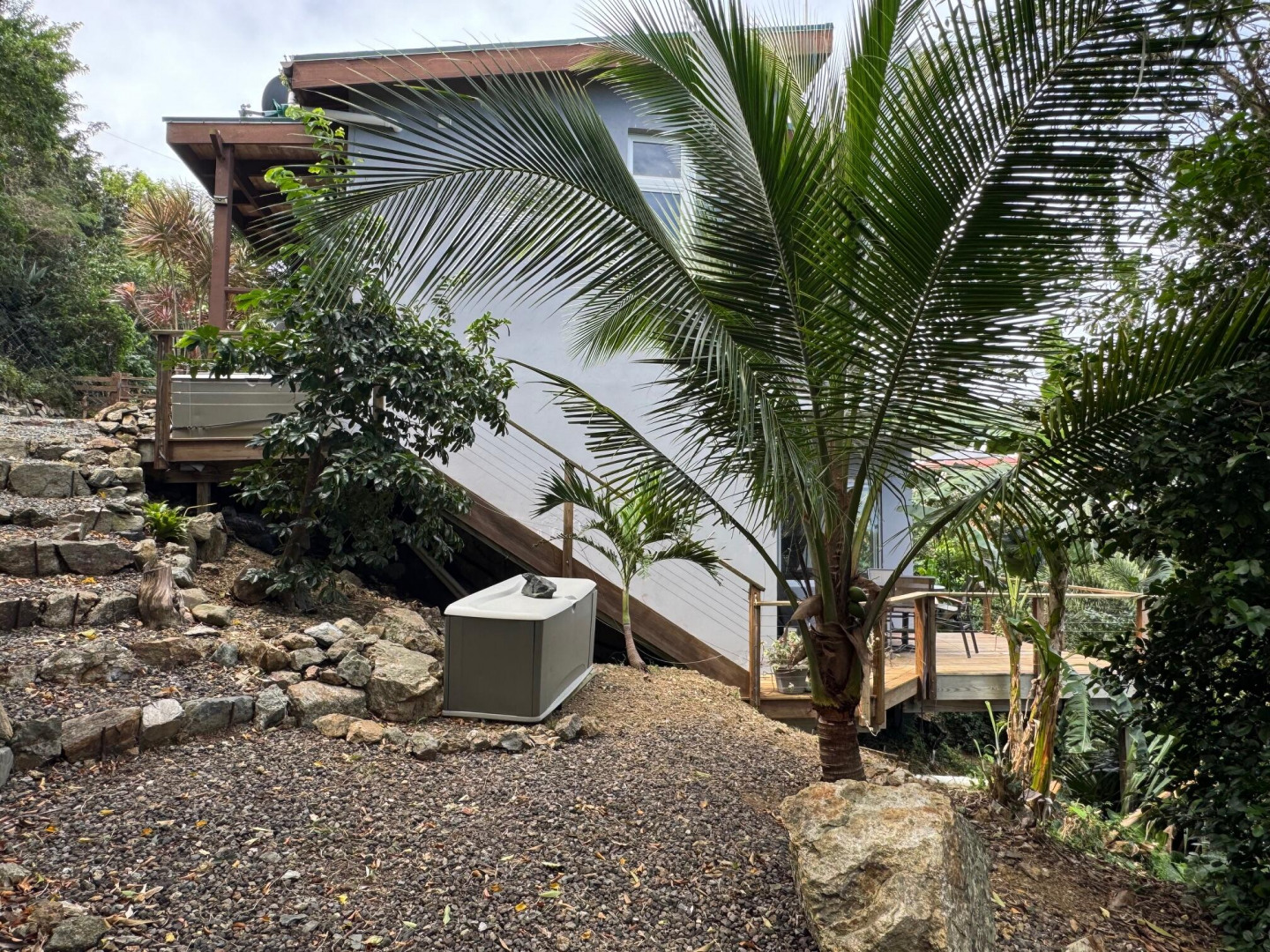 Well maintained home in Coral Bay. Upper level is a 2 bedroom / 1 bath kitchen dining living room and deck. The lower level is a spacious short term rental with kitchen, dining & living area. Beautifully landscaped with fruit trees, 2 tesla power walls & solar net metering. Must see to appreciate