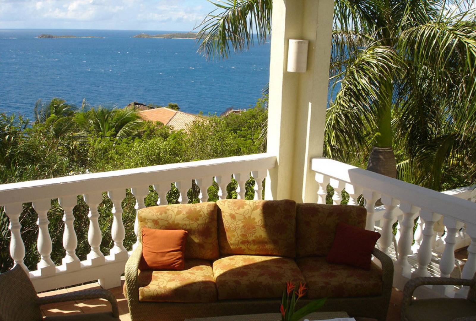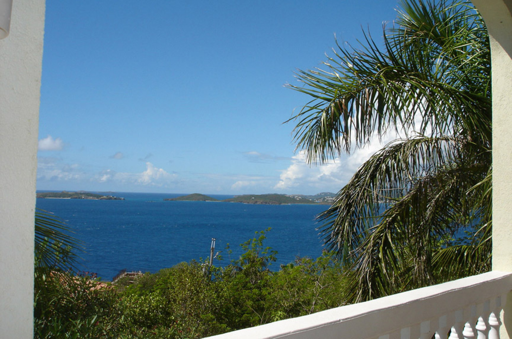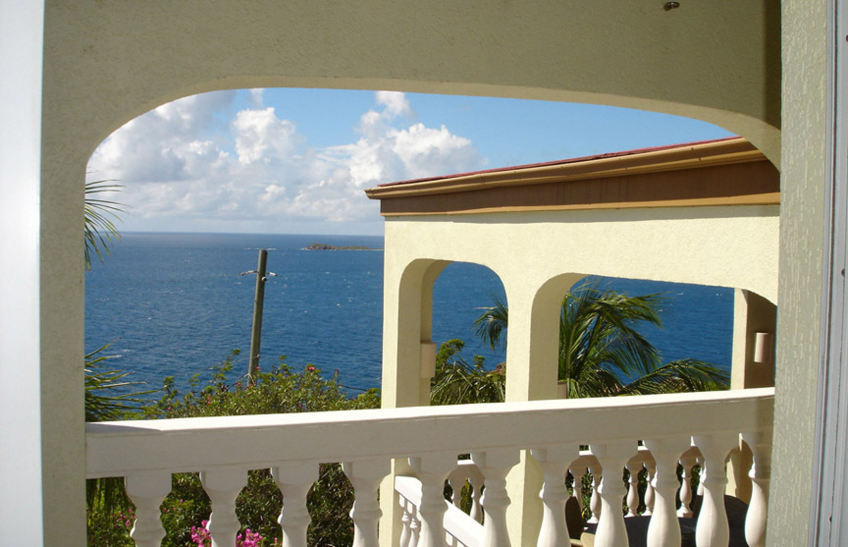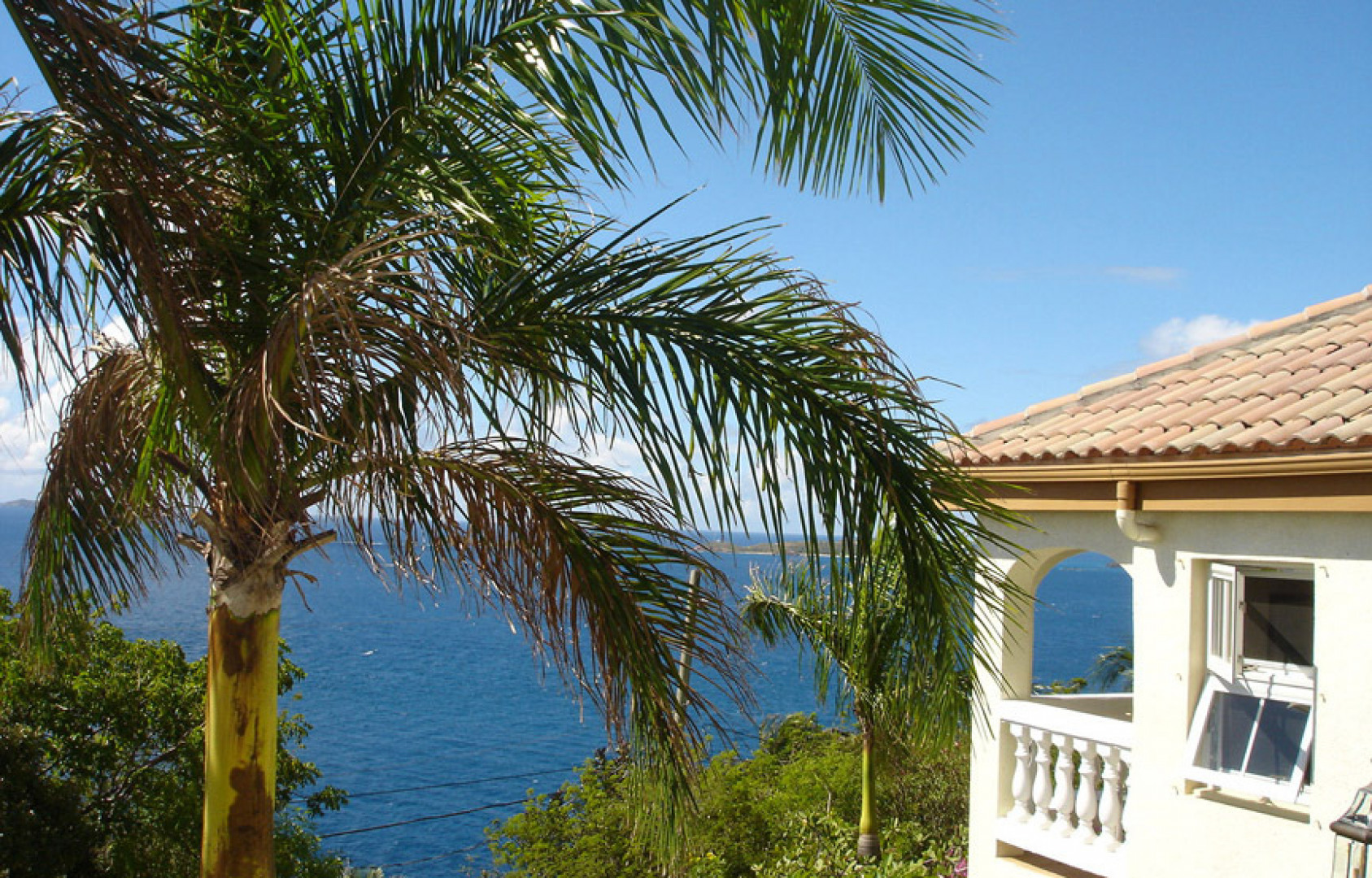 'Sea Palms' in Great Cruz Bay is near the end of the point at Maria Bluff with fantastic water views south to St Croix and west to St Thomas. This well built 3 bedroom, 3.5 bath home features custom mahogany trim, air conditioning, wet bar, high ceilings, large pool, easy access and fantastic sunsets. Each bedroom has a private balcony. Large 0.76 acre corner lot has room for a guest house.The large covered porch catches the wonderful Caribbean breezes as well as rainwater for the large cistern. The house has never been rented so is in excellent condition. Sold furnished minus a few personal items and a few pictures. Each bedroom has a private balcony and walk-in closets. Storm protection includes hurricane rated windows and kevlar armor screens which are very easy to install. -