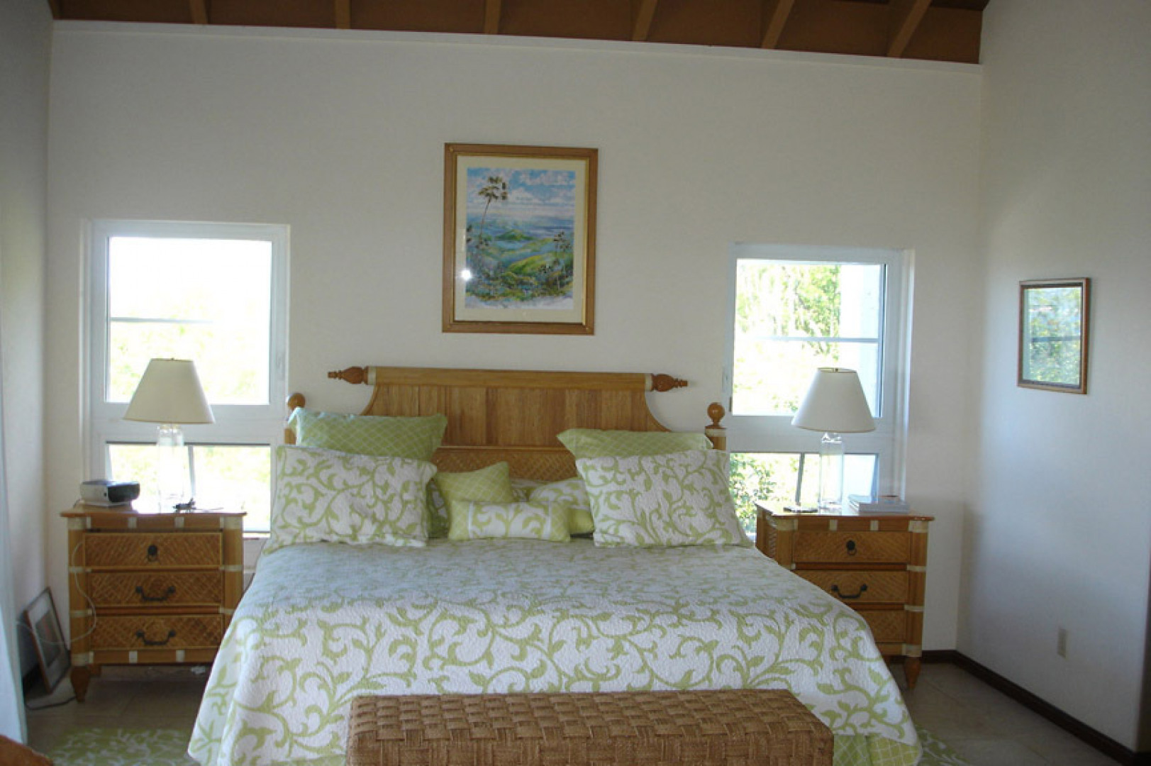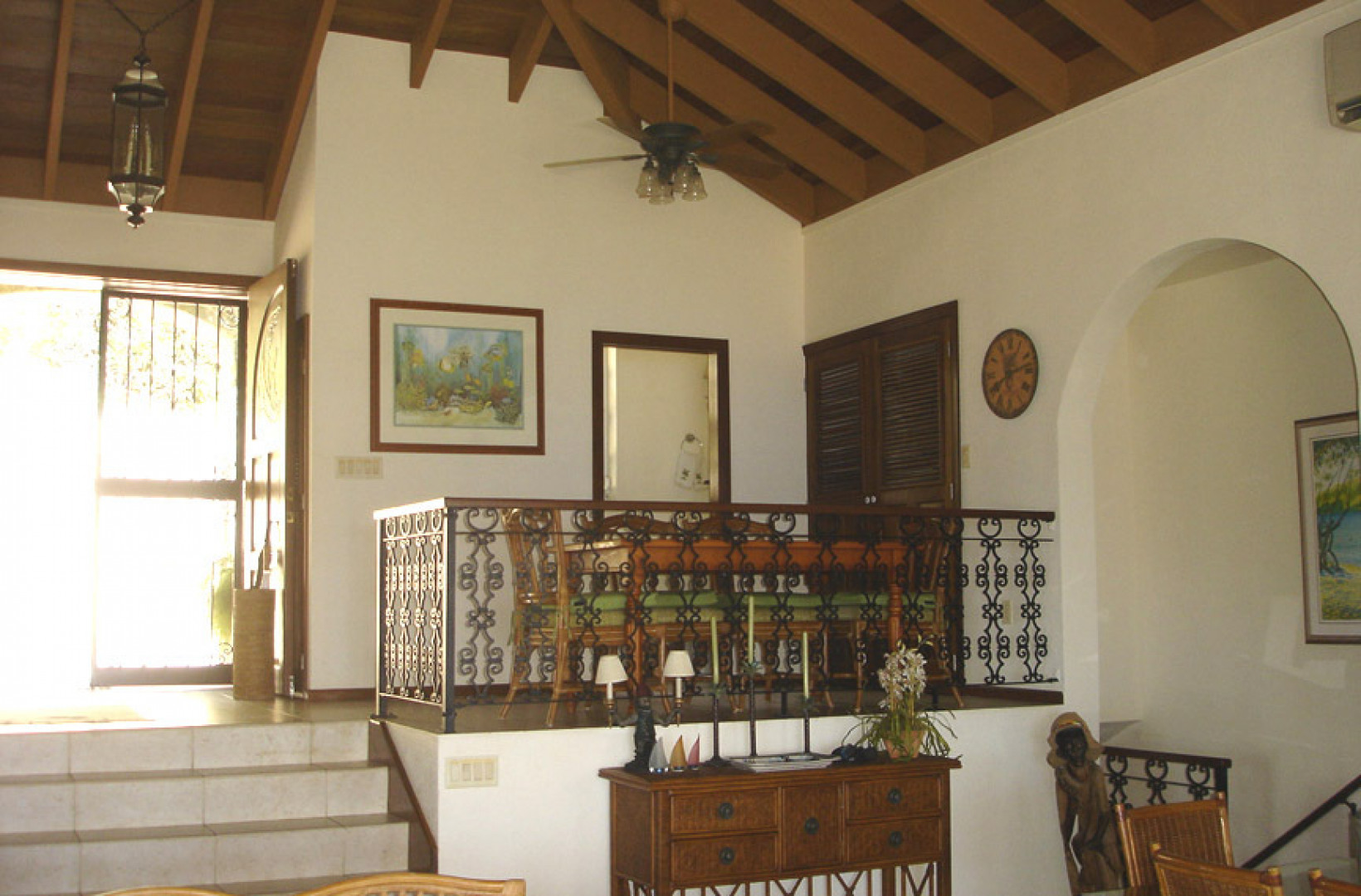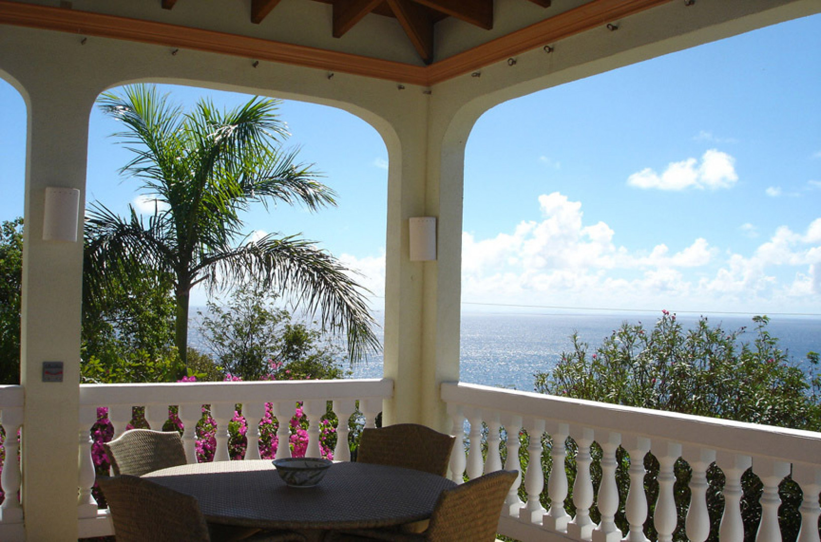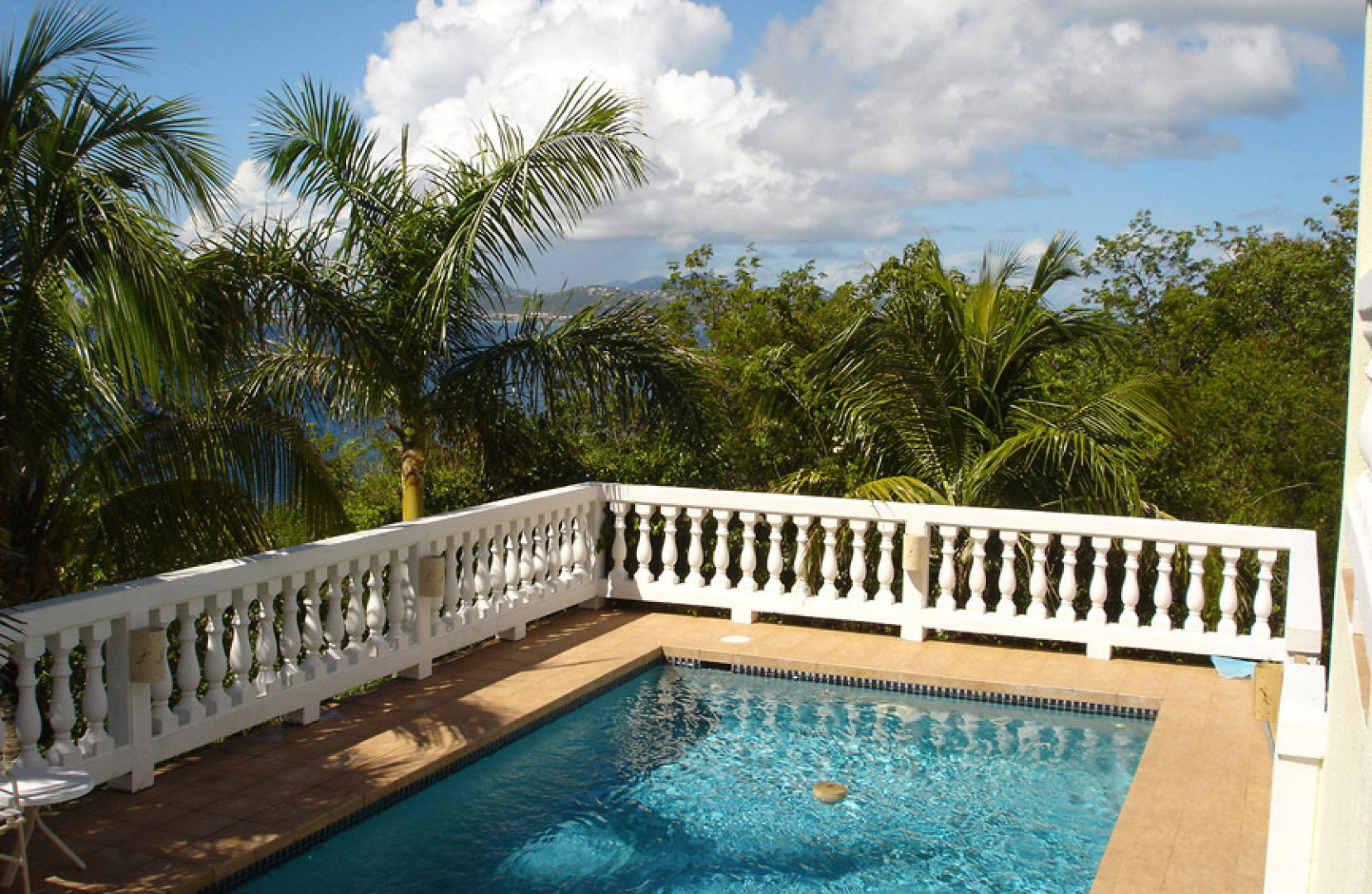 'Sea Palms' in Great Cruz Bay is near the end of the point at Maria Bluff with fantastic water views south to St Croix and west to St Thomas. This well built 3 bedroom, 3.5 bath home features custom mahogany trim, air conditioning, wet bar, high ceilings, large pool, easy access and fantastic sunsets. Each bedroom has a private balcony. Large 0.76 acre corner lot has room for a guest house.The large covered porch catches the wonderful Caribbean breezes as well as rainwater for the large cistern. The house has never been rented so is in excellent condition. Sold furnished minus a few personal items and a few pictures. Each bedroom has a private balcony and walk-in closets. Storm protection includes hurricane rated windows and kevlar armor screens which are very easy to install. -