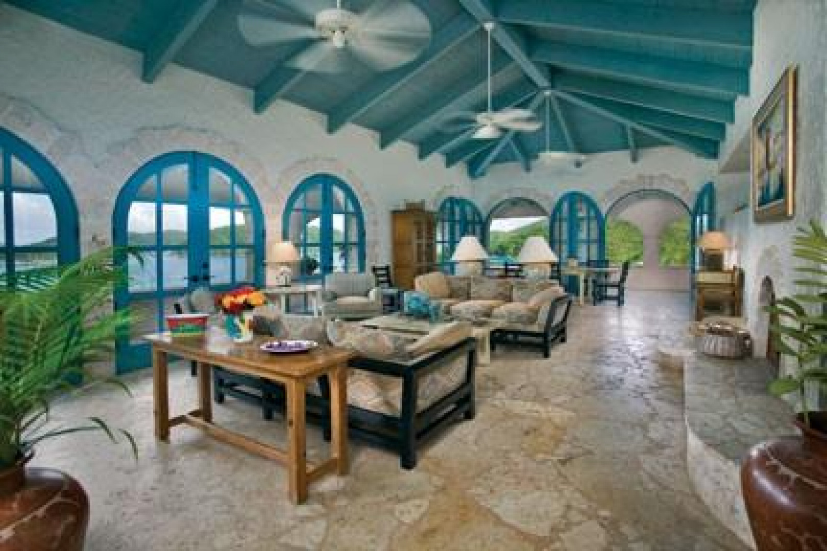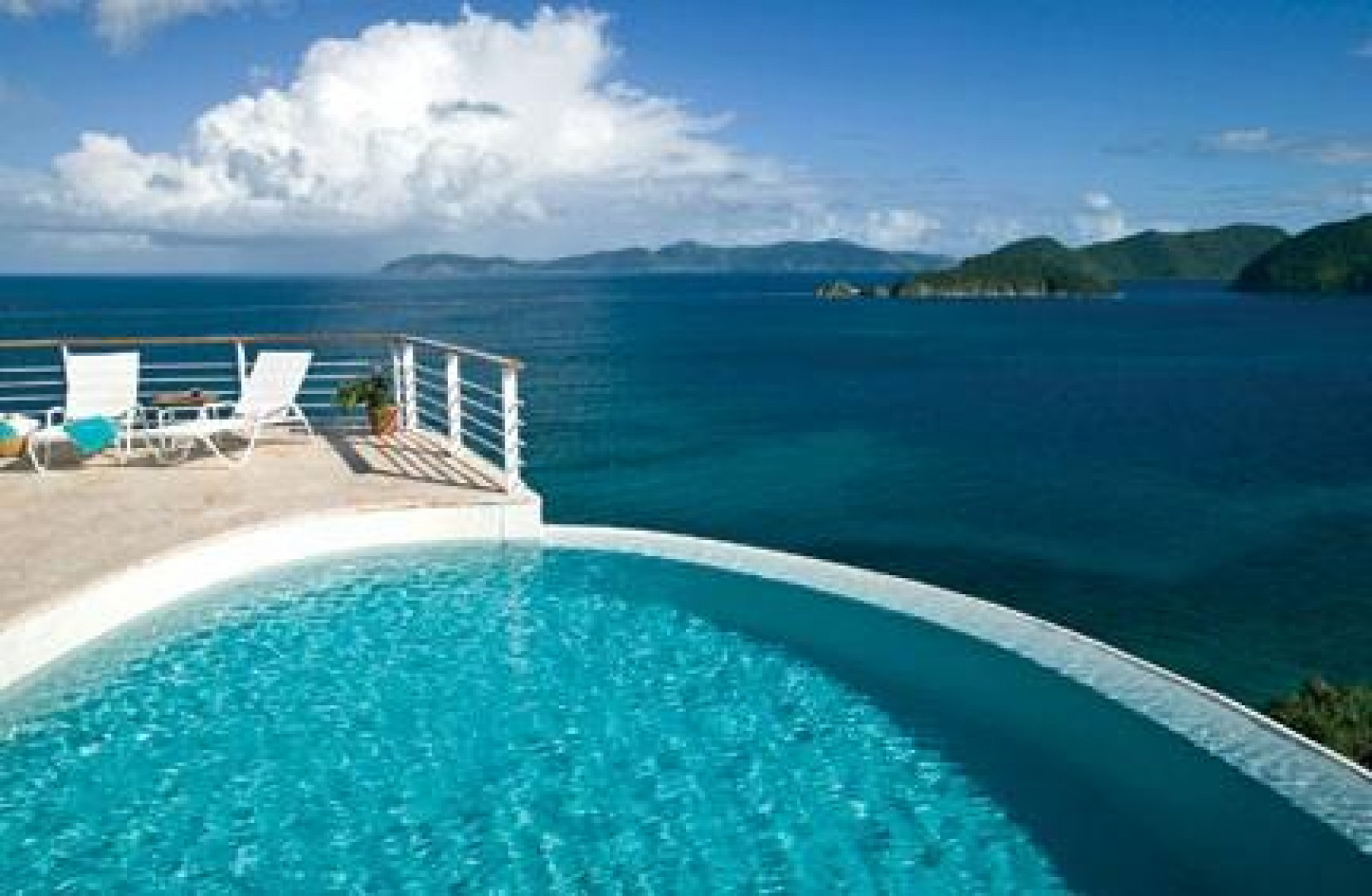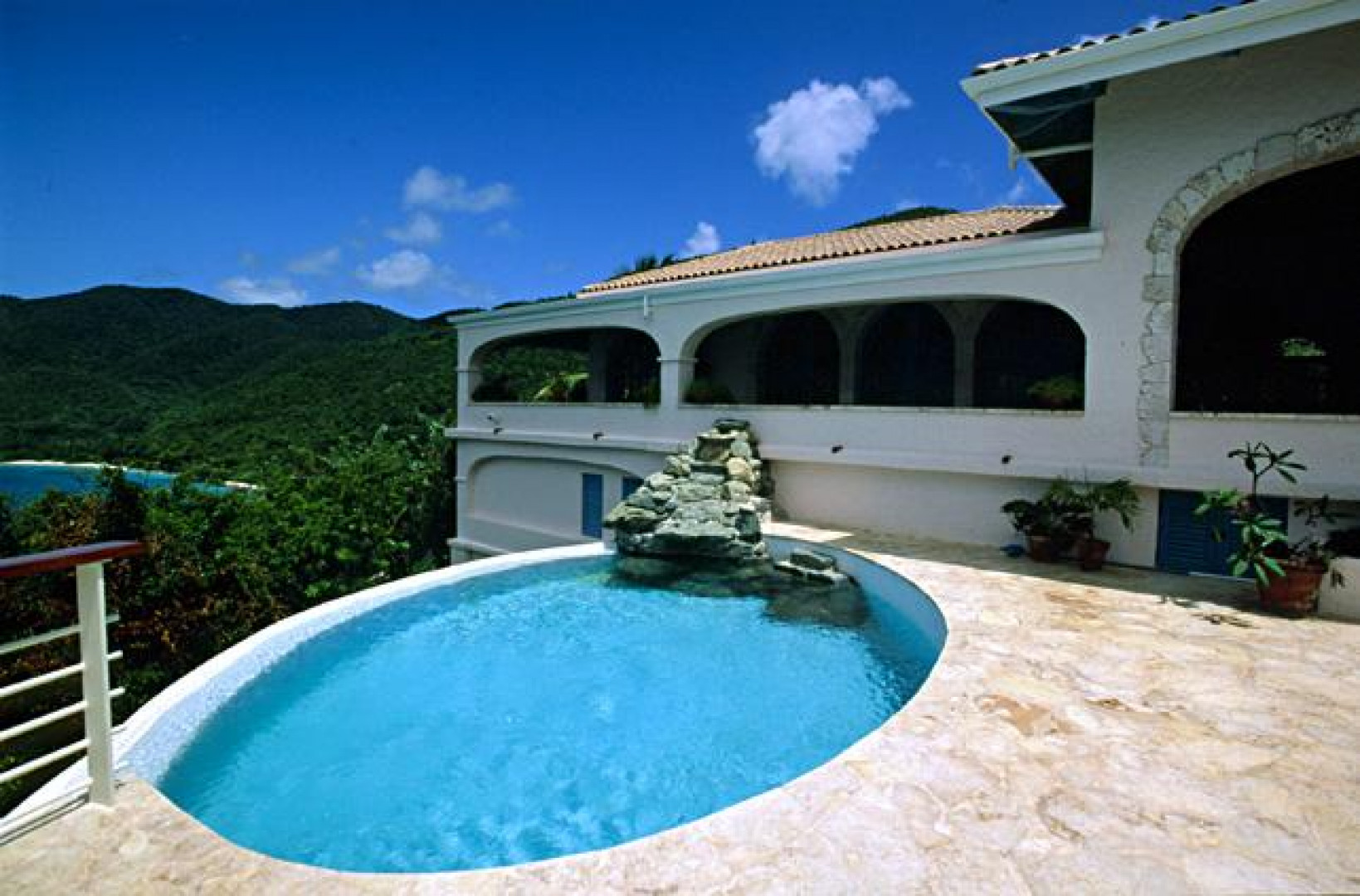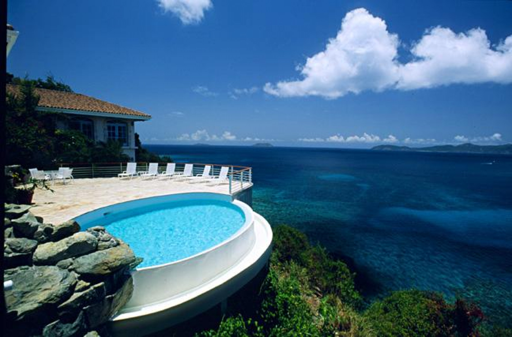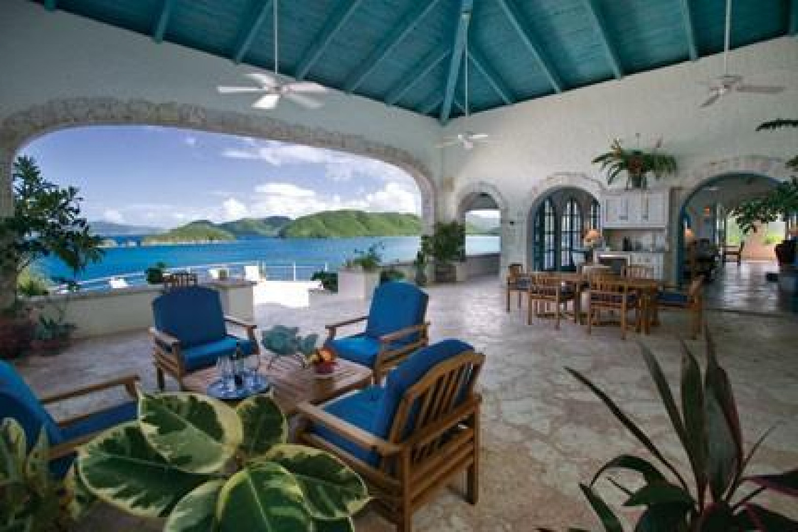 'Cliffhouse' is the ultimate St. John Estate. This stunningly beautiful property in a premier location is an exceptional oceanfront estate home on St. John's pristine north shore in the prestigious gated community of Peter Bay, set in the midst of National Park lands. Complete privacy with sweeping views of Jost Van Dyke, Tortola and turquoise waters, verdant hillsides and distant island shores.Just a short walk to powdery white sand beach! The house is magnificent with careful thought applied to all amenities for family and guests. One enters through a private garden into a covered outdoor greatroom and is immediately taken with the panoramic views over the expansive exterior deck and grand, infinity edge swimming pool. After you have caught your breath you begin to notice the tasteful personalized comforts like refreshment center with refrigerator, 30 x 30 covered terrace, and full sized living and dining room. The gourmet kitchen is fully equipped with state of the art appliances and custom cabinetry. A large pantry, utility and storage room off the kitchen has a separate entry from the upper parking court. The expansive master bedroom suite with walk in closet and large master bath are situated in a private wing poised above the water and the gentle sound of ocean; extensive office- gym- massage room below (with private deck) could also be used for additional bedroom accommodations; separate guest wing has 3 more bedroom suites on two levels. All furnishings and appointments were selected and/or created especially for this Caribbean home and the interior was professionally decorated by a stateside designer. This one owner home has been immaculately maintained and was built to the highest standards with the best quality materials, craftsmanship and appointments. -