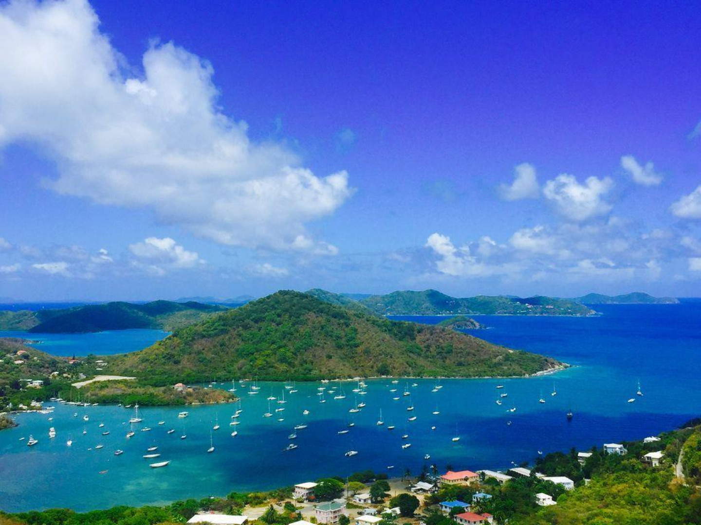• View: British Virgin Islands, Caribbean, Down Island, East/sunrise, Harbor, Mountain, Panoramic
