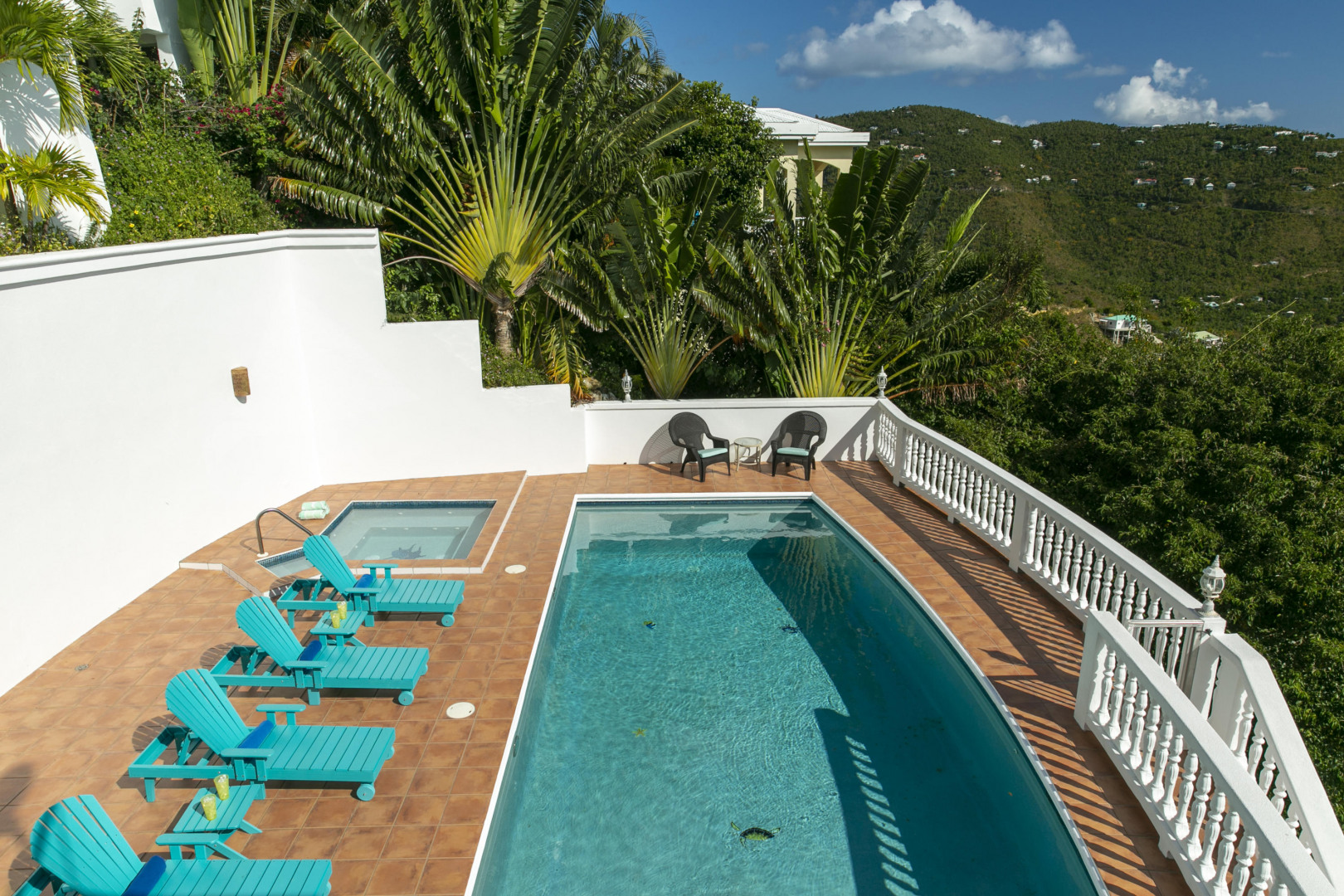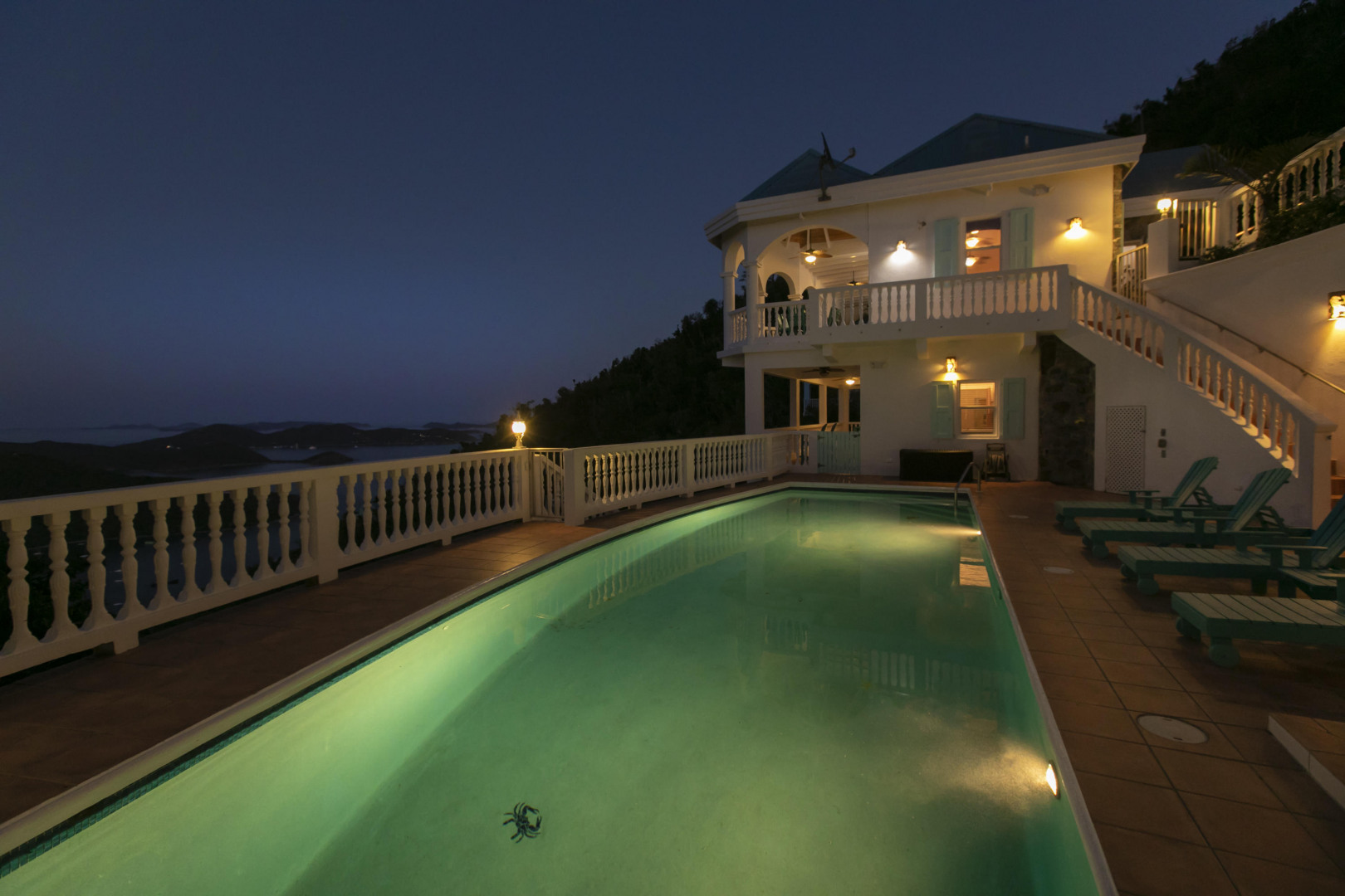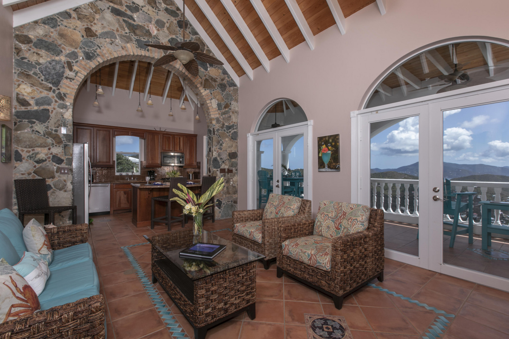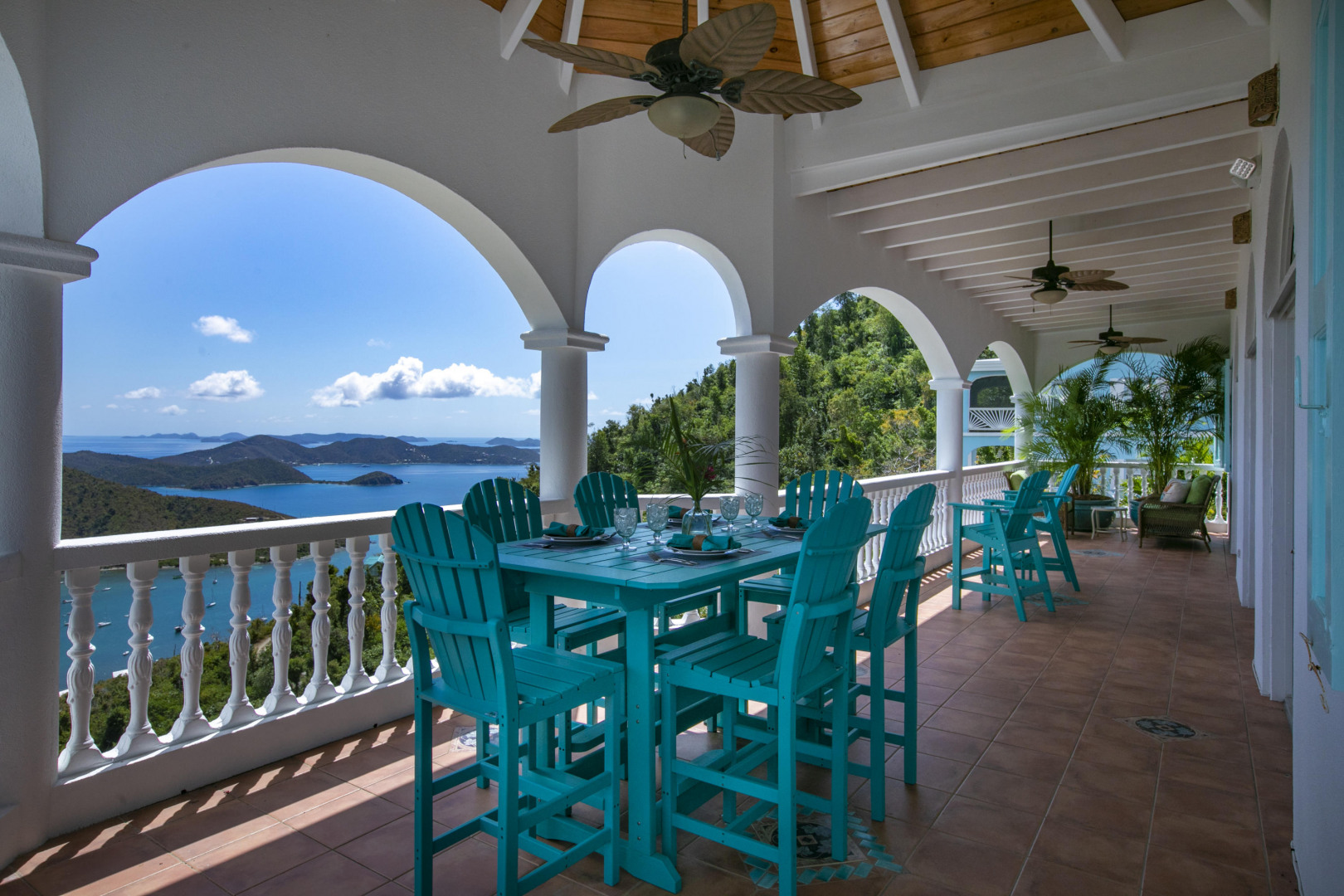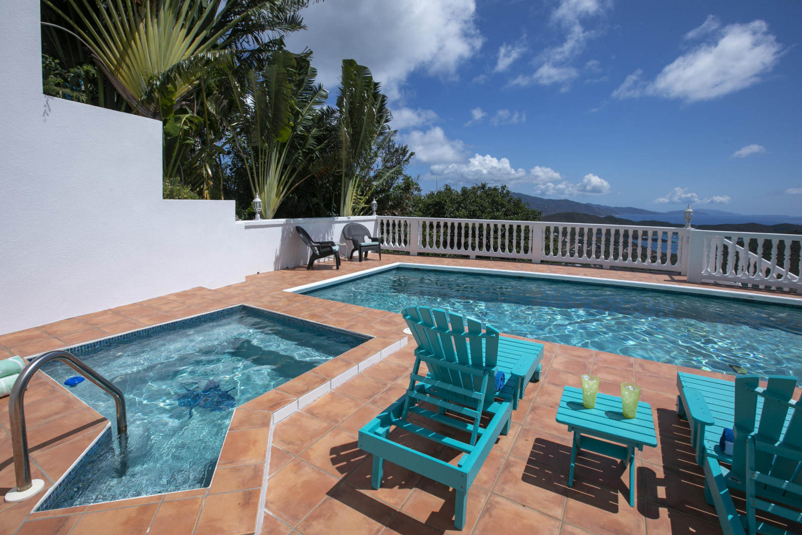 More About 10-25j Carolina, St. John, USVI, 00830The name says it all! ALMOST HEAVEN, with spectacular views of Coral Bay & the neighboring British Virgin Islands from every room. This spacious 2-story masonry & stone villa, with 3 bedroom suites, is a fortress in the hilltops with large viewing porches on each level. The sleek kitchen with stainless steel appliances, granite counters, & cherry wood cabinets opens to the great room & interior staircase. Whimsical floor tile designs throughout with soft Caribbean colors. The breathtaking views, refreshing 40 foot salt water lap pool, and 6 person hot tub make you feel you are almost in heaven.